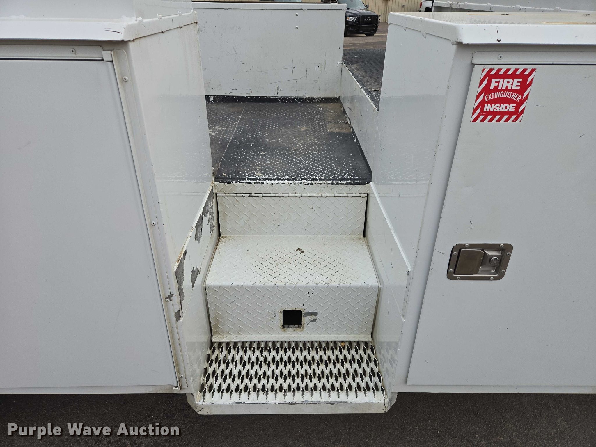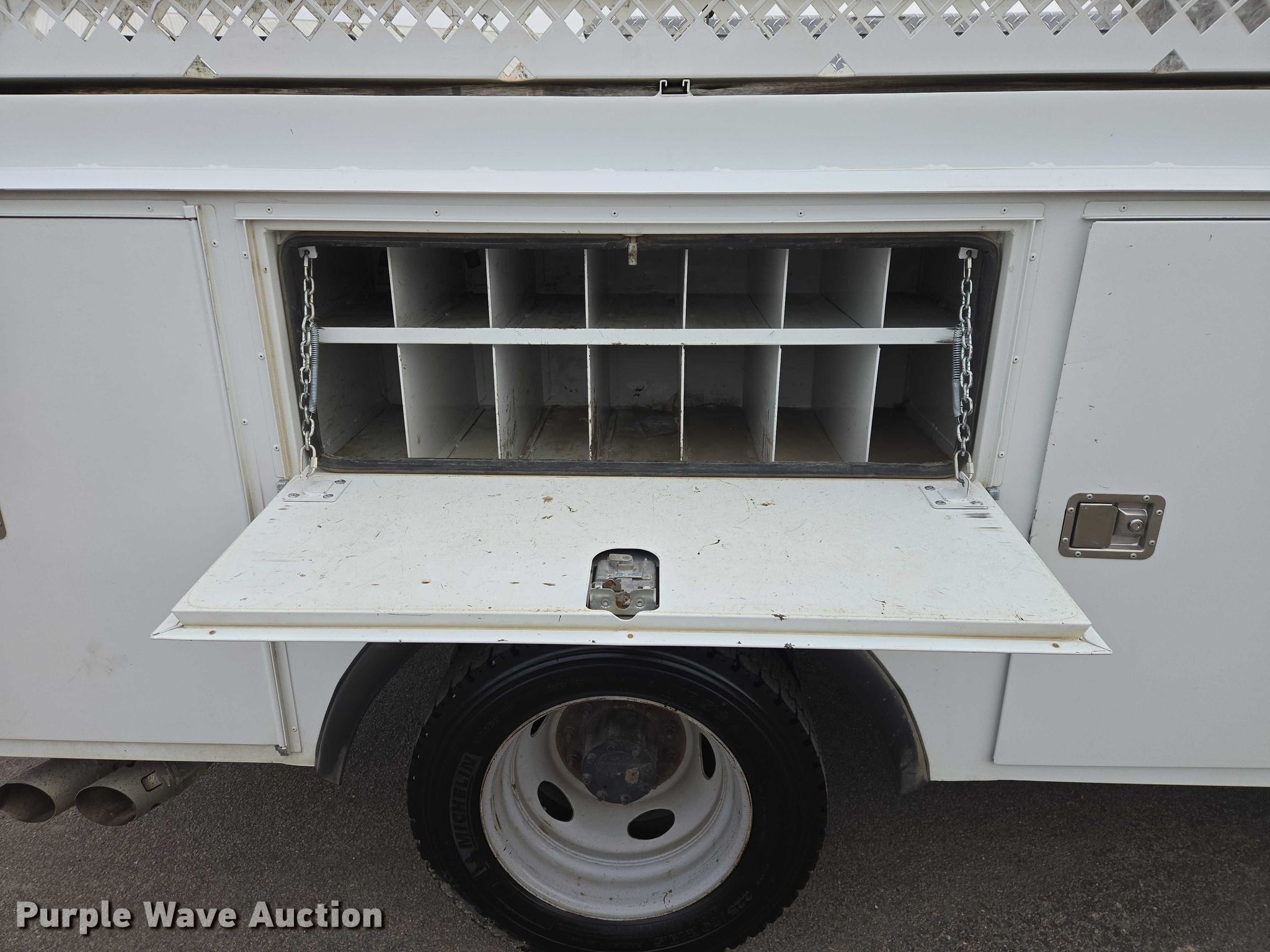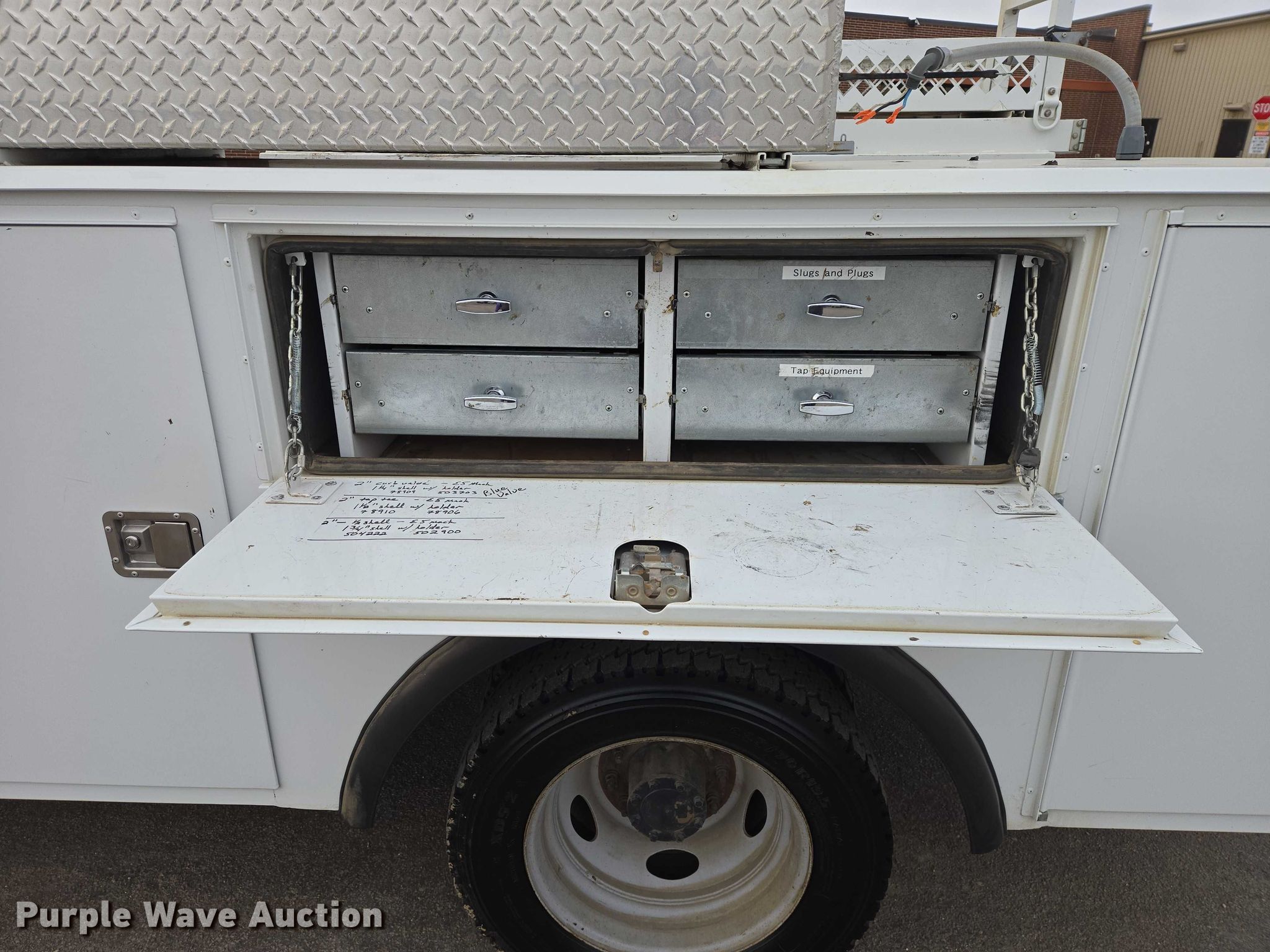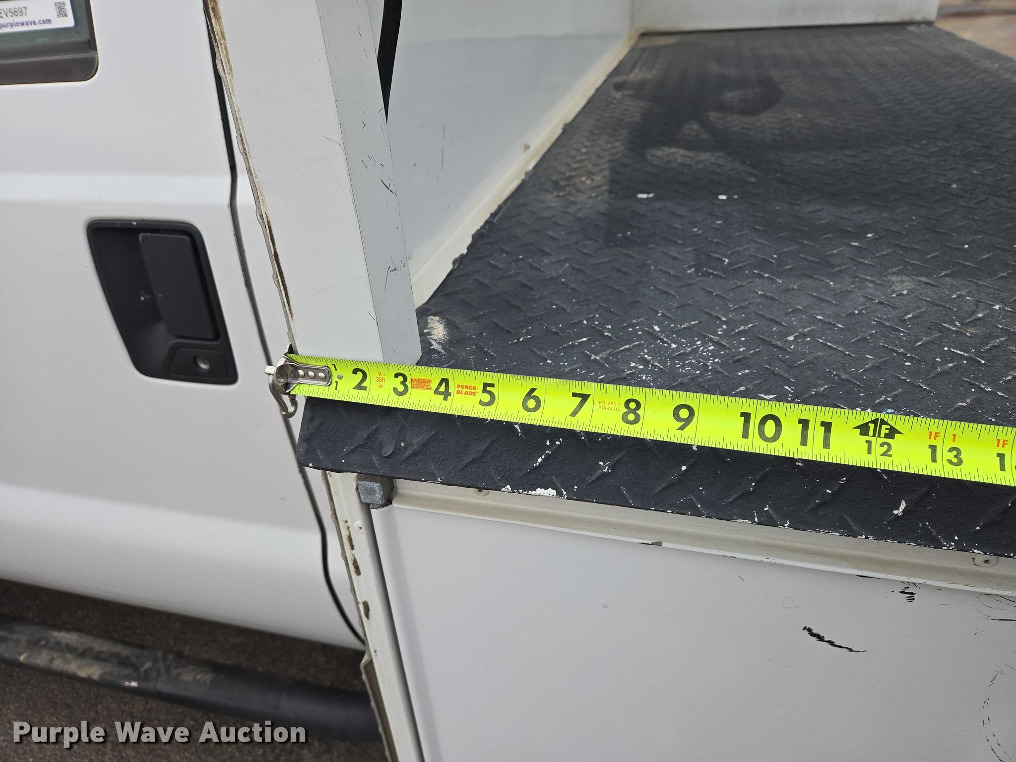 2015 Ford F550 utility / service truck. Miles: 93,666 on odometer, Hours: 6,926 on meter, VIN: 1FDUF5HT1FEA13827. Engine Displacement: 6.7L, Cylinders: 8, Fuel type: Diesel. Transmission Automatic. Chassis Four wheel drive, Axles: Single, Suspension: Spring, Brakes: Hydraulic. Interior AC, Heat, Heated mirrors, Power windows, Power locks, Cruise control, Auxiliary controls, Brake controller. Features Bed Utility bed, Dakota Bodies 154-SB, Serial: DB19451, Length: 12' 10", Width: 96". Tires Size: 225/70R19.5. South Dakota title. Title distribution may be delayed up to 14 days from verification of funds. Watertown Municipal Utilities. Watertown, SD 57201