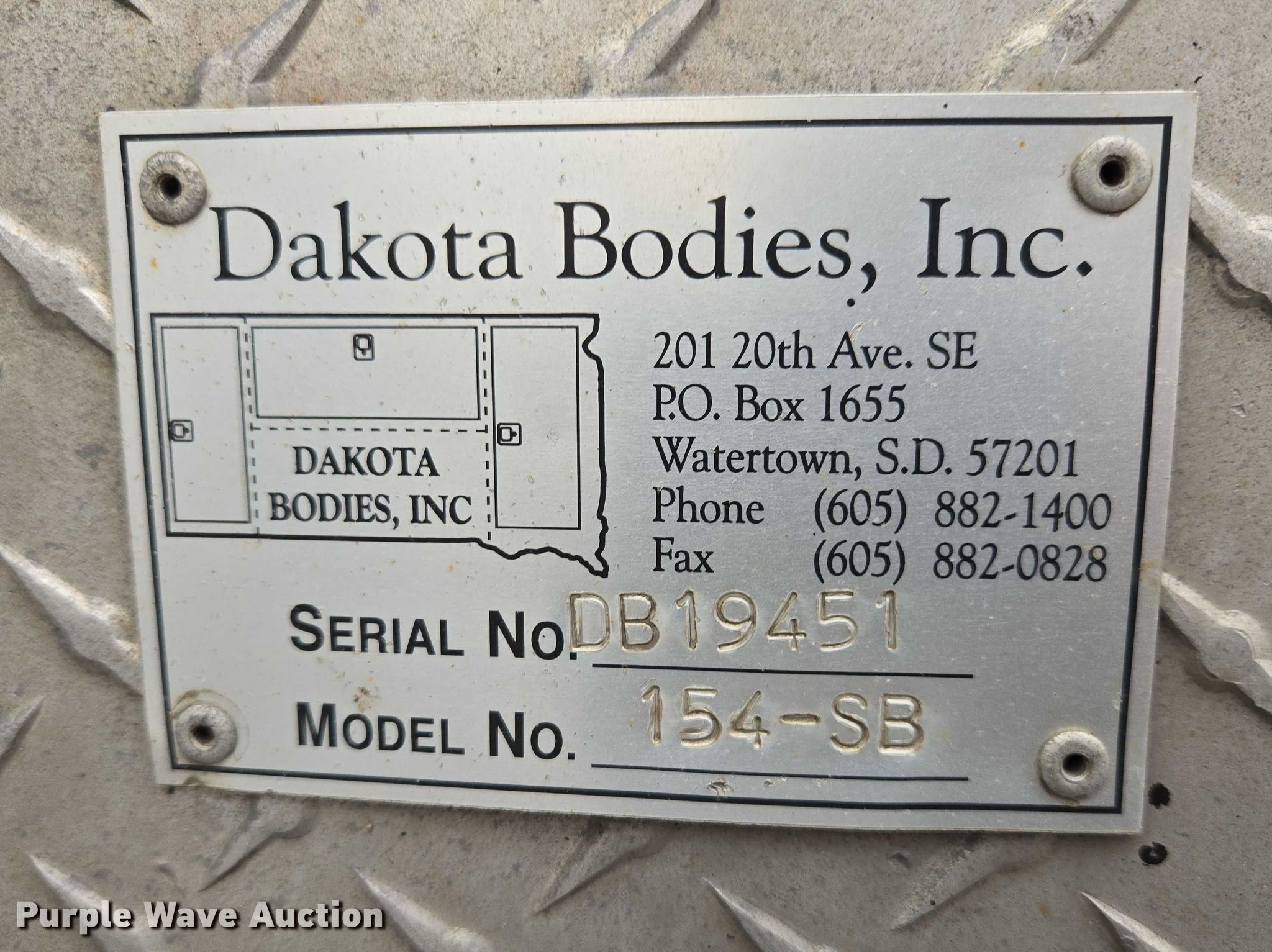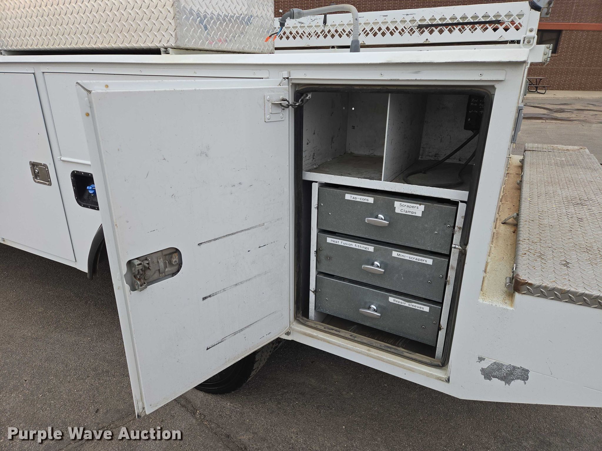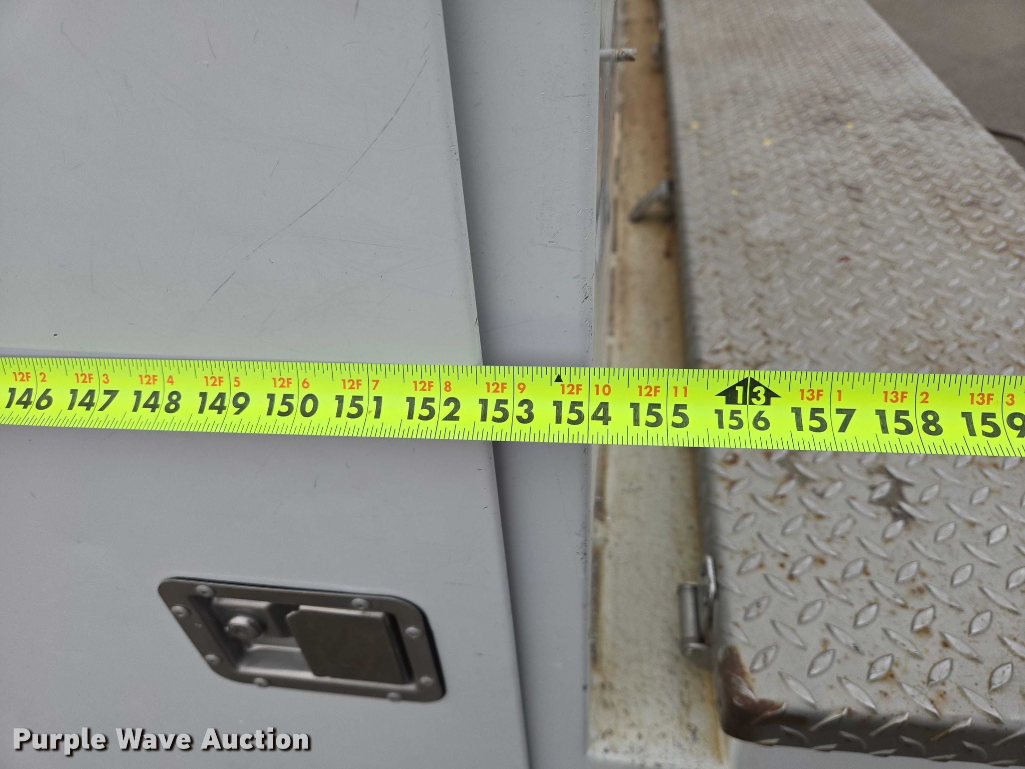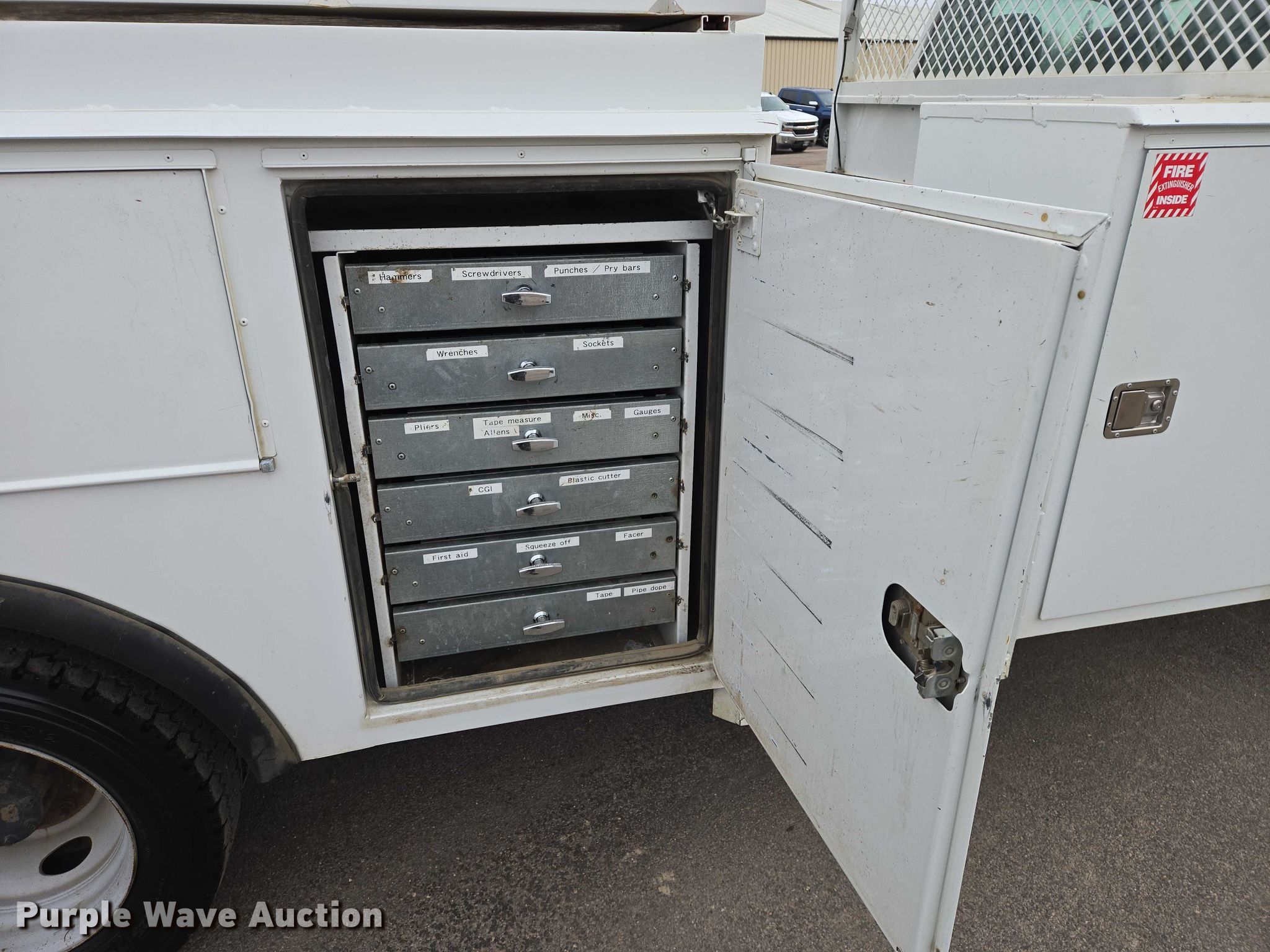 2015 Ford F550 utility / service truck. Miles: 93,666 on odometer, Hours: 6,926 on meter, VIN: 1FDUF5HT1FEA13827. Engine Displacement: 6.7L, Cylinders: 8, Fuel type: Diesel. Transmission Automatic. Chassis Four wheel drive, Axles: Single, Suspension: Spring, Brakes: Hydraulic. Interior AC, Heat, Heated mirrors, Power windows, Power locks, Cruise control, Auxiliary controls, Brake controller. Features Bed Utility bed, Dakota Bodies 154-SB, Serial: DB19451, Length: 12' 10", Width: 96". Tires Size: 225/70R19.5. South Dakota title. Title distribution may be delayed up to 14 days from verification of funds. Watertown Municipal Utilities. Watertown, SD 57201