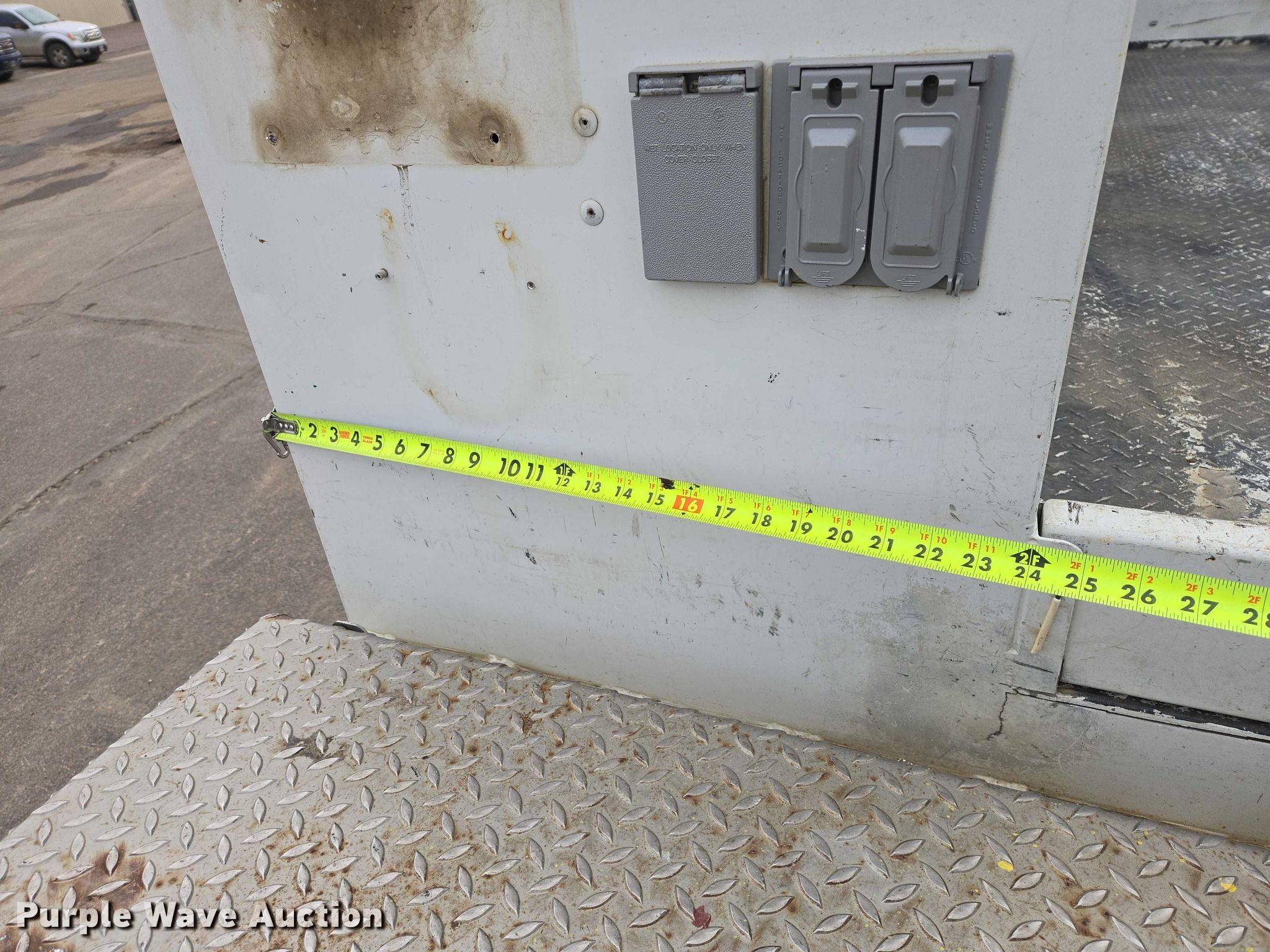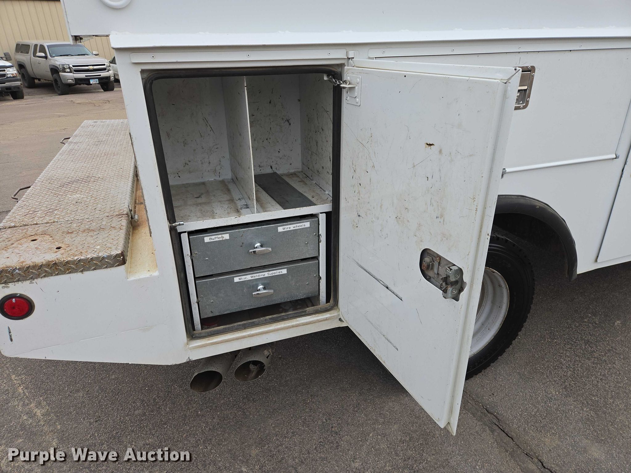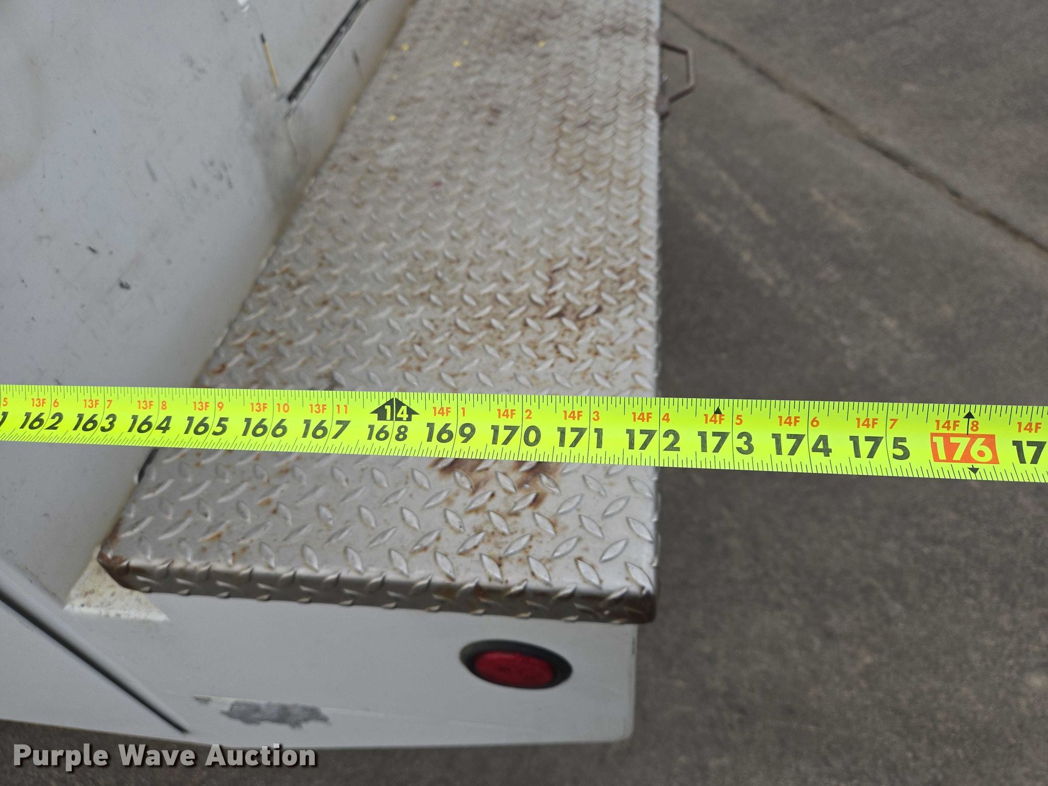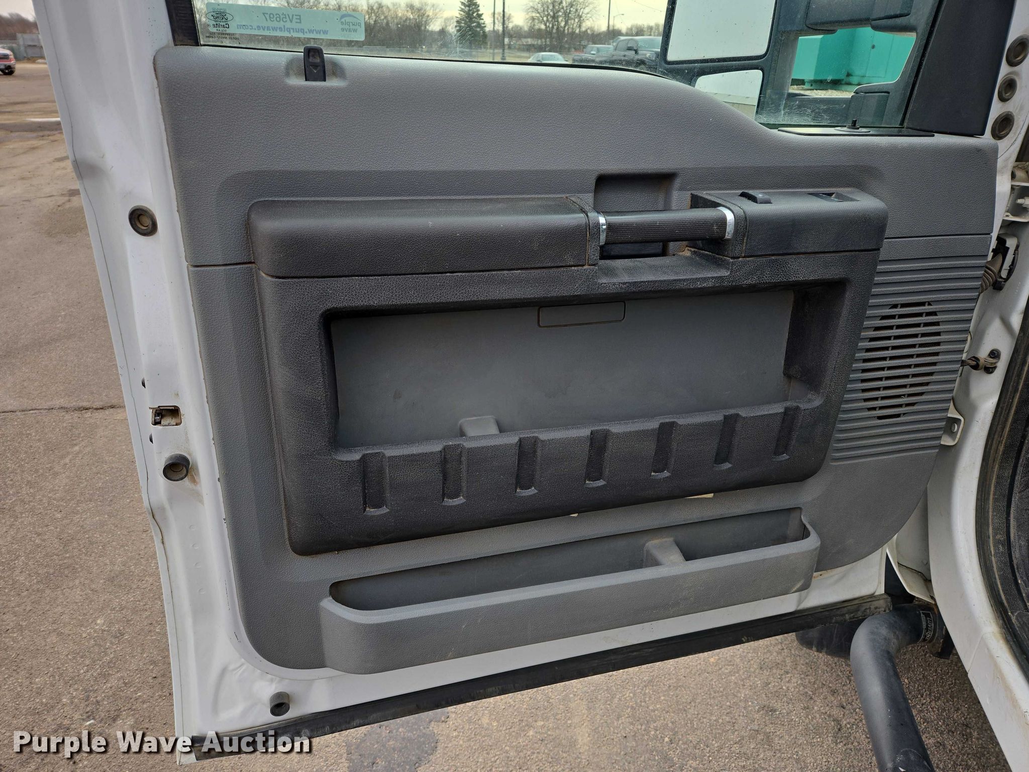 2015 Ford F550 utility / service truck. Miles: 93,666 on odometer, Hours: 6,926 on meter, VIN: 1FDUF5HT1FEA13827. Engine Displacement: 6.7L, Cylinders: 8, Fuel type: Diesel. Transmission Automatic. Chassis Four wheel drive, Axles: Single, Suspension: Spring, Brakes: Hydraulic. Interior AC, Heat, Heated mirrors, Power windows, Power locks, Cruise control, Auxiliary controls, Brake controller. Features Bed Utility bed, Dakota Bodies 154-SB, Serial: DB19451, Length: 12' 10", Width: 96". Tires Size: 225/70R19.5. South Dakota title. Title distribution may be delayed up to 14 days from verification of funds. Watertown Municipal Utilities. Watertown, SD 57201