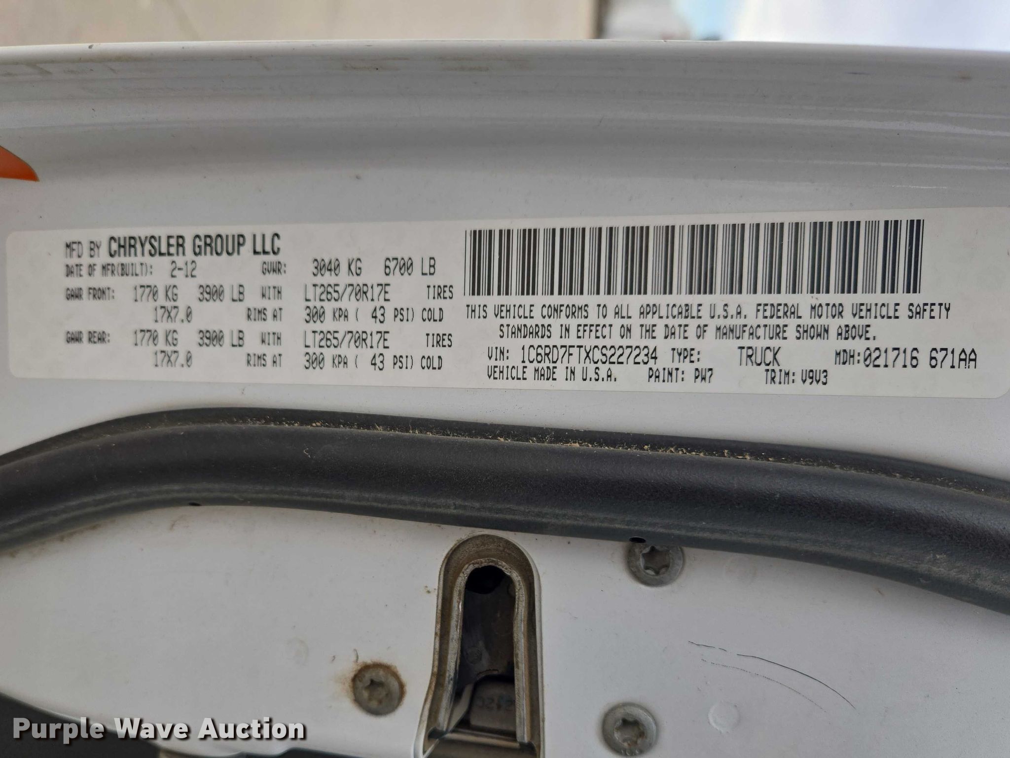 - VIN: 1C6RD7FTXCS227234