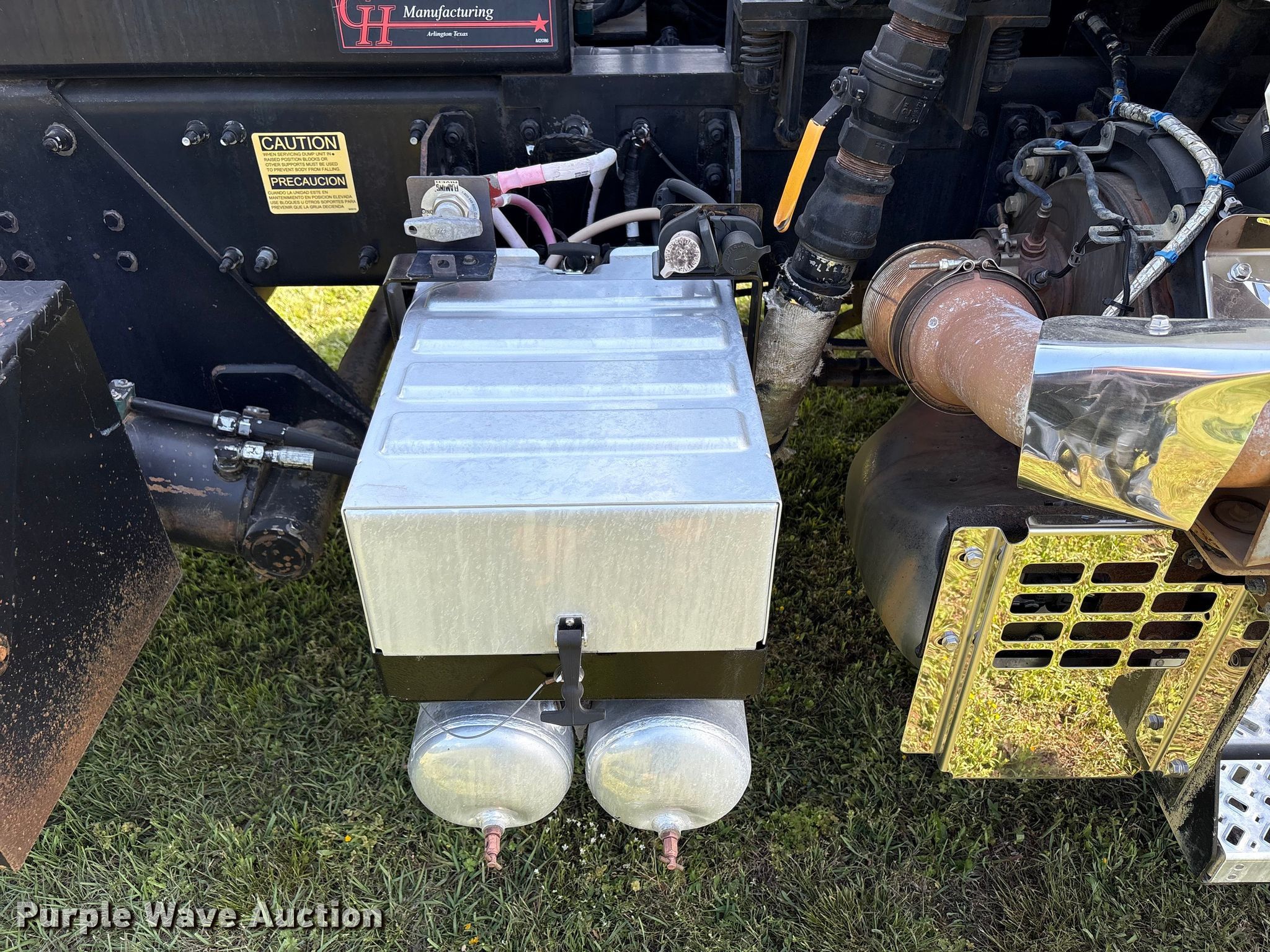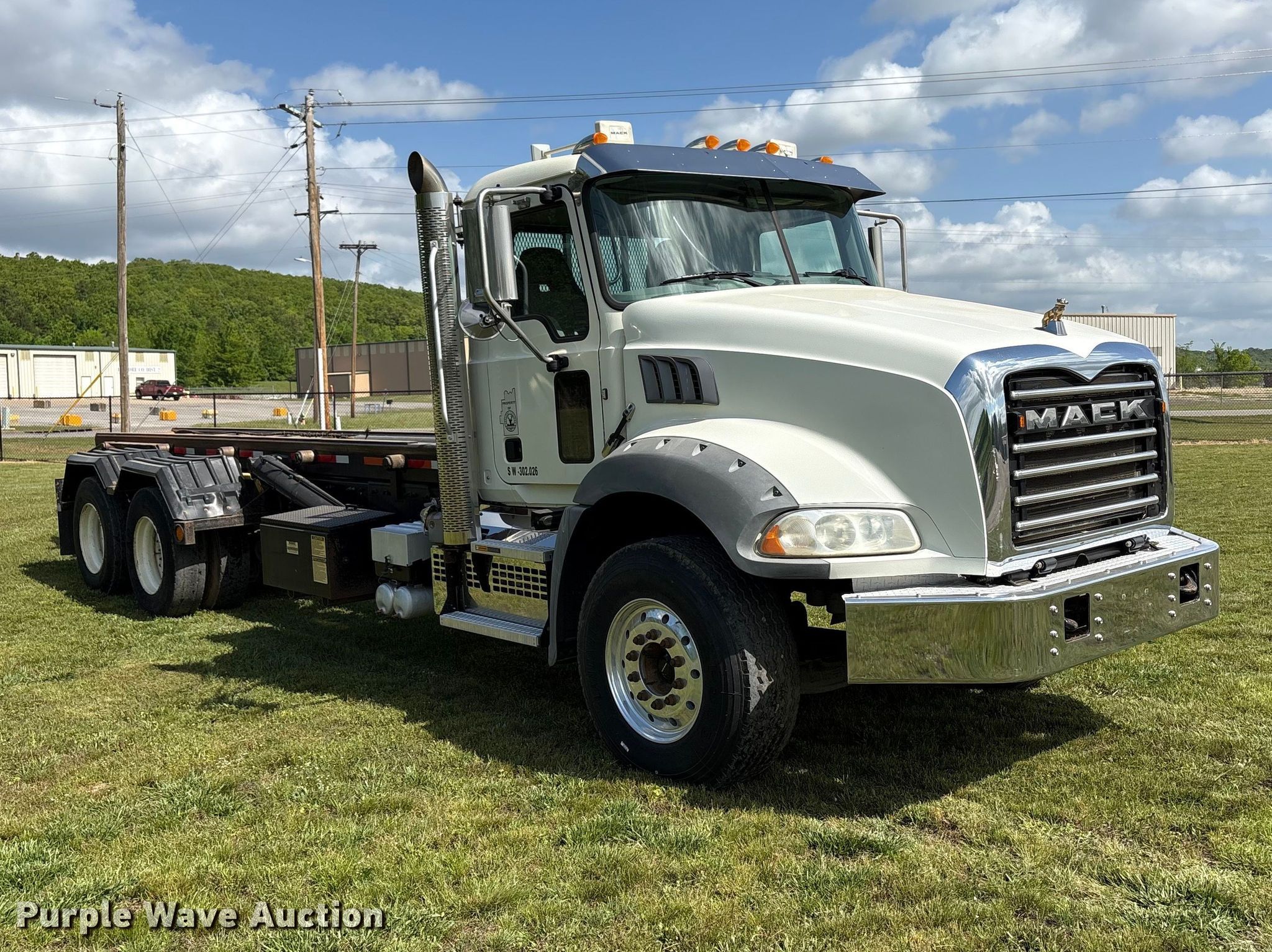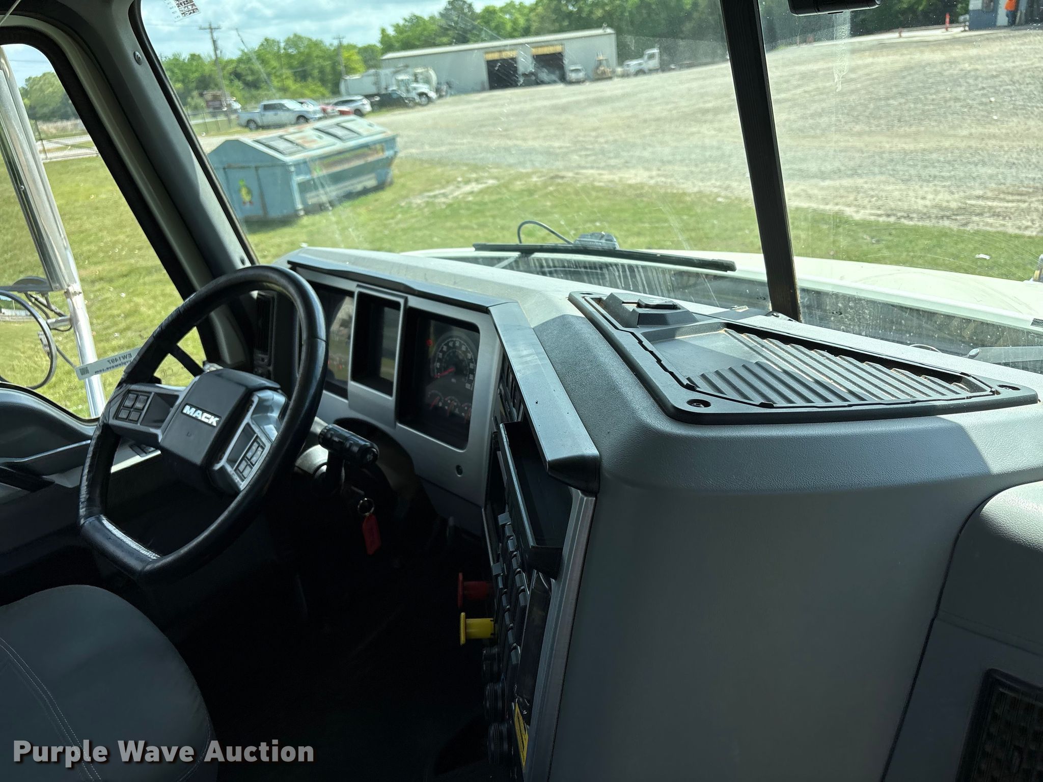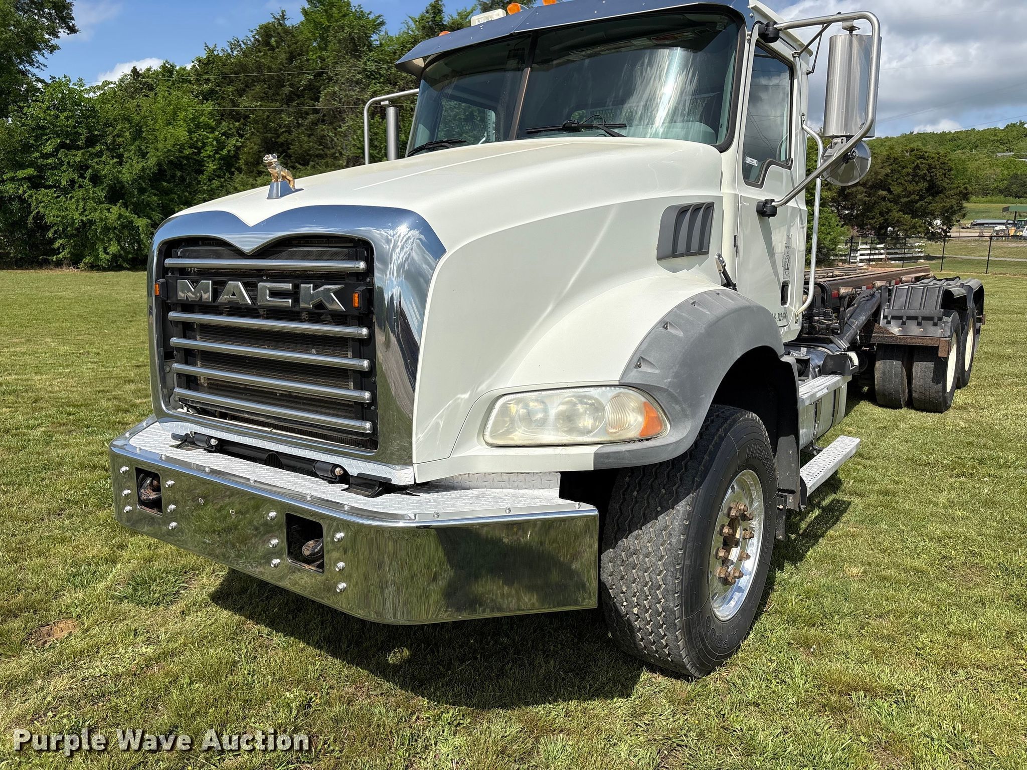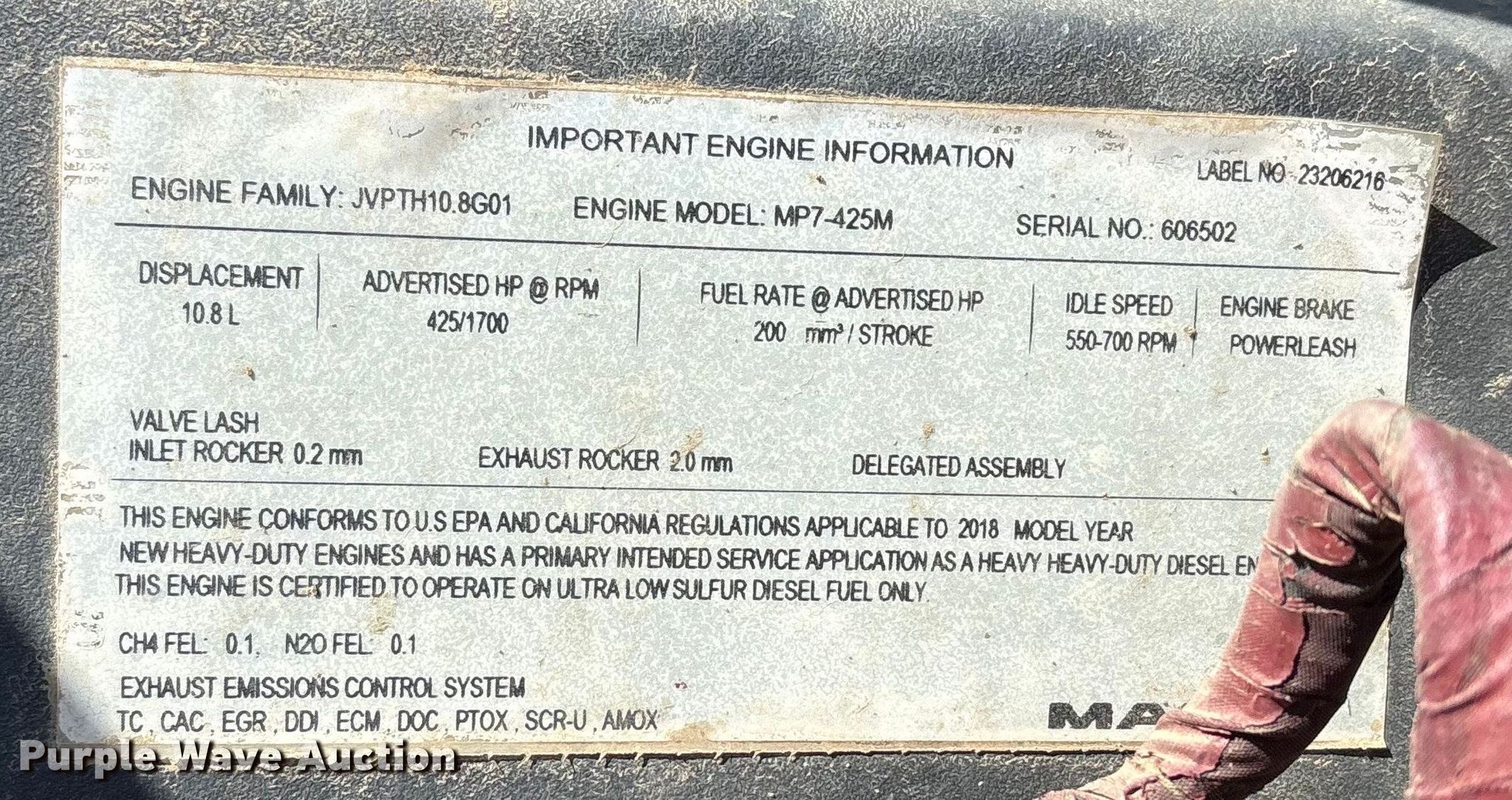 2019 Mack Granite rollback truck. Miles: 289,903 on odometer, Hours: 11,250 on meter, VIN: 1M2GR2GC7KM004988. Engine Mack MP7, Serial: 606502, Displacement: 10.8L, Cylinders: 6, Fuel type: Diesel, HP: 335. Transmission Automatic. Chassis Axles: Tandem, Differential lock: Full, Suspension: Spring, Brakes: Air, PTO, Wet kit, GVWR: 28,458 lbs. Interior AC, Heat, Heated mirrors, Power windows, Power locks, Cruise control, Brake controller. Features Bed Roll-off bed, GH Manufacturing 1575, Serial: 19059265, Length: 23', Width: 33", Ram: Dual, Winch, Rolling tailboard. Tires Front: 385/65R22.5, Rear: 11R22.5. Notes Dash warning indicator: Check engine, Winch cable issues, worn. Oklahoma title. Title distribution may be delayed up to 14 days from verification of funds. LeFlore County Solid Waste. Poteau, OK 74953