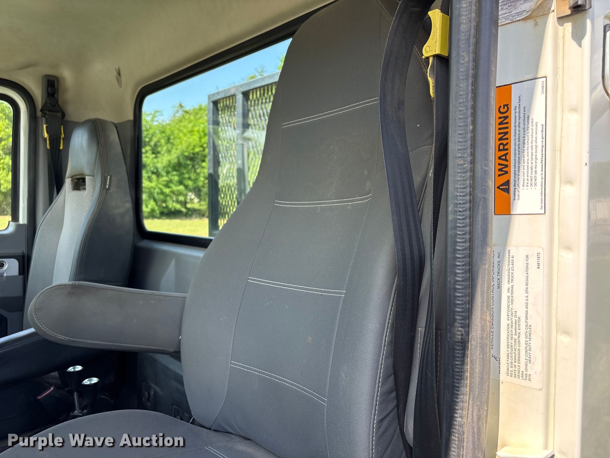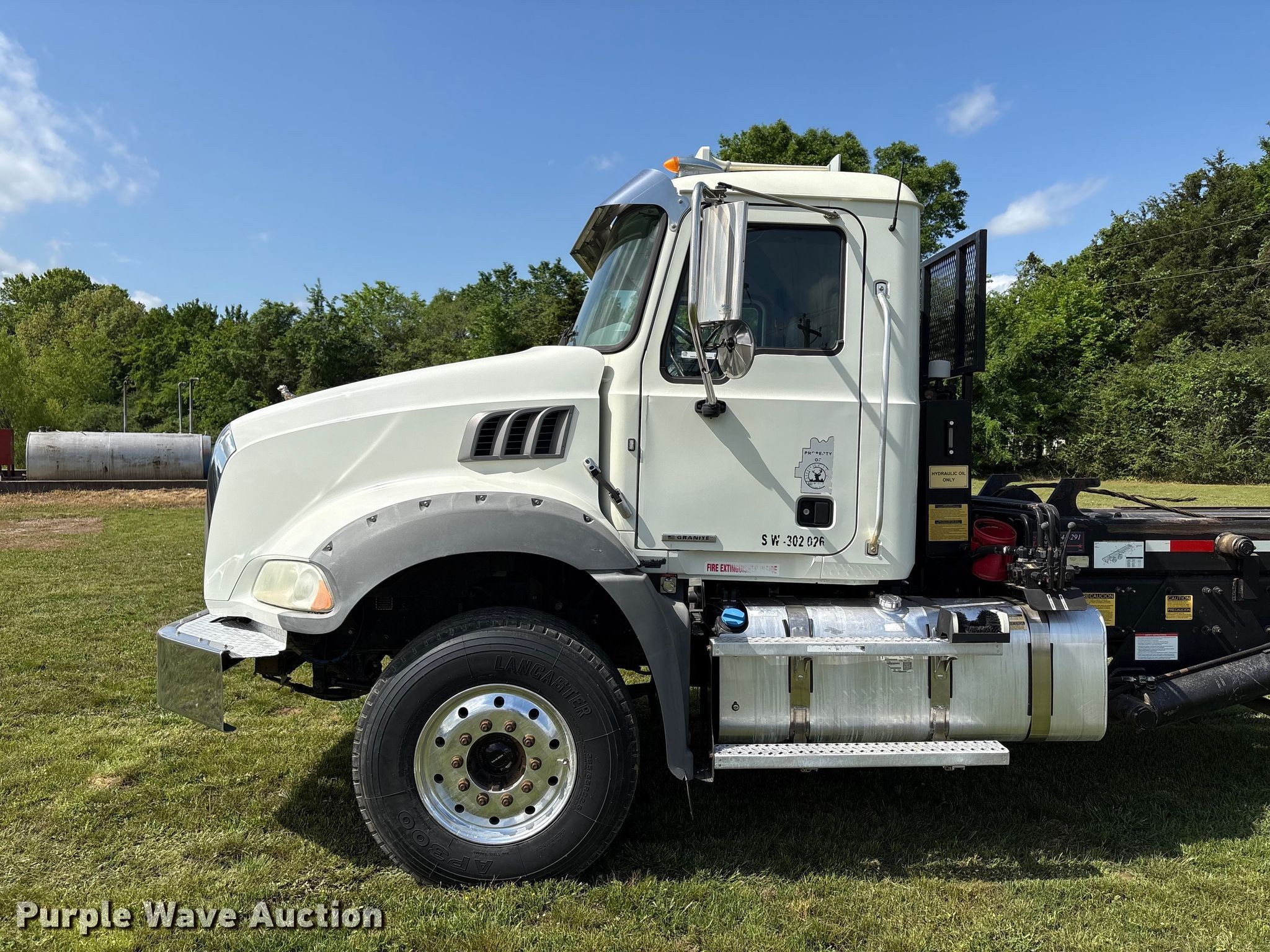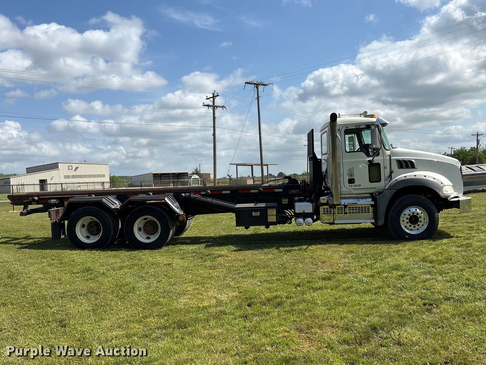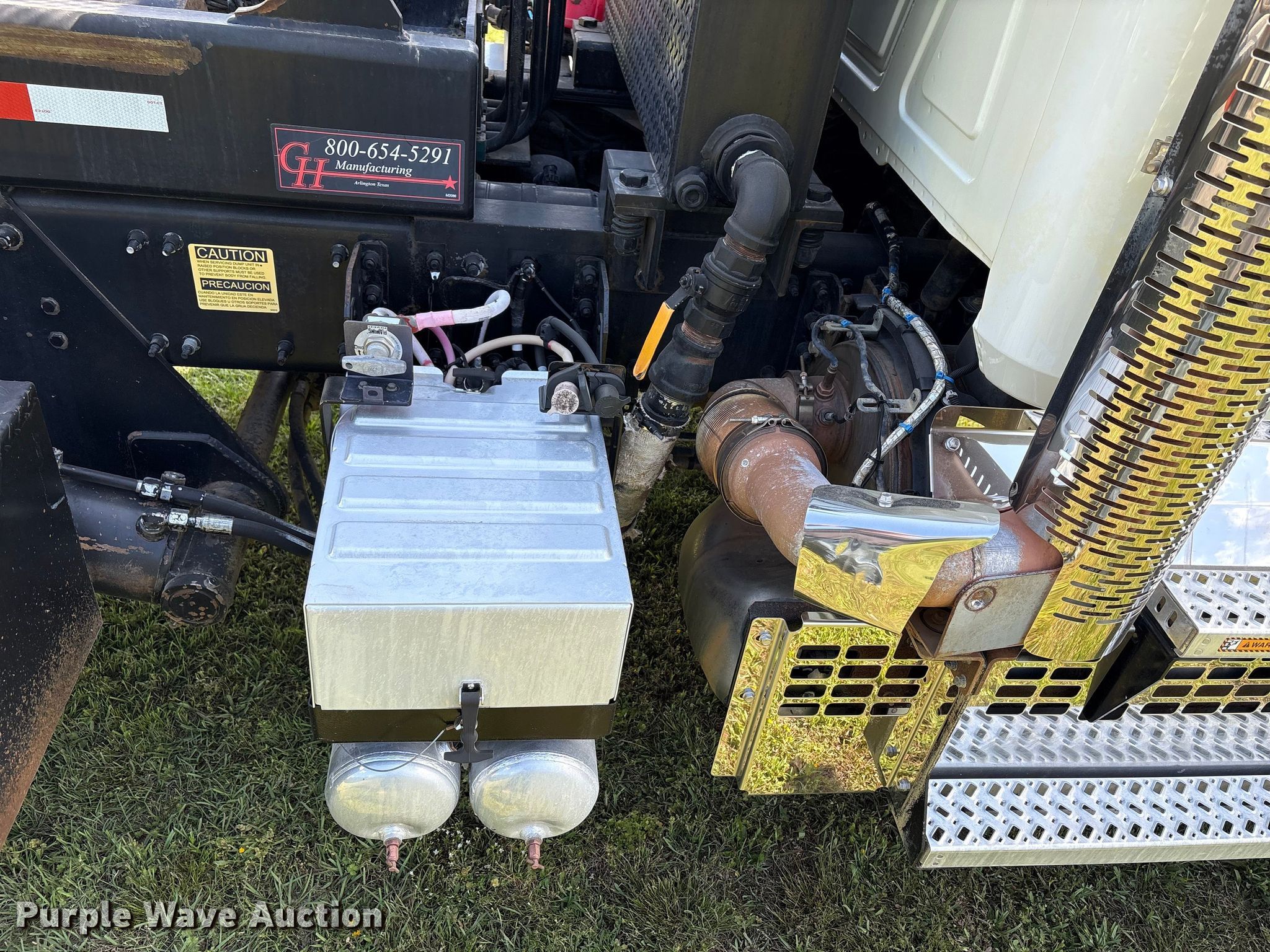 2019 Mack Granite rollback truck. Miles: 289,903 on odometer, Hours: 11,250 on meter, VIN: 1M2GR2GC7KM004988. Engine Mack MP7, Serial: 606502, Displacement: 10.8L, Cylinders: 6, Fuel type: Diesel, HP: 335. Transmission Automatic. Chassis Axles: Tandem, Differential lock: Full, Suspension: Spring, Brakes: Air, PTO, Wet kit, GVWR: 28,458 lbs. Interior AC, Heat, Heated mirrors, Power windows, Power locks, Cruise control, Brake controller. Features Bed Roll-off bed, GH Manufacturing 1575, Serial: 19059265, Length: 23', Width: 33", Ram: Dual, Winch, Rolling tailboard. Tires Front: 385/65R22.5, Rear: 11R22.5. Notes Dash warning indicator: Check engine, Winch cable issues, worn. Oklahoma title. Title distribution may be delayed up to 14 days from verification of funds. LeFlore County Solid Waste. Poteau, OK 74953