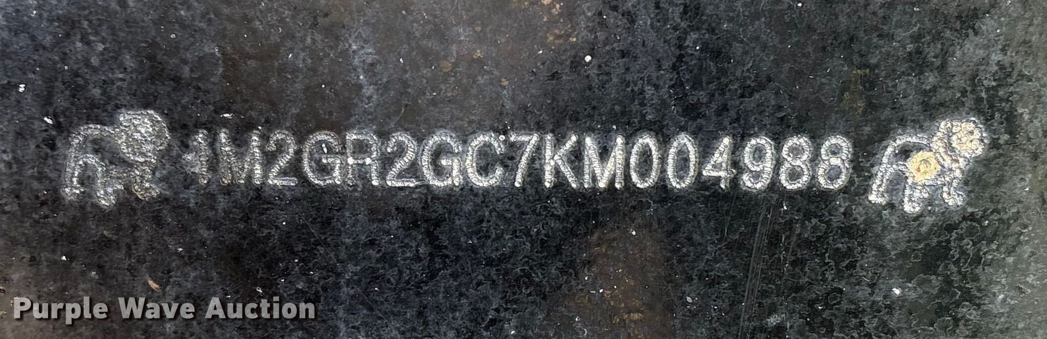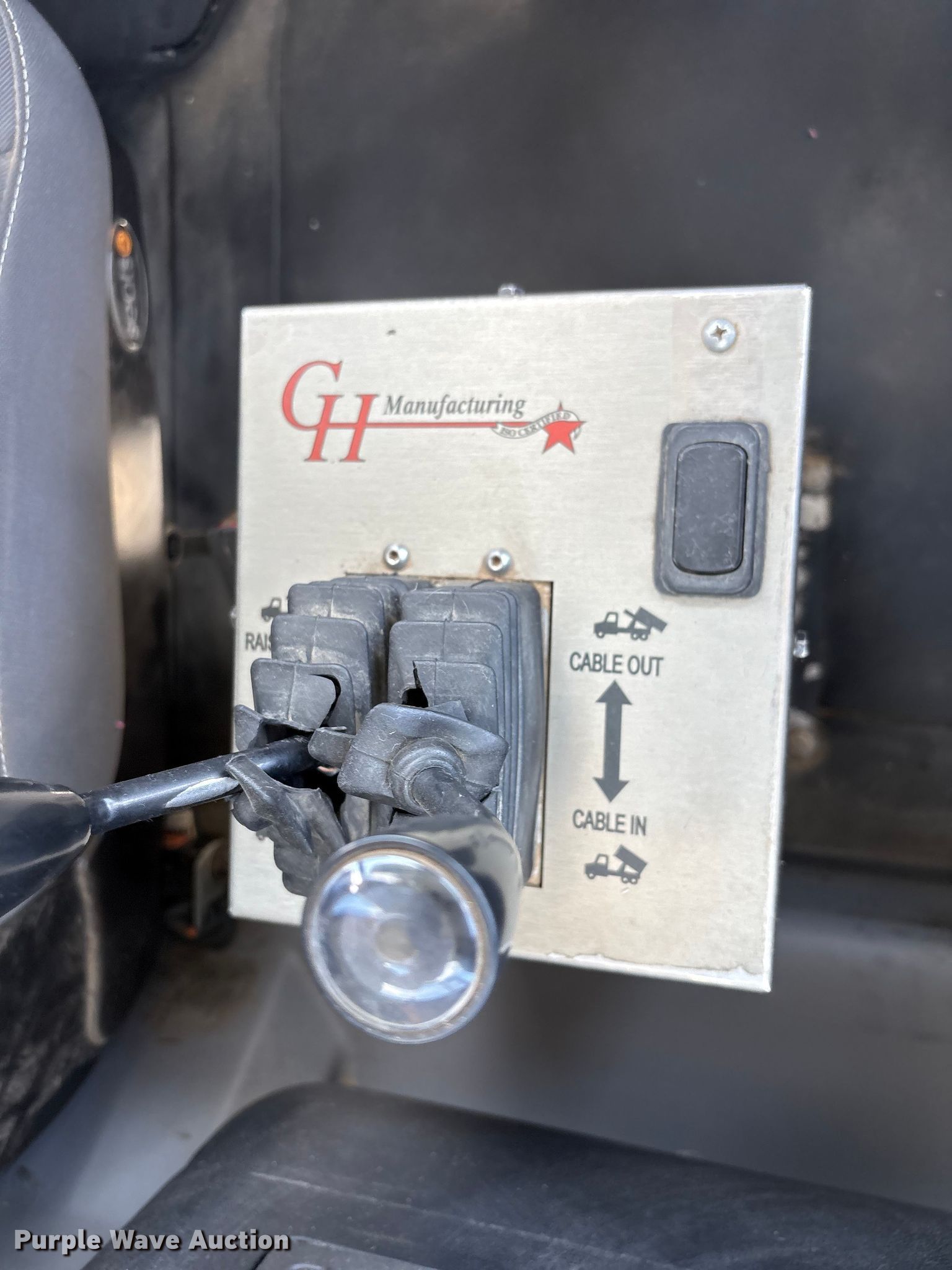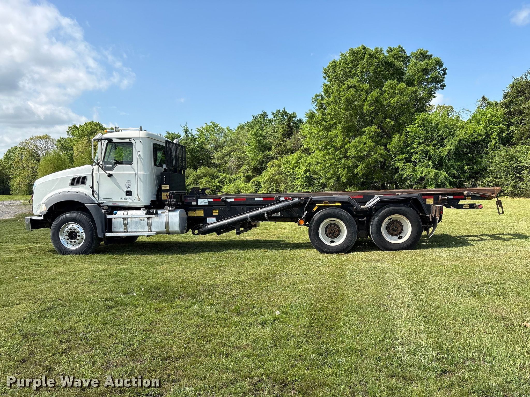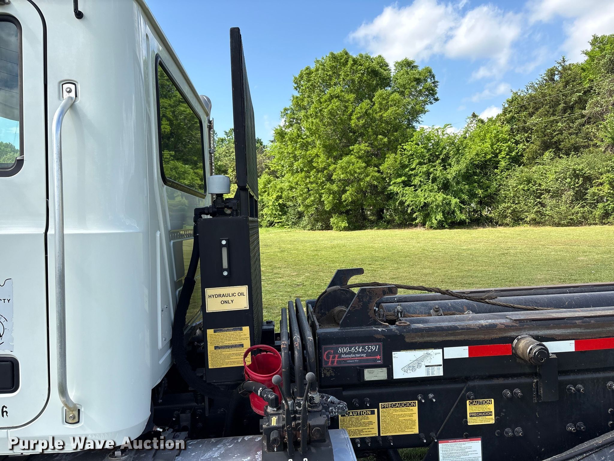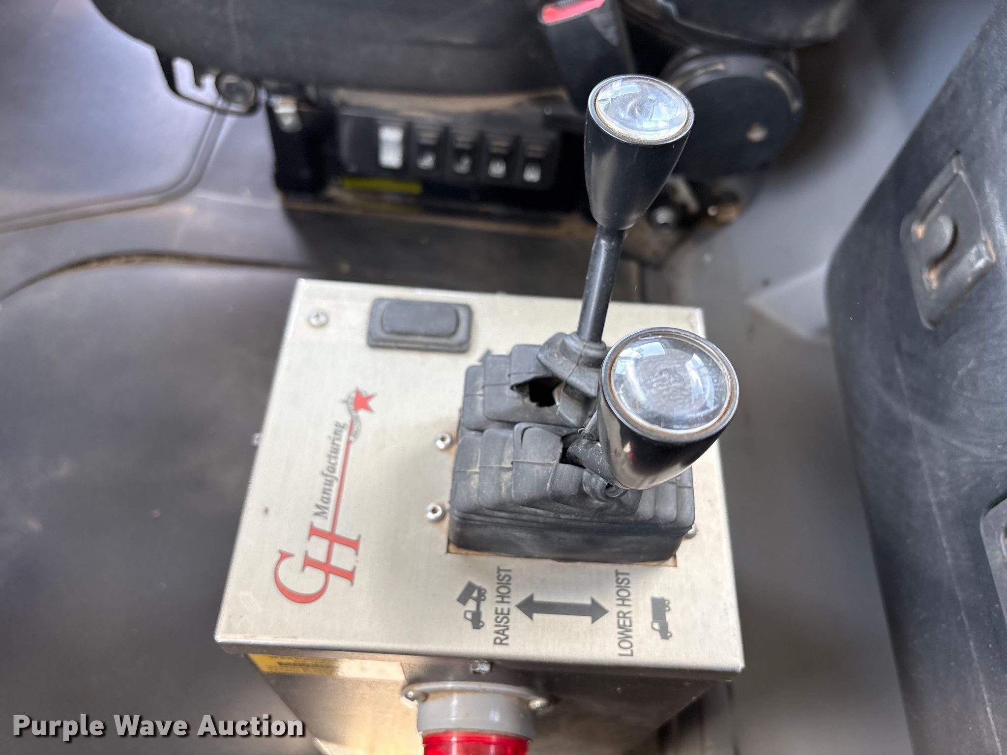 2019 Mack Granite rollback truck. Miles: 289,903 on odometer, Hours: 11,250 on meter, VIN: 1M2GR2GC7KM004988. Engine Mack MP7, Serial: 606502, Displacement: 10.8L, Cylinders: 6, Fuel type: Diesel, HP: 335. Transmission Automatic. Chassis Axles: Tandem, Differential lock: Full, Suspension: Spring, Brakes: Air, PTO, Wet kit, GVWR: 28,458 lbs. Interior AC, Heat, Heated mirrors, Power windows, Power locks, Cruise control, Brake controller. Features Bed Roll-off bed, GH Manufacturing 1575, Serial: 19059265, Length: 23', Width: 33", Ram: Dual, Winch, Rolling tailboard. Tires Front: 385/65R22.5, Rear: 11R22.5. Notes Dash warning indicator: Check engine, Winch cable issues, worn. Oklahoma title. Title distribution may be delayed up to 14 days from verification of funds. LeFlore County Solid Waste. Poteau, OK 74953