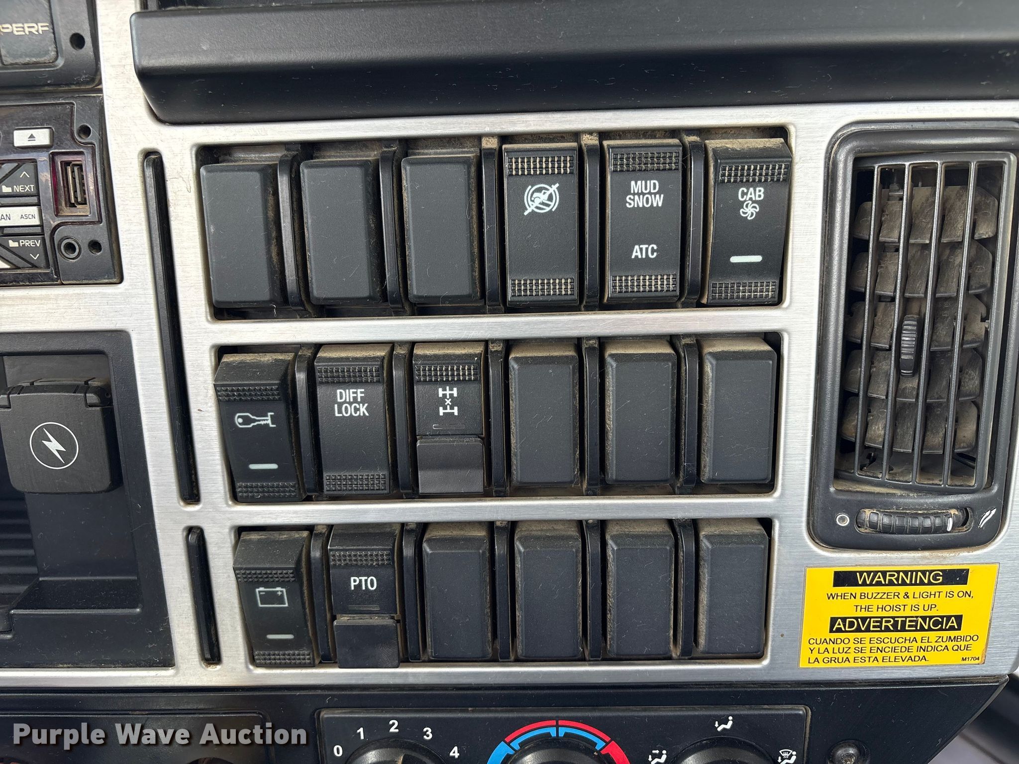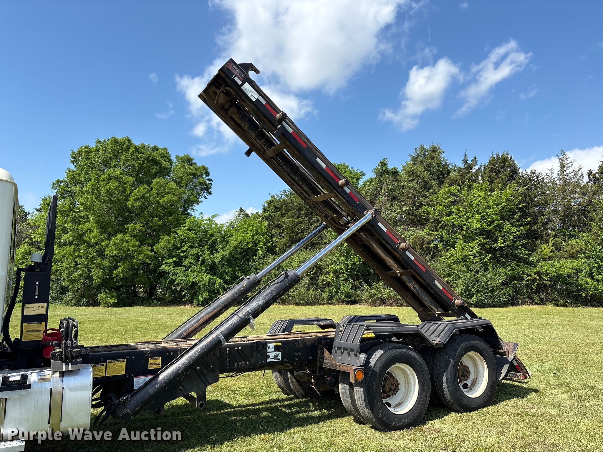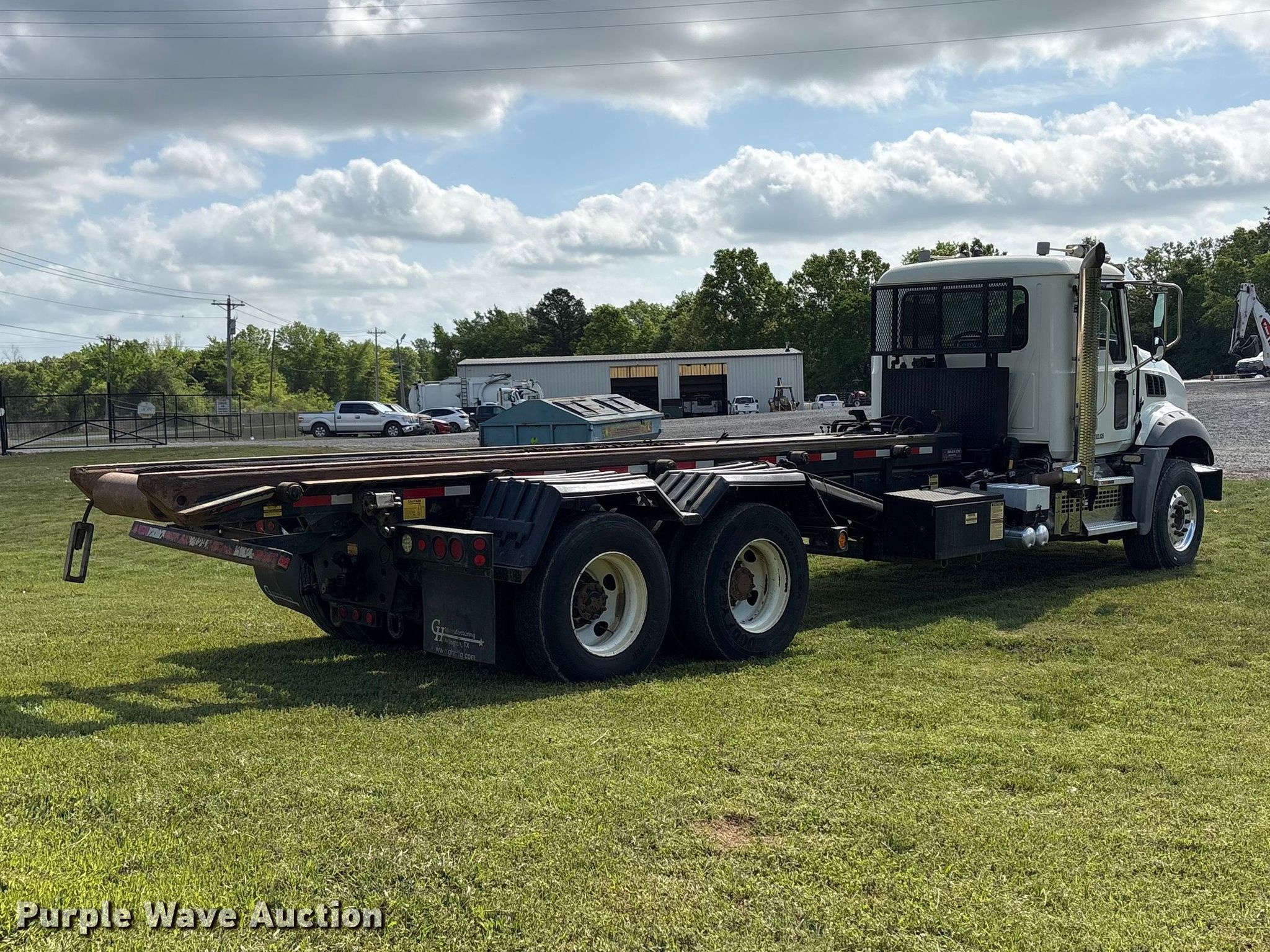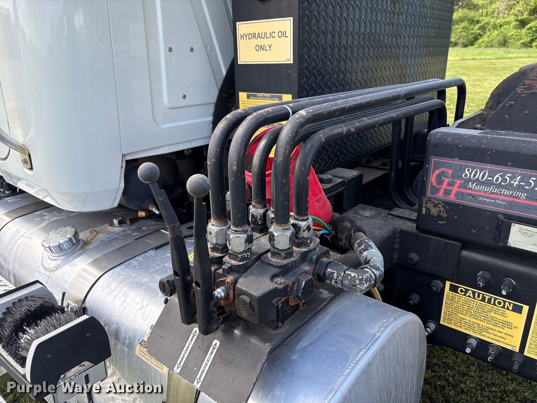 2019 Mack Granite rollback truck. Miles: 289,903 on odometer, Hours: 11,250 on meter, VIN: 1M2GR2GC7KM004988. Engine Mack MP7, Serial: 606502, Displacement: 10.8L, Cylinders: 6, Fuel type: Diesel, HP: 335. Transmission Automatic. Chassis Axles: Tandem, Differential lock: Full, Suspension: Spring, Brakes: Air, PTO, Wet kit, GVWR: 28,458 lbs. Interior AC, Heat, Heated mirrors, Power windows, Power locks, Cruise control, Brake controller. Features Bed Roll-off bed, GH Manufacturing 1575, Serial: 19059265, Length: 23', Width: 33", Ram: Dual, Winch, Rolling tailboard. Tires Front: 385/65R22.5, Rear: 11R22.5. Notes Dash warning indicator: Check engine, Winch cable issues, worn. Oklahoma title. Title distribution may be delayed up to 14 days from verification of funds. LeFlore County Solid Waste. Poteau, OK 74953