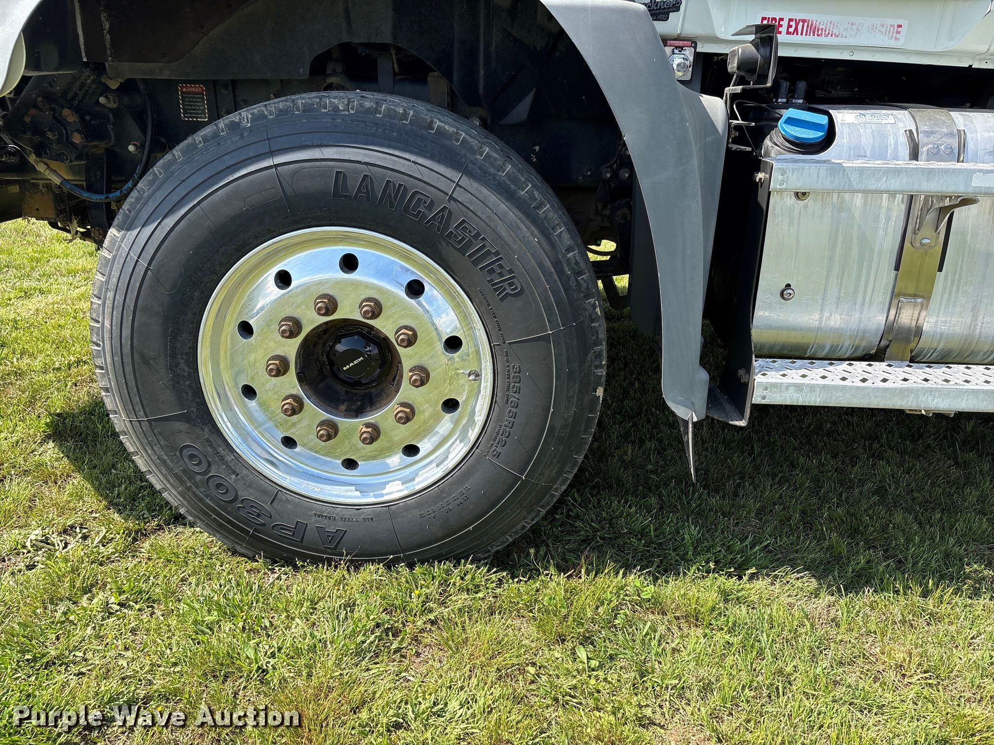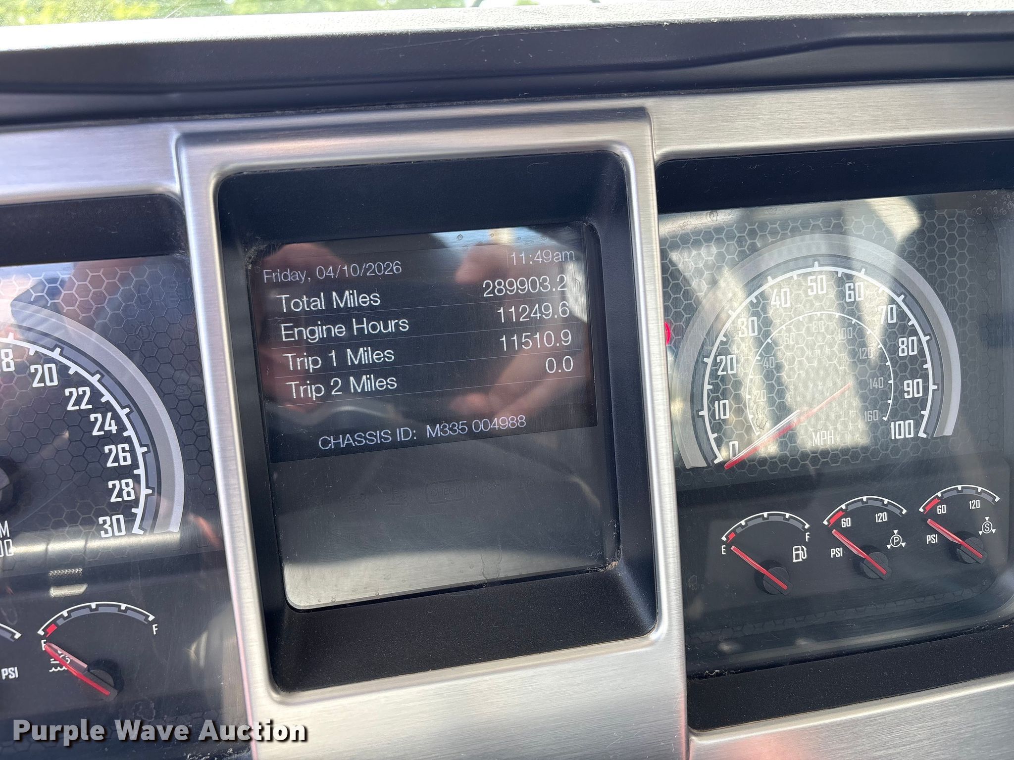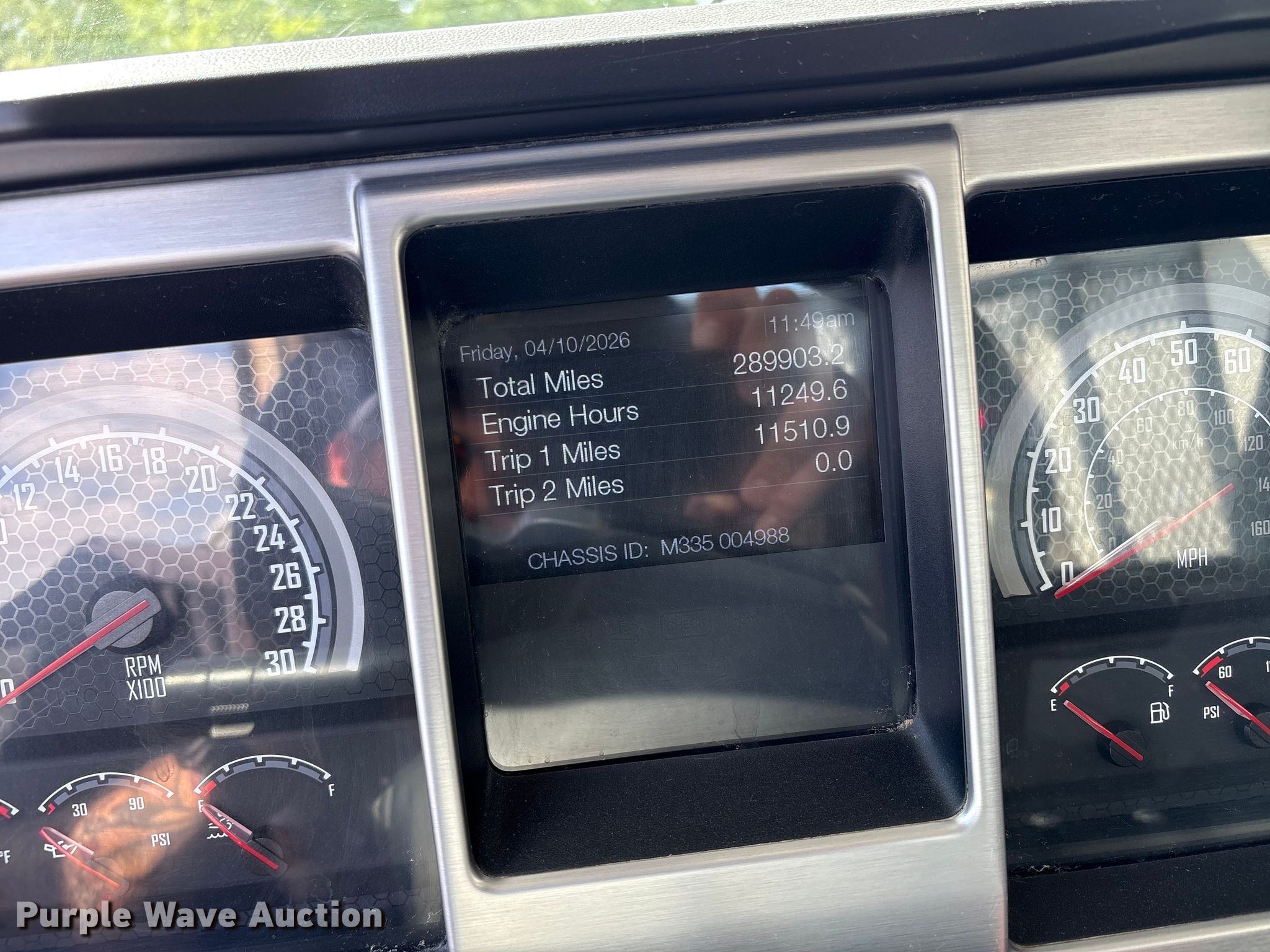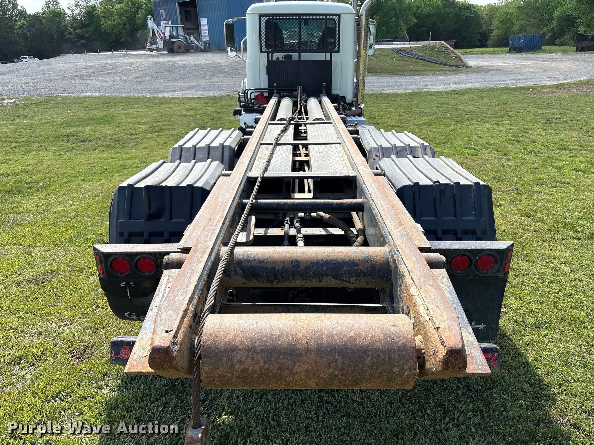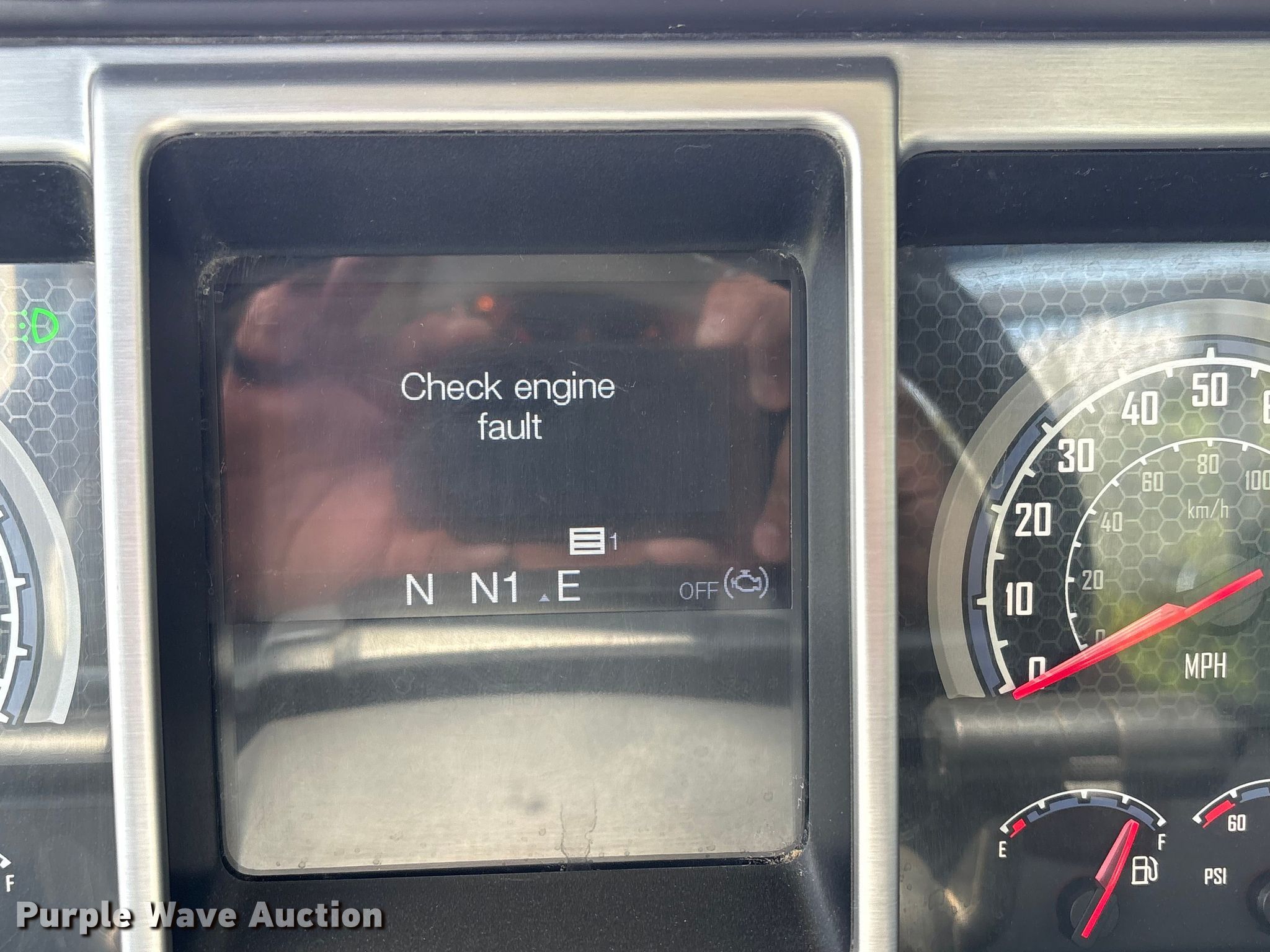 2019 Mack Granite rollback truck. Miles: 289,903 on odometer, Hours: 11,250 on meter, VIN: 1M2GR2GC7KM004988. Engine Mack MP7, Serial: 606502, Displacement: 10.8L, Cylinders: 6, Fuel type: Diesel, HP: 335. Transmission Automatic. Chassis Axles: Tandem, Differential lock: Full, Suspension: Spring, Brakes: Air, PTO, Wet kit, GVWR: 28,458 lbs. Interior AC, Heat, Heated mirrors, Power windows, Power locks, Cruise control, Brake controller. Features Bed Roll-off bed, GH Manufacturing 1575, Serial: 19059265, Length: 23', Width: 33", Ram: Dual, Winch, Rolling tailboard. Tires Front: 385/65R22.5, Rear: 11R22.5. Notes Dash warning indicator: Check engine, Winch cable issues, worn. Oklahoma title. Title distribution may be delayed up to 14 days from verification of funds. LeFlore County Solid Waste. Poteau, OK 74953