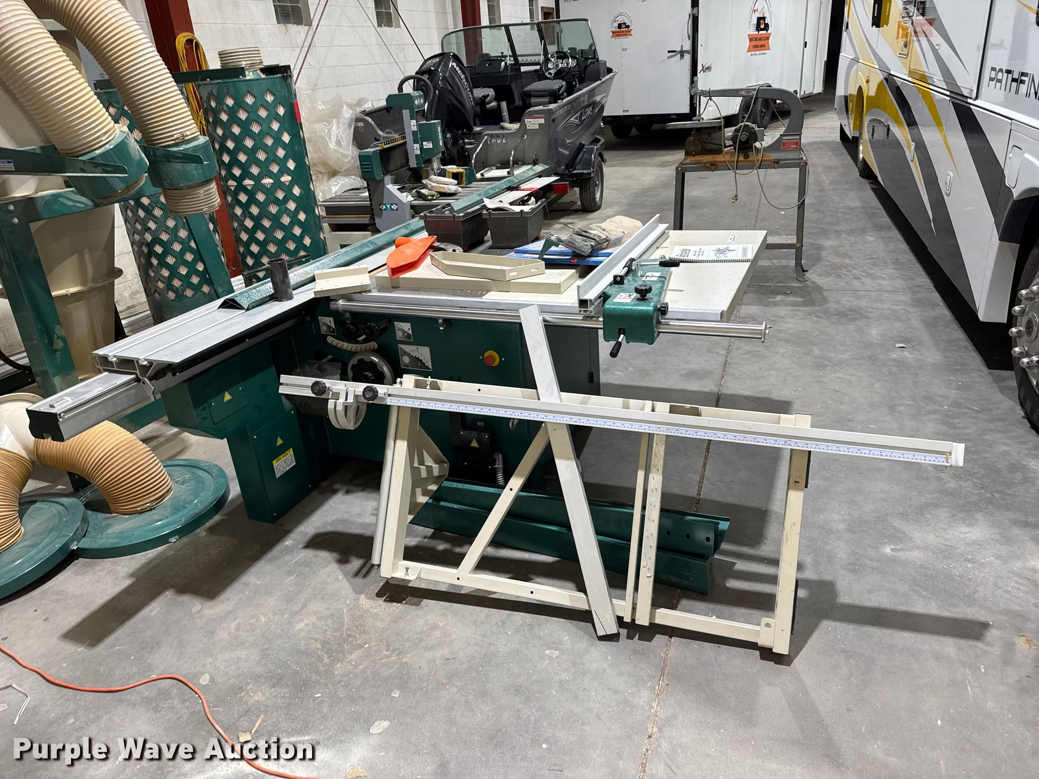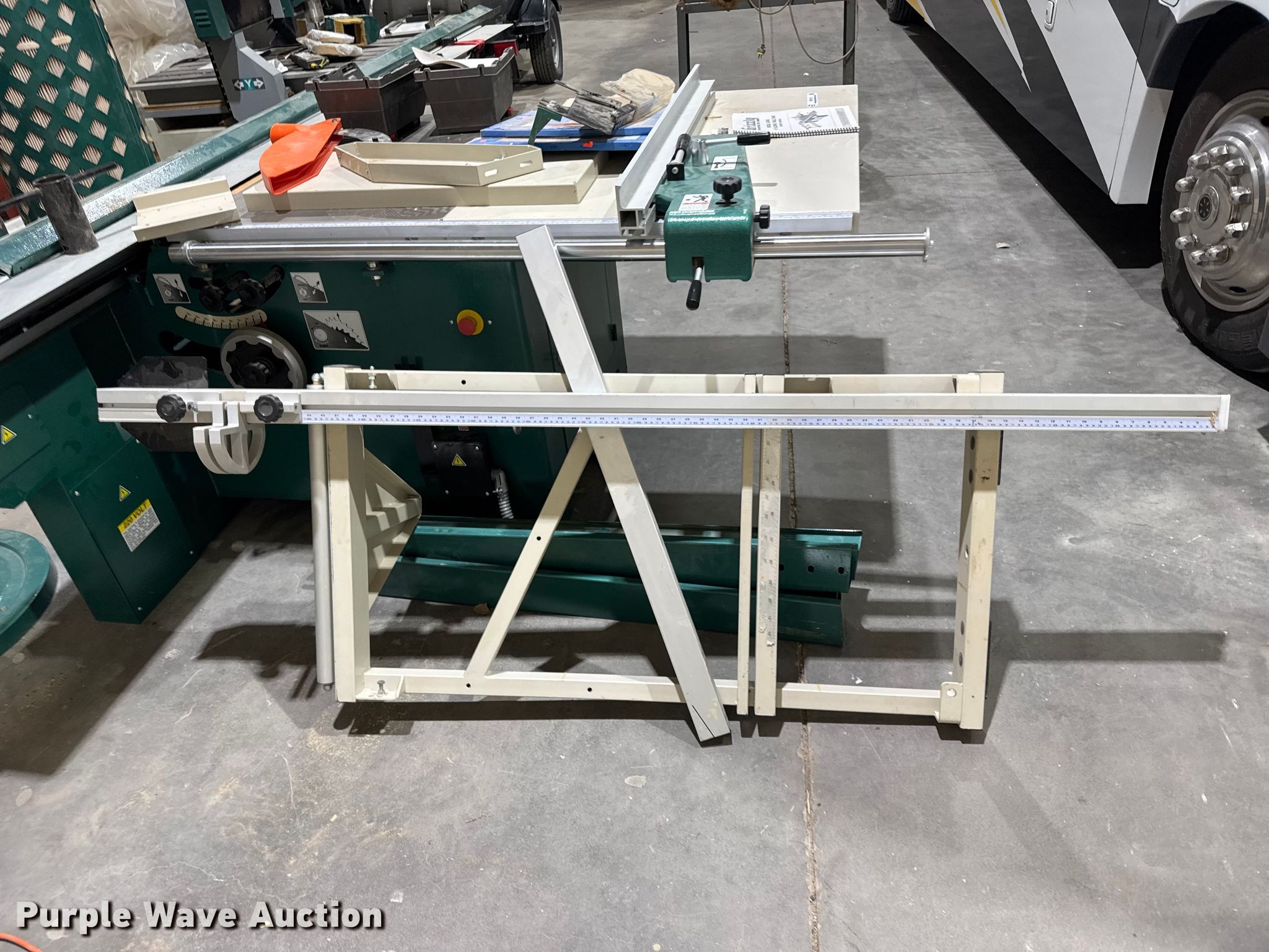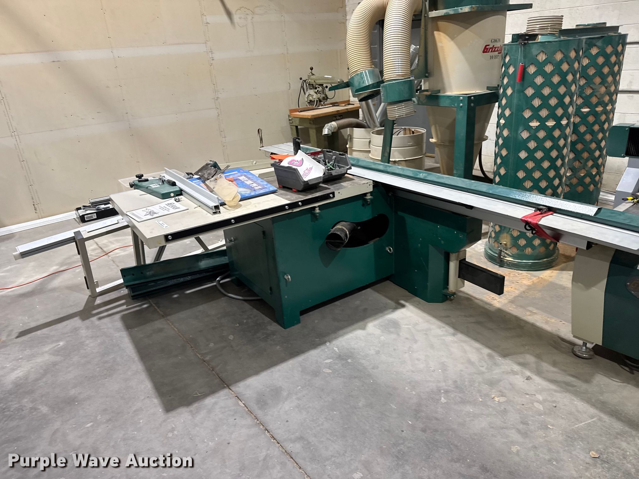Purple Wave is selling a used Wood Saws in Kansas. This item is a Grizzly G0493 sliding table saw with the following: Overall, Length: 11', Width: 76"