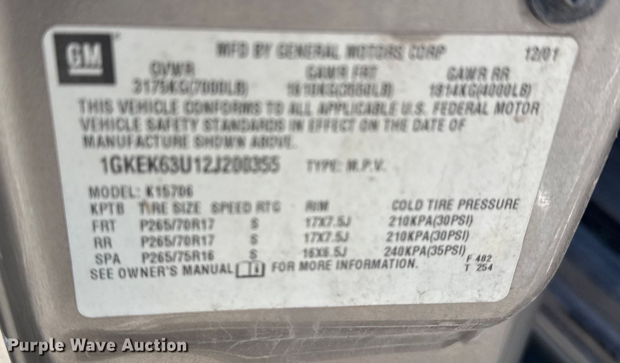 Purple Wave is selling a used Passenger Vehicle in Oklahoma. This item is a 2002 GMC Yukon SUV with the following: Miles: 242,344 on odometer, VIN: 1GKEK63U12J200355, Unit #: 502