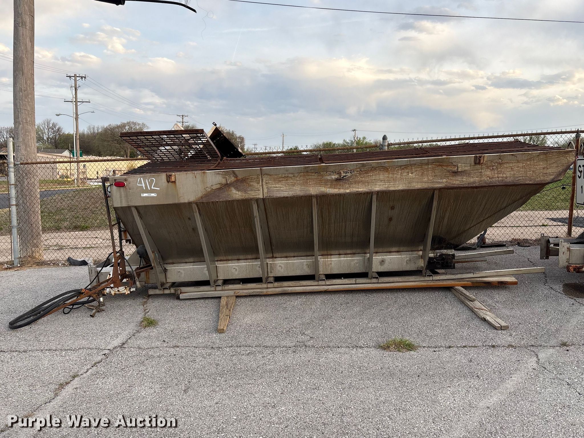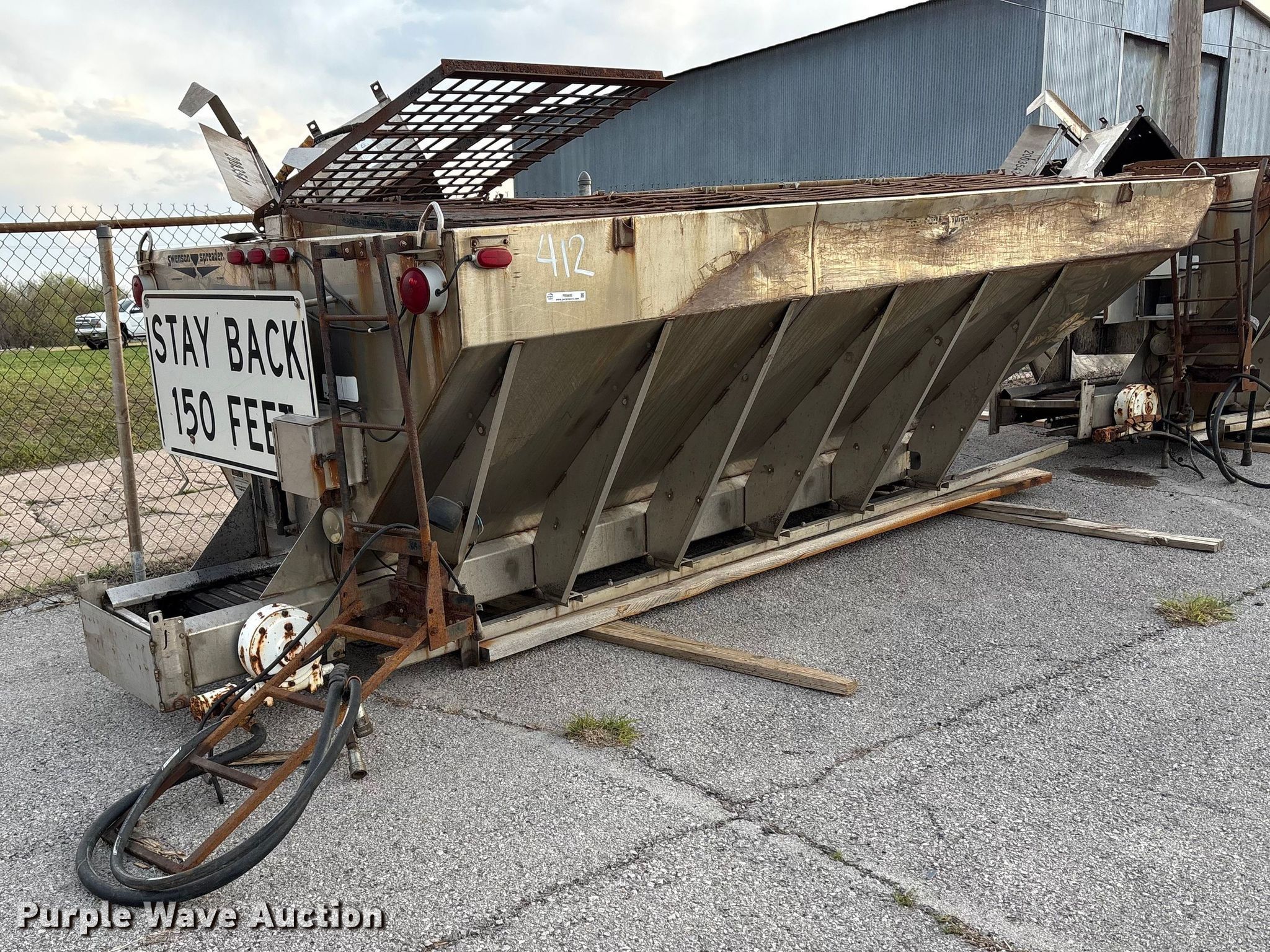 Purple Wave is selling a used Truck Part and Attach. in Oklahoma. This item is a Swenson spreader with the following: Unit #: 412, Length: 15', Width: 84", Height: 4' 4", Capacity: 10 cu.yd., Conveyor width: 17"