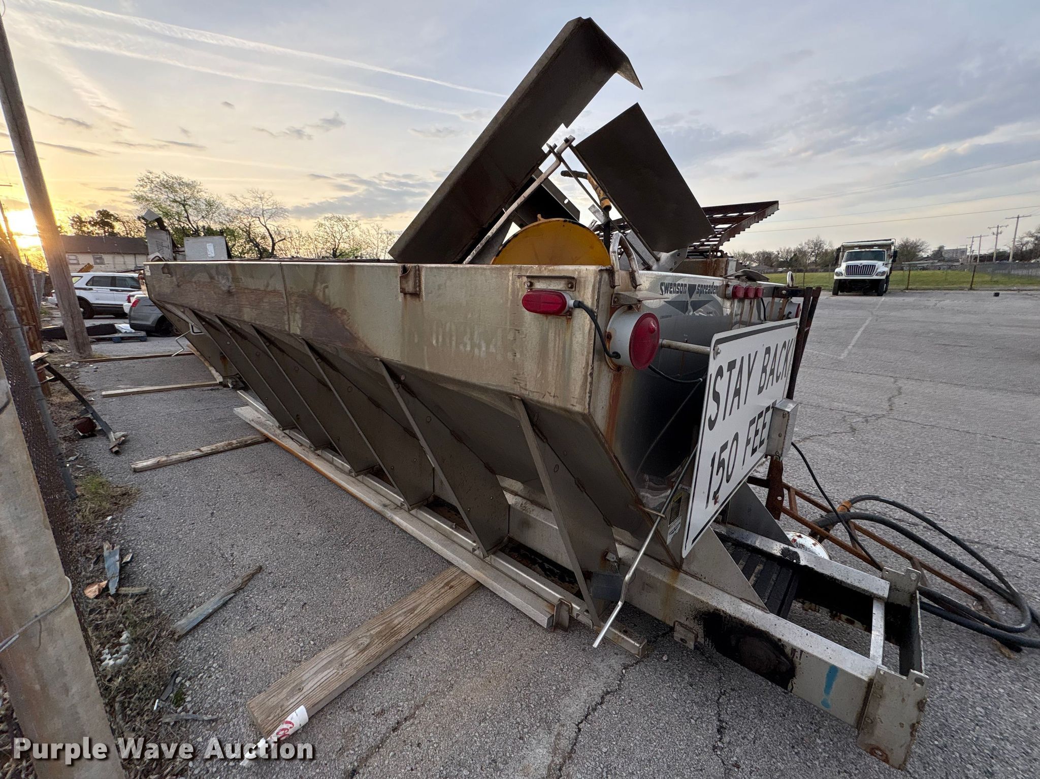 Swenson spreader. Unit #: 412, Length: 15', Width: 84", Height: 4' 4", Capacity: 10 cu.yd., Conveyor width: 17". City of Tulsa. 108 N Trenton Ave. Tulsa, OK 74120