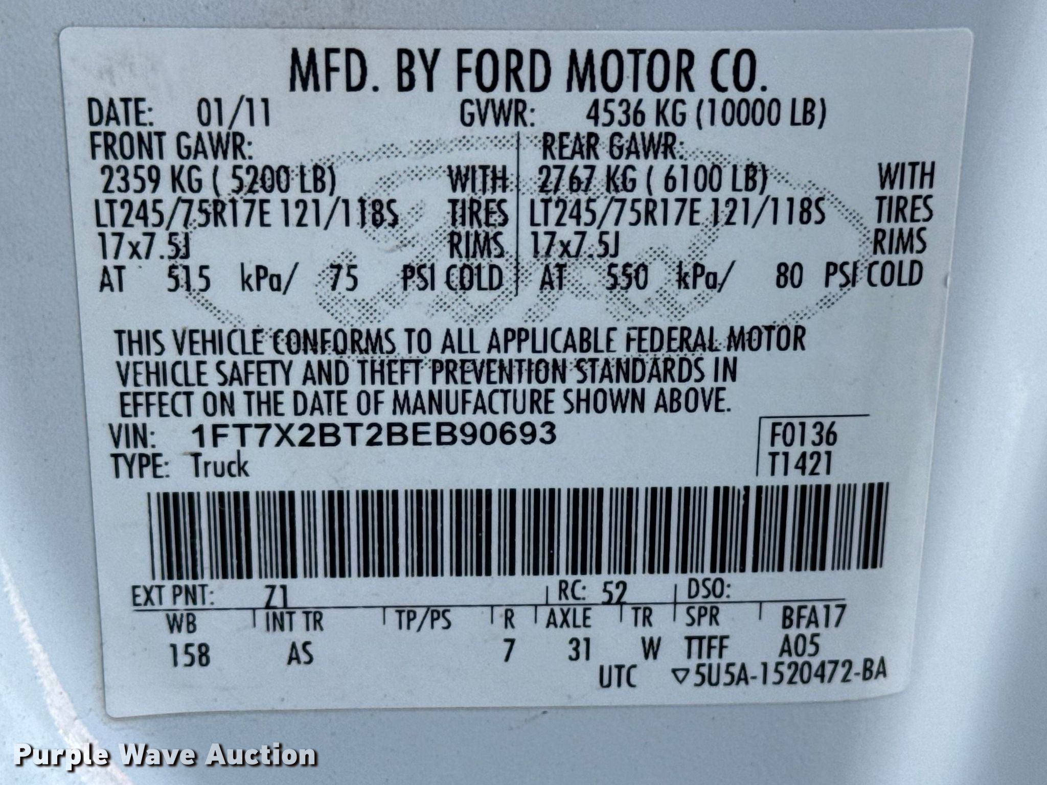- VIN: 1FT7X2BT2BEB90693