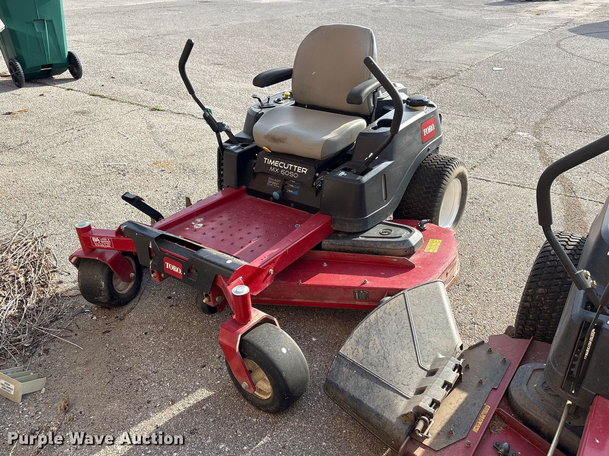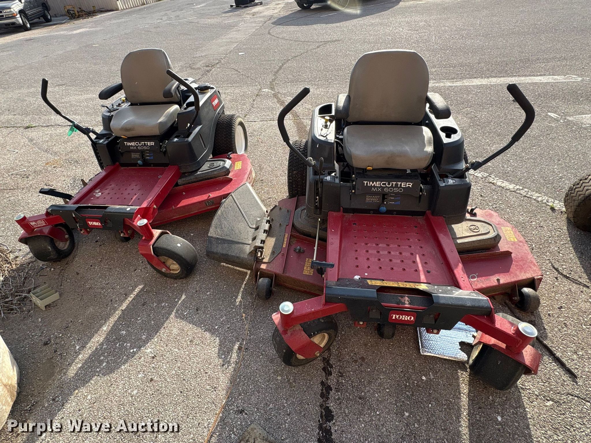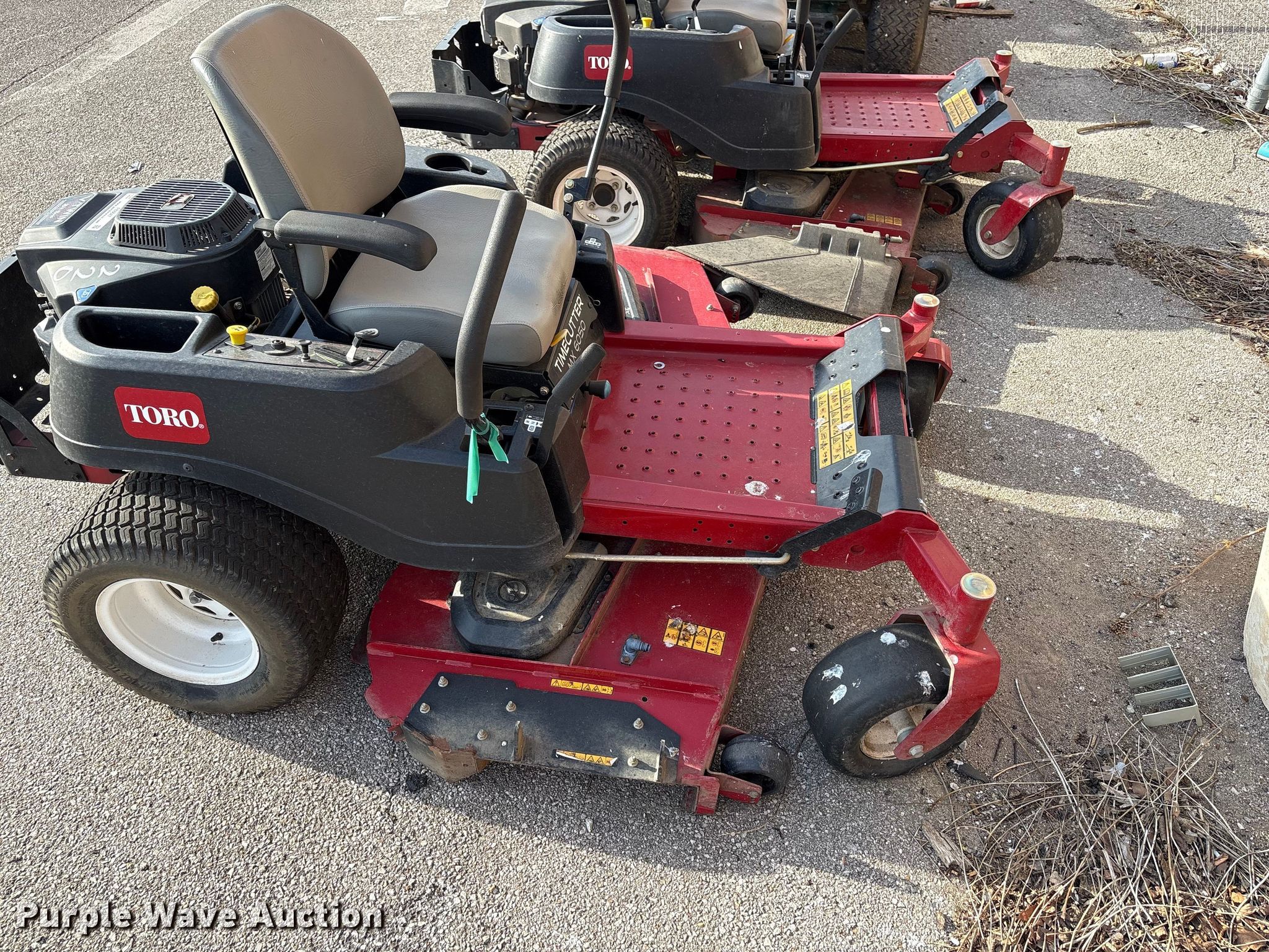 Purple Wave is selling a used Commercial Turf Mower in Oklahoma. This item is a (2) 2017 Toro Time Cutter MX6050 ZTR lawn mowers with the following: Cutting width: 60", Serial: 400214894, Hours: 133 on meter, Serial: 400328410, Hours: 134 on meter, Unit #: 221