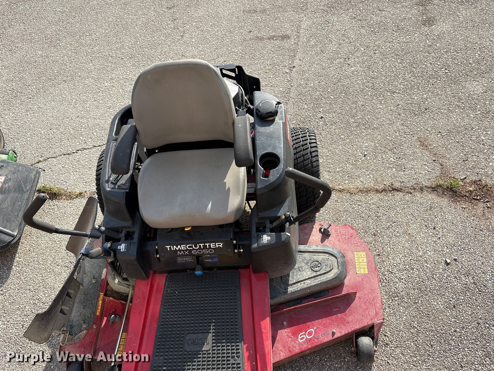 Purple Wave is selling a used Commercial Turf Mower in Oklahoma. This item is a 2017 Toro Time Cutter MX6050 ZTR lawn mower with the following: Hours: 105 on meter, Cutting width: 60", Serial: 400214893, Unit #: 222