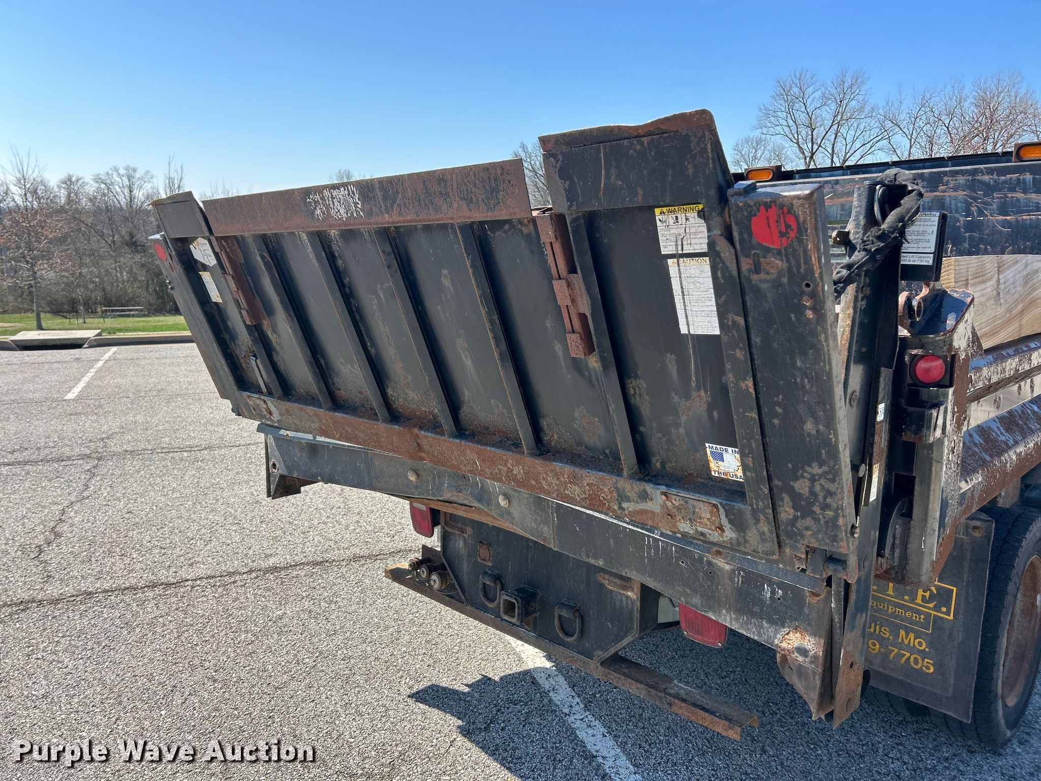 2009 Ford F450 XL Super Duty dump truck. Miles: 31,215 on odometer, VIN: 1FDAF47R79EA90791. Engine Displacement: 6.4L, Cylinders: 8, Fuel type: Diesel. Transmission Automatic. Chassis Axles: Single, Suspension: Spring, Brakes: Hydraulic, GVWR: 16,500 lbs, Four wheel drive. Interior AC, Heat. Features Bed Dump bed, Length: 9', Width: 94", Bed type: Steel, Ram: Single. Tires Size: 225/70R19.5. Notes Non-operational tommy gate. Missouri title. Title distribution may be delayed up to 30 days from verification of funds. City Of Manchester, MO. Manchester, MO 63021