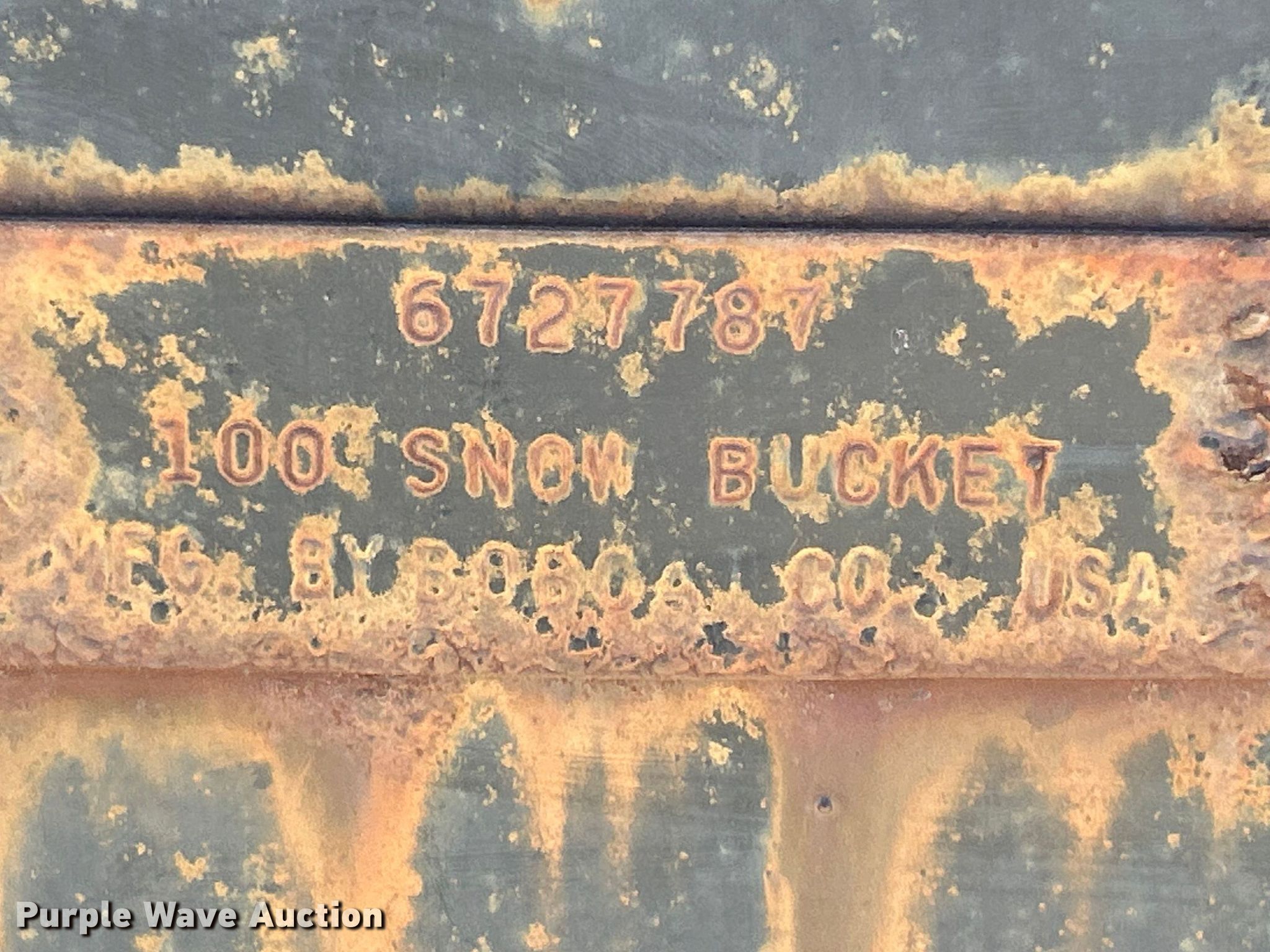 Purple Wave is selling a used Skid Steer Attach. in Missouri. This item is a Bobcat 100" W skid steer bucket with the following: Serial: 6727787, Cutting edge: Bolt-on
