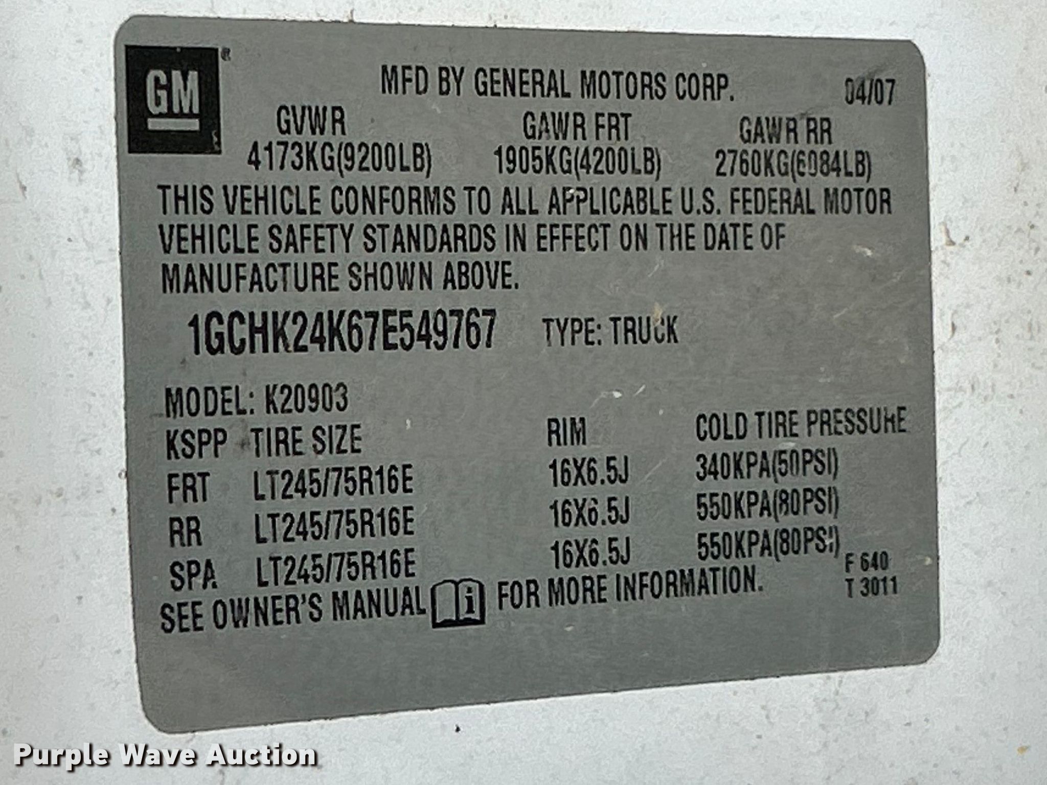 - VIN: 1GCHK24K67E549767