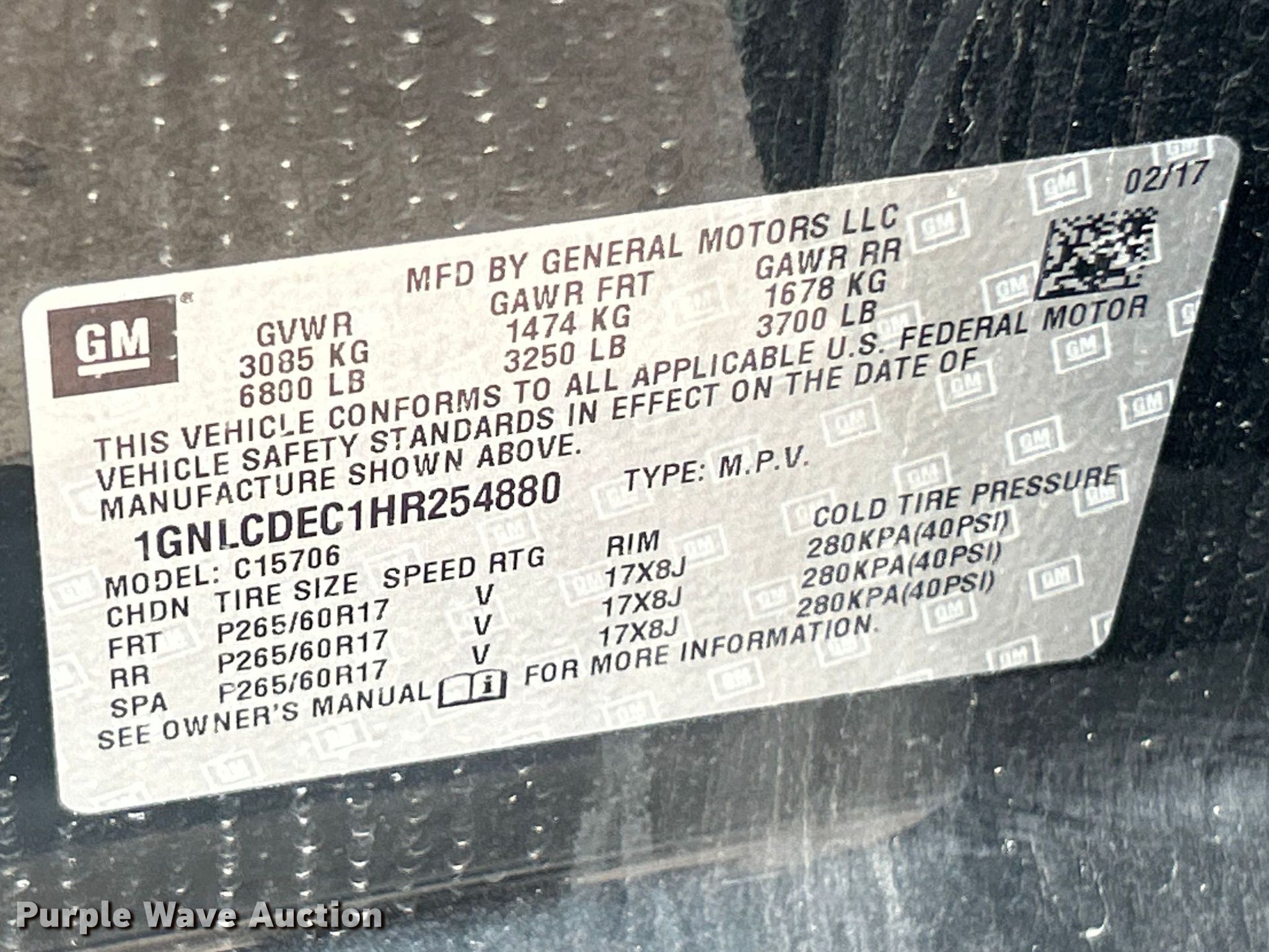 - VIN: 1GNLCDEC1HR254880