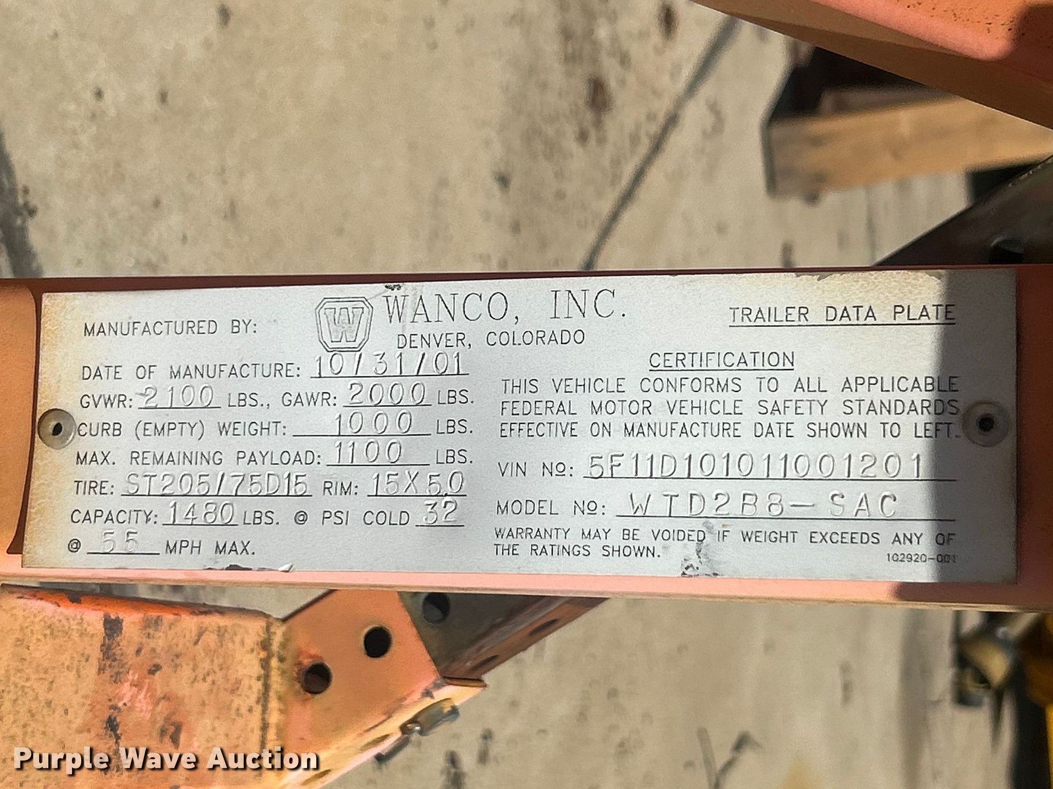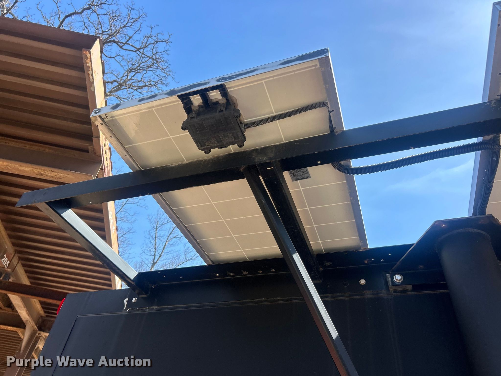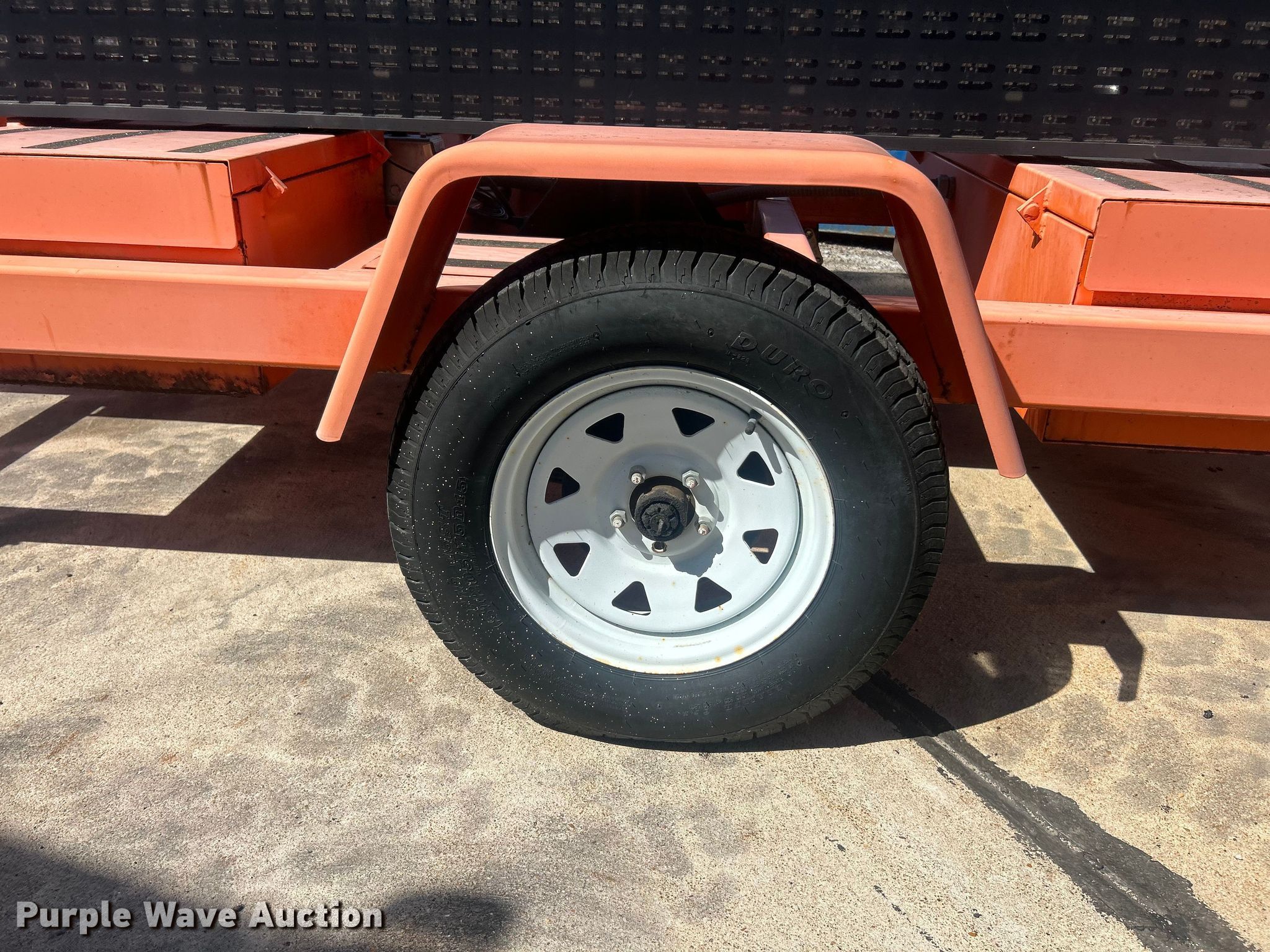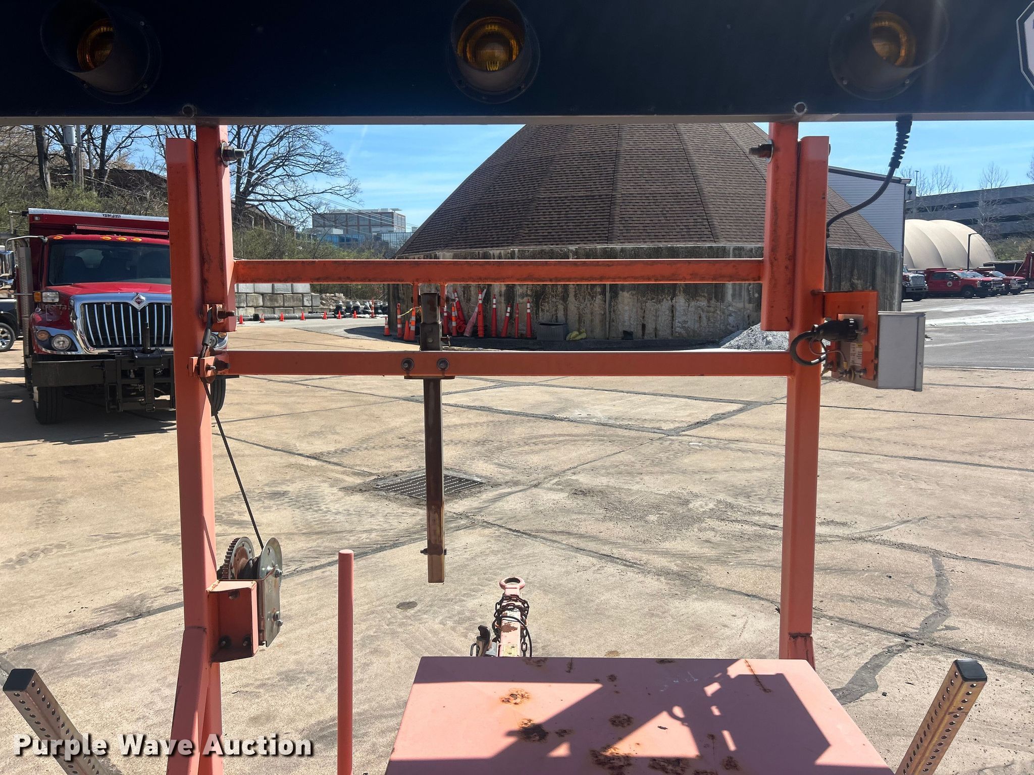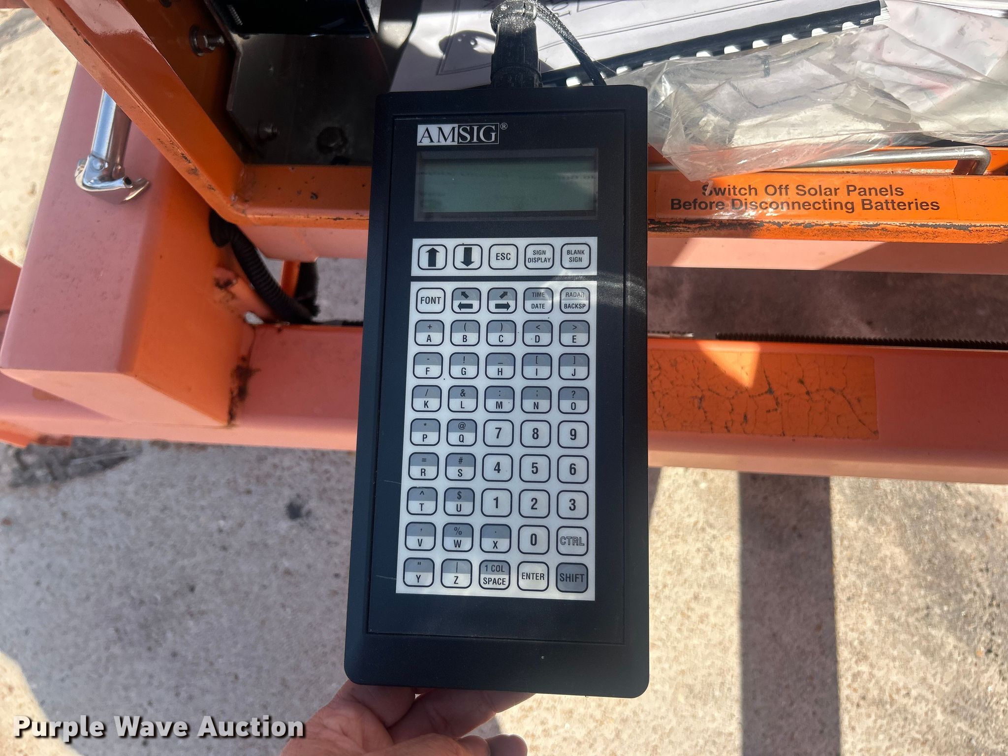(2) road safety signs. Wanco WTD2B8-SAC arrow board. VIN: 5F11D101011001201. Engine Lombardi, Cylinders: 1, Fuel: Diesel, Hours: 3085. Features Hitch: Pintle, Landing gear: Single, Spring suspension, GVWR: 2100, GAWR: 2000. Tires Size: 205/75D15, Steel wheels. Wanco WTD3B8-SA arrow board VIN: 5F11D101471000299. Engine Predator, Cylinders: 1 cylinder, Fuel: Gas, Features , Hitch: Pintle, Landing gear: Single, Suspension: Spring, GVWR: 2100, GAWR: 2000. Tires Size: 205/75D15, Steel wheels. American Signal message board Features Overall dimensions: 15'L x 80"W x 9'H, Board Dimensions: 11'6"W x 79"H, Solar panels. Tires Size: 205/75D15, Steel wheels. Notes Non-operational. This is worksite support equipment and will not come with a title. Transfer of ownership documentation will be a bill of sale. City of Creve Coeur, MO. St. Louis, MO 63141