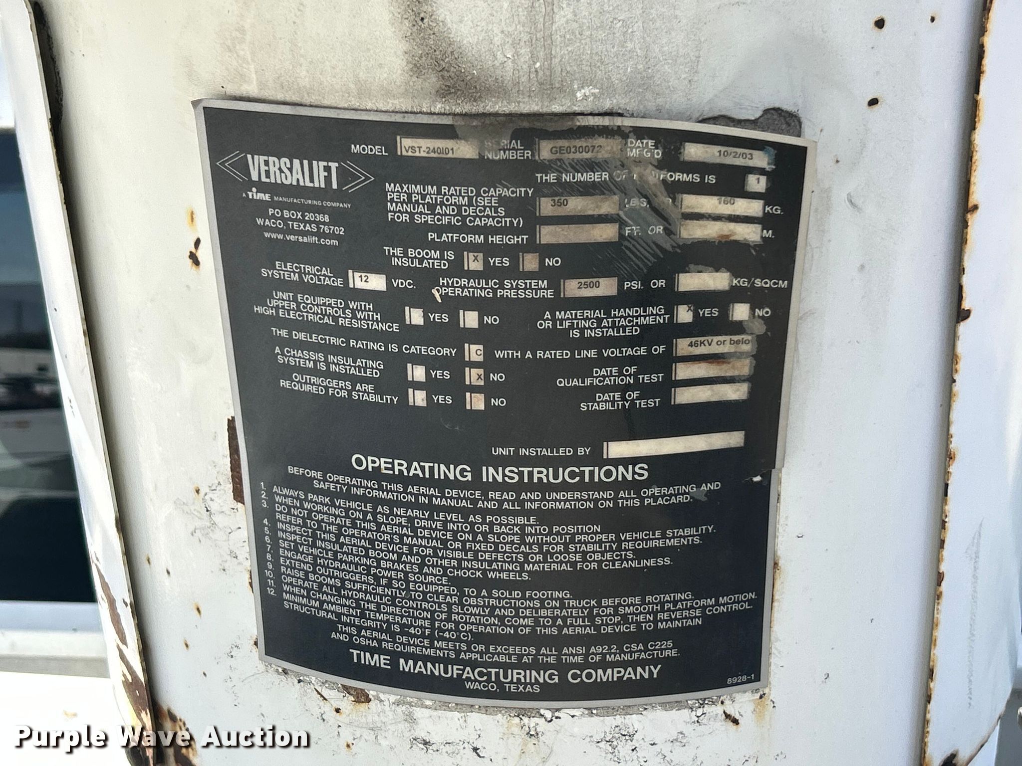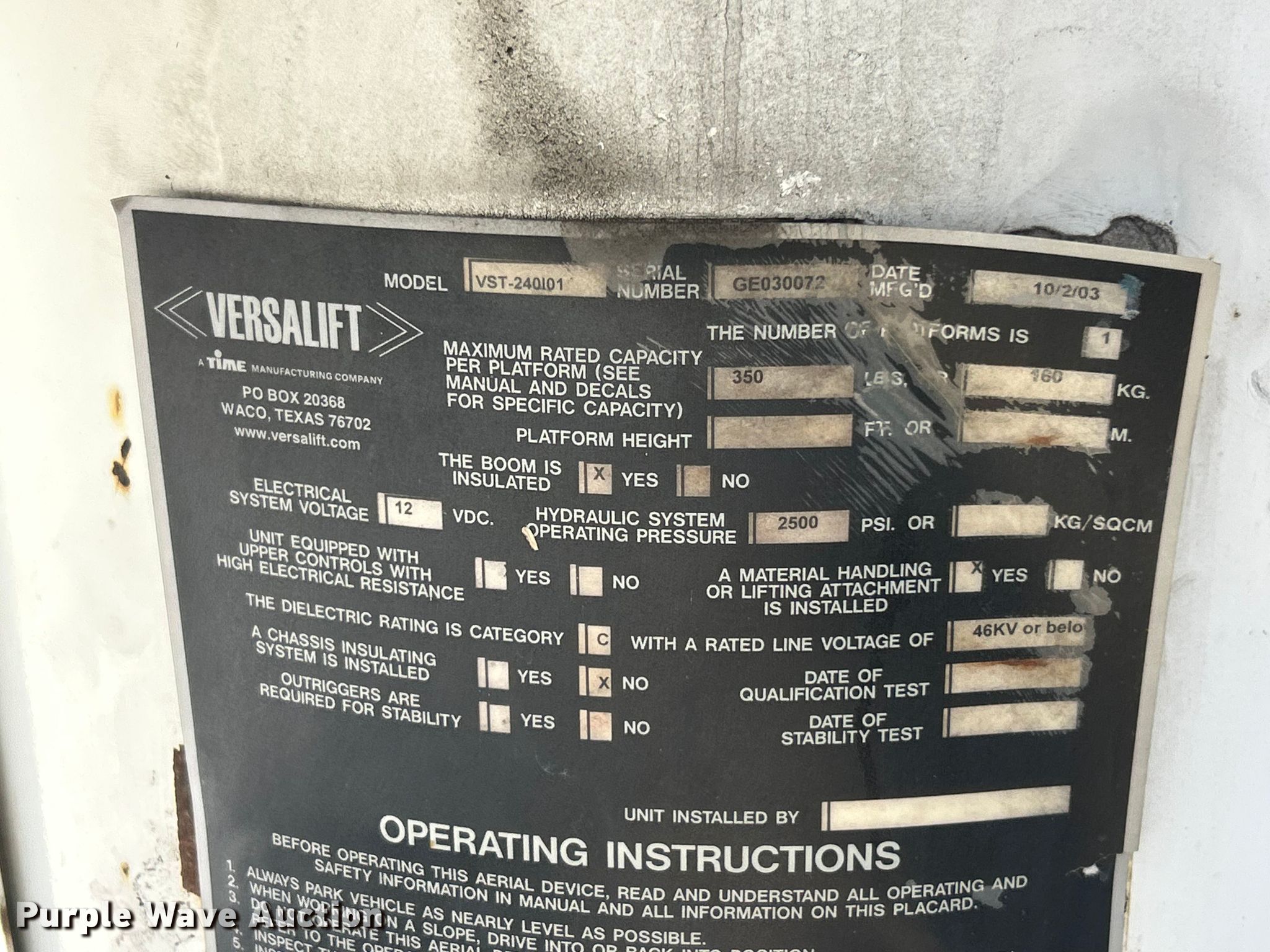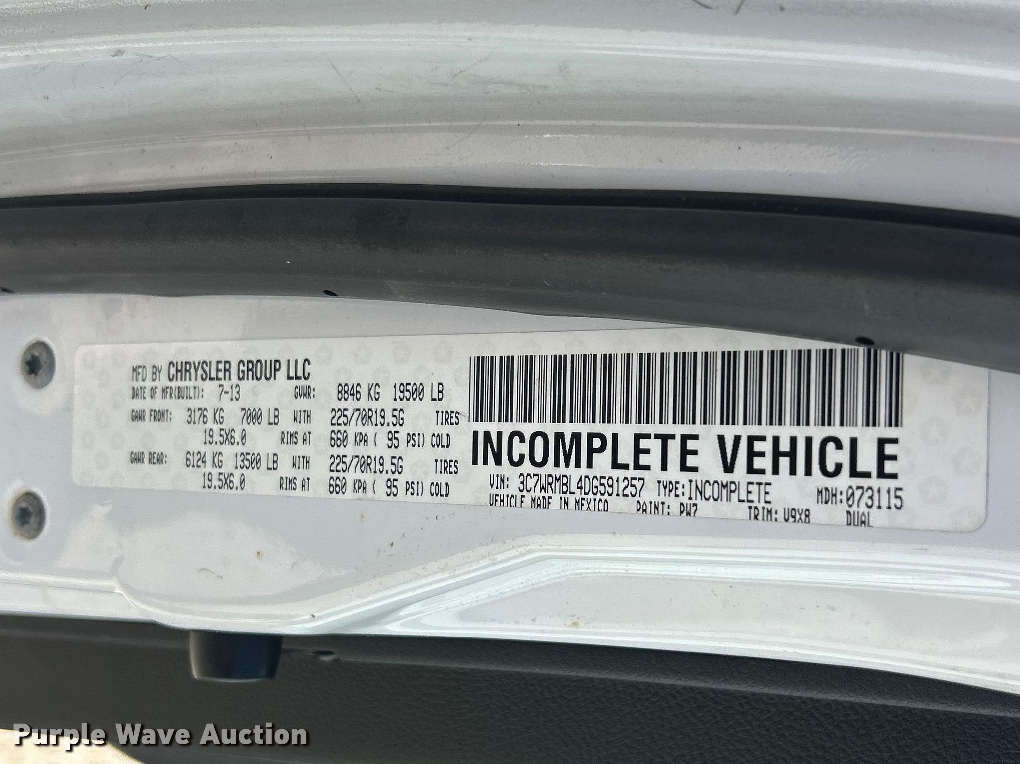 2013 RAM 5500 bucket truck. Miles: 178,325 on odometer, VIN: 3C7WRMBL4DG591257, Unit #: G9698. Engine Displacement: 6.7L, Cylinders: 8, Fuel type: Diesel. Transmission Automatic. Chassis Axles: Single, Suspension: Spring, Brakes: Hydraulic, GVWR: 19,500 lbs. Interior AC, Heat, Cruise control. Features Bed Utility bed, Knapheide, Length: 11', Width: 94", Boom Versalift VST-240101, Serial: GE030072, Maximum lift capacity: 350 lbs, Boom type: Articulating, Telescopic, Man basket, Boom controls Lower, Basket.. Tires Size: 225/70R19.5. Notes Dash warning indicator: Check engine, Battery, Jump start required during on-site data collection, Master leveling cylinder issues, blown, Rotation bearing issues, out of spec. Missouri title. Title distribution may be delayed up to 30 days from verification of funds. Missouri Dept. of Transportation - District 6. Ballwin, MO 63021