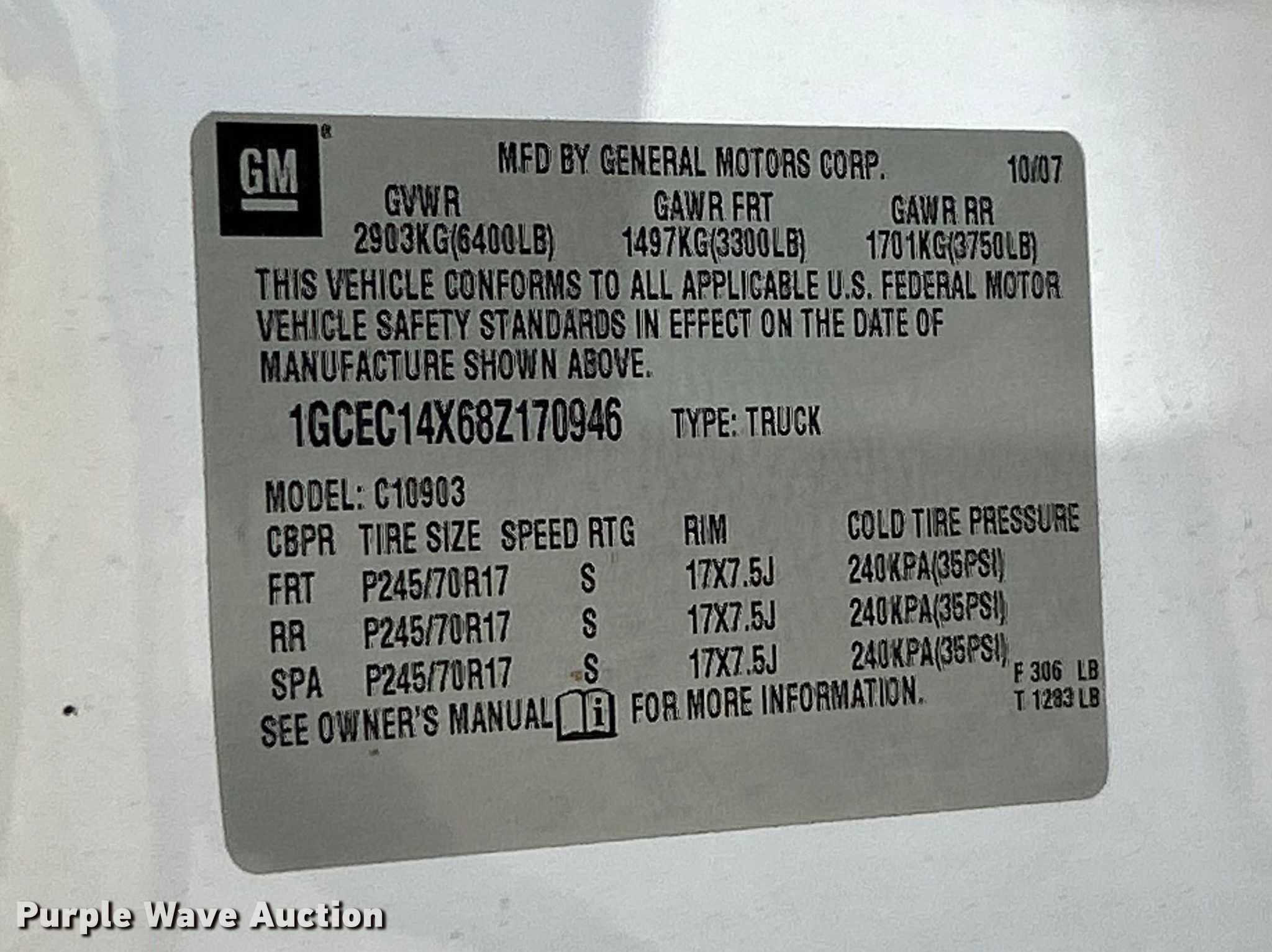 Purple Wave is selling a used 1/2 Ton Pickup or Van in Missouri. This item is a 2008 Chevrolet Silverado 1500 pickup truck with the following: Miles: 172,698 on odometer, VIN: 1GCEC14X68Z170946, Unit #: B6404