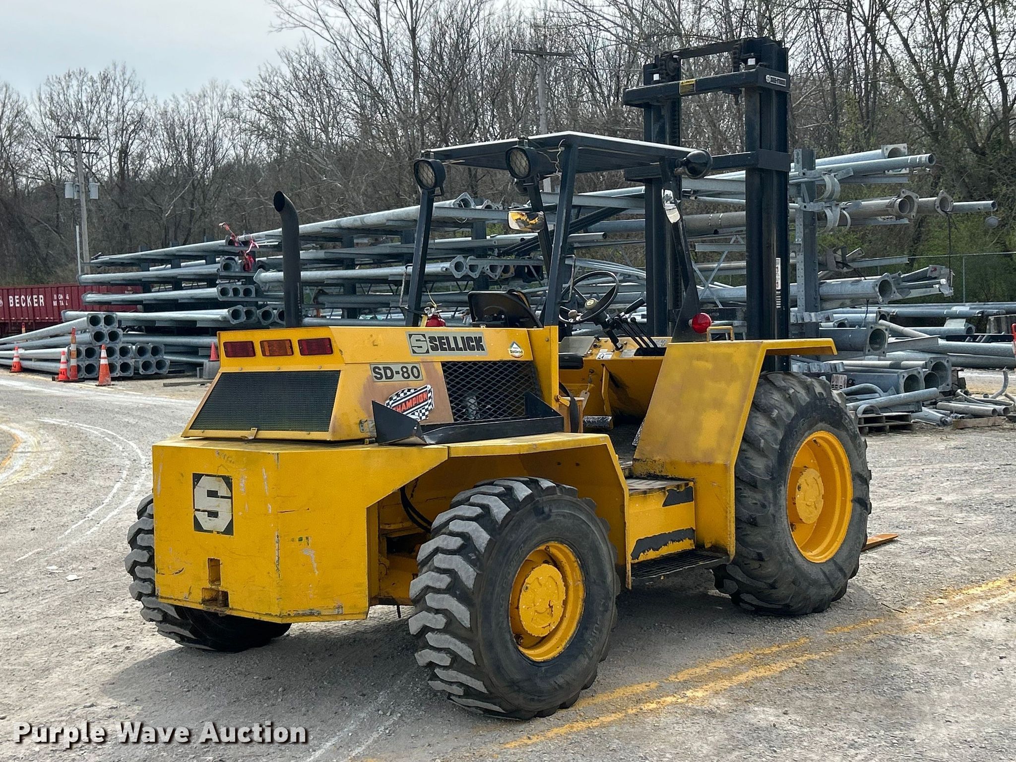 Take a look at this used Sellick SD-80 forklift being sold on April 28th, 2026 in the Tuesday April 28 Government Auction made by Sellick. Take a look at all of the item information below or take a look at similar auctions for Rough Terrain Forklifts.