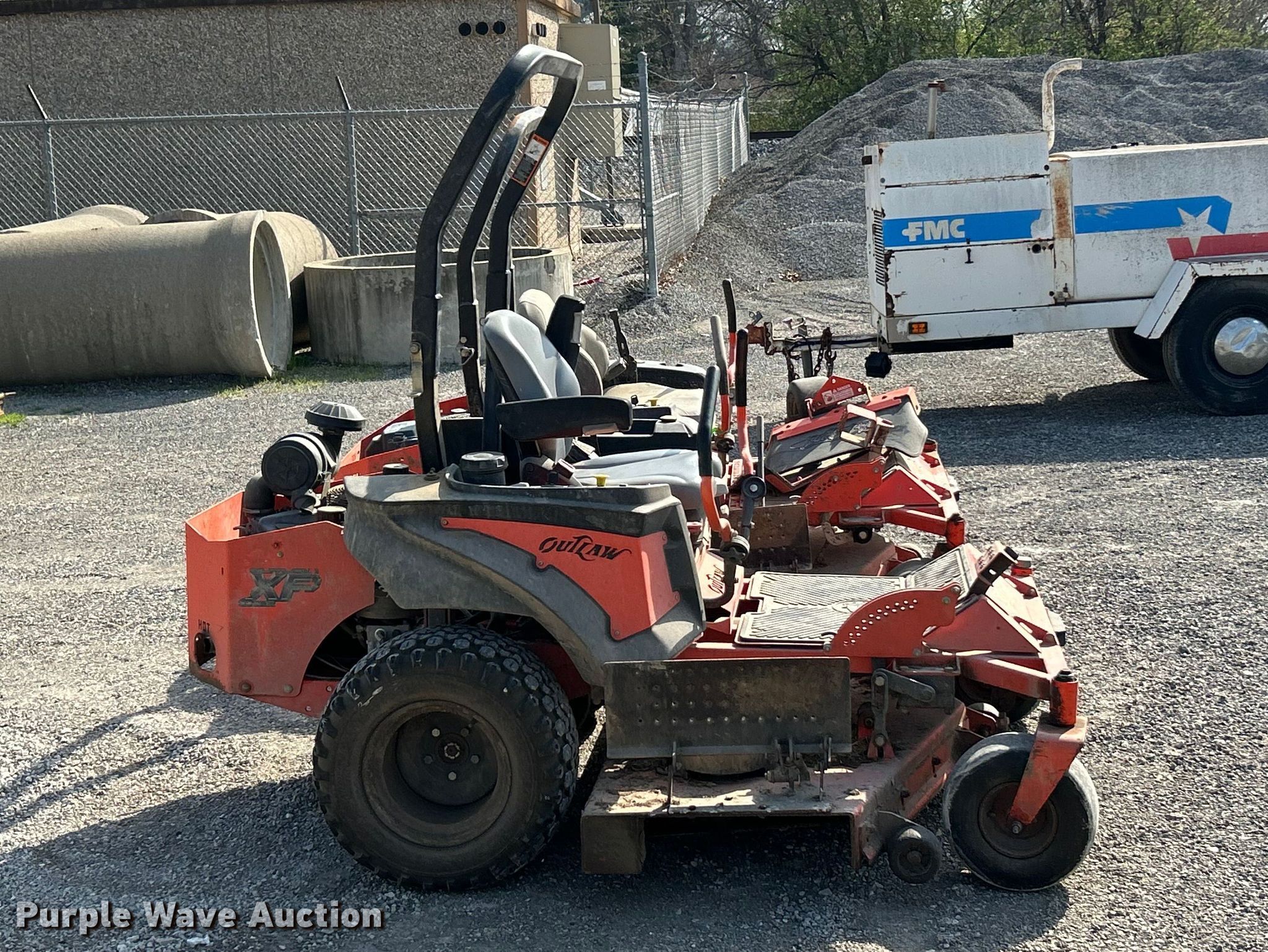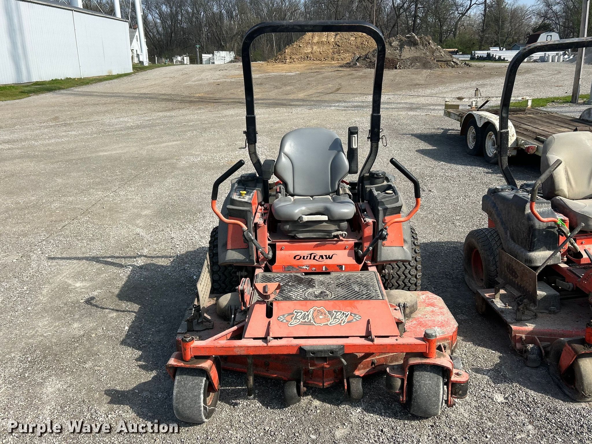 Purple Wave is selling a used Commercial Turf Mower in Illinois. This item is a (2) Bad Boy ZTR lawn mowers with the following: Bad Boy Outlaw XP, Cutting width: 61", Hours: 1327 on meter, Kawasaki engine, Cylinders: 2, Fuel type: Gas, Tires, Front: 13x6.50-6, Rear: 24x12.00-12, Steering issues, Non-operational electric deck lift, Bad Boy Outlaw, Cutting width: 61", Hours: 1072 on meter, Engine, Cylinders: 2, Fuel type: Gas, Tires, Front: 13x6.50-6, Rear: 24x12.00-10, Non-operational unit