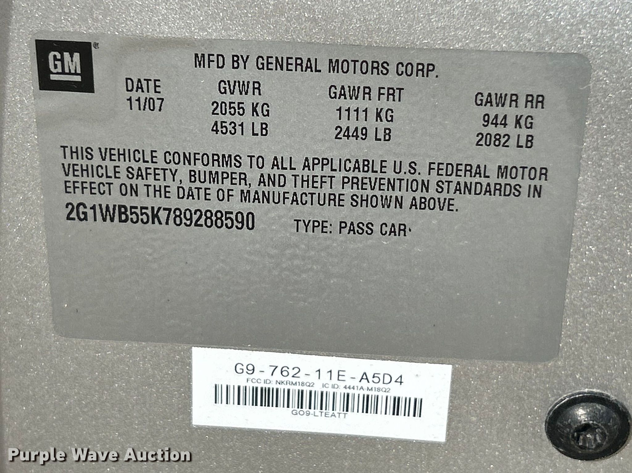 Purple Wave is selling a used Passenger Vehicle in Missouri. This item is a 2008 Chevrolet Impala with the following: Miles: 134,348 on odometer, VIN: 2G1WB55K789288590, Unit #: B6543