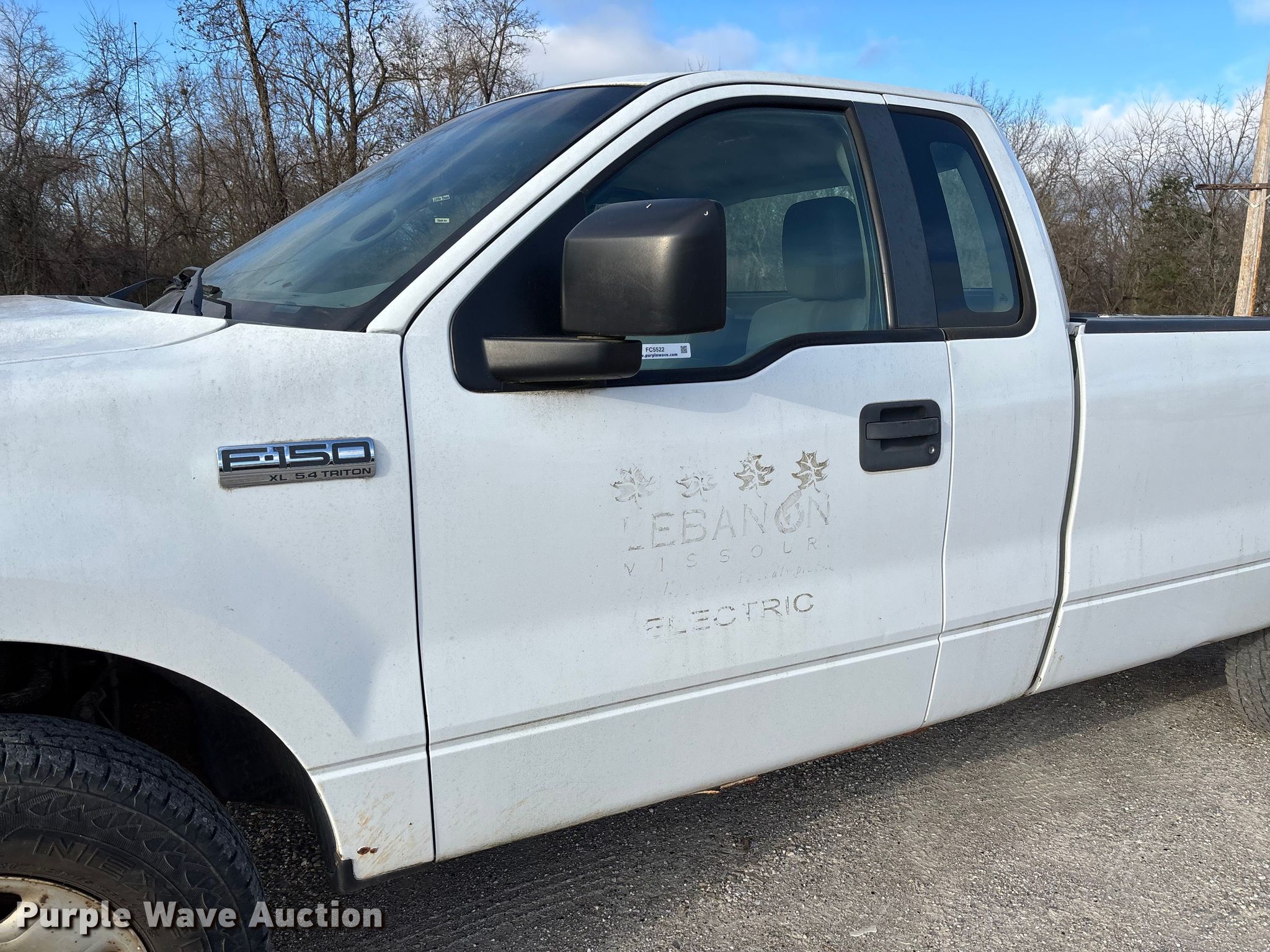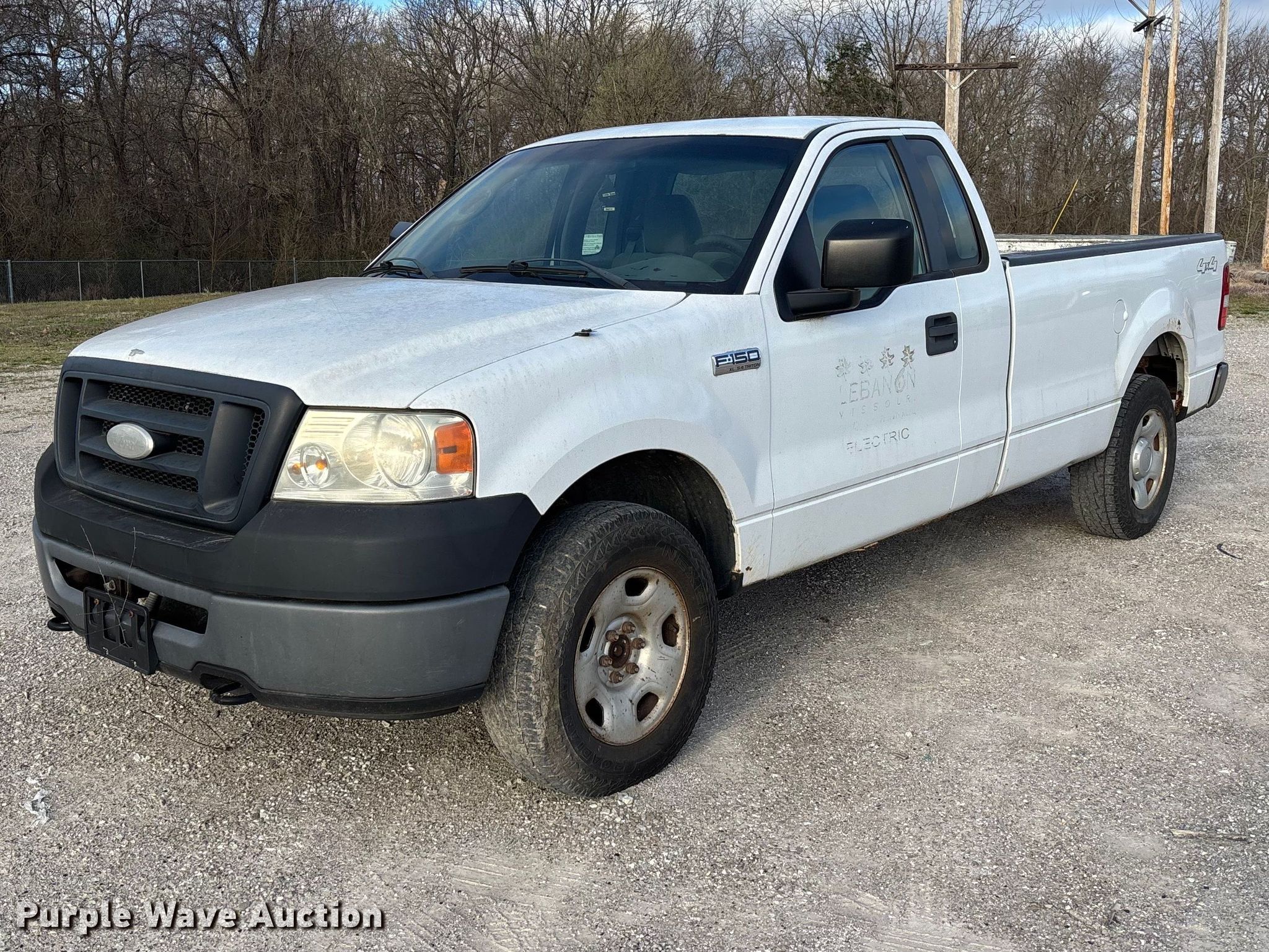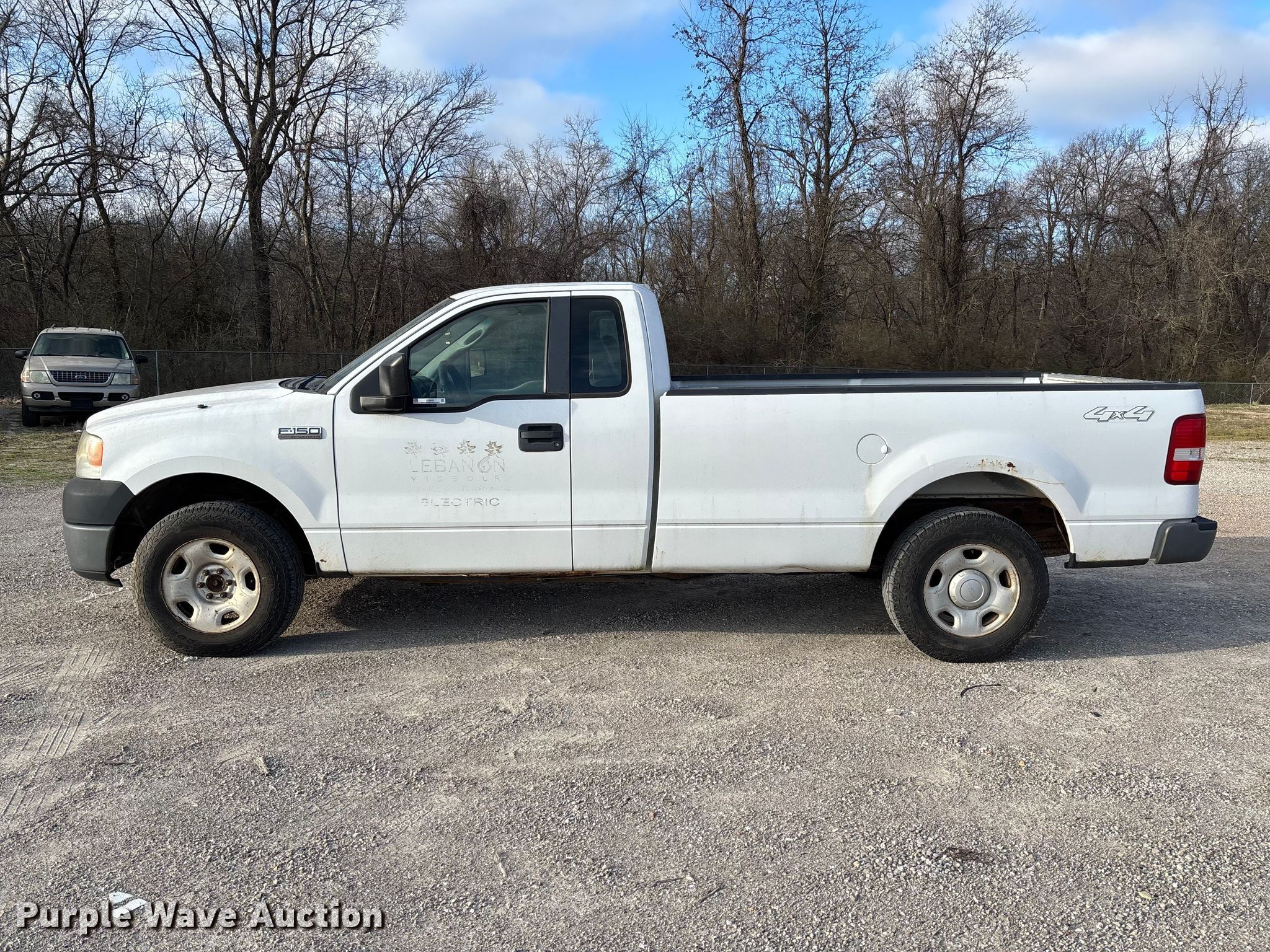 2007 Ford F150 pickup truck. Miles: 111,934 on odometer, VIN: 1FTRF14V37NA76715. Engine Displacement: 5.4L, Cylinders: 8, Fuel type: Gas. Transmission Automatic, Four wheel drive. Interior AC, Heat, Cruise control. Tires Size: 245/75R17. Notes Dash warning indicator: Transmission fault, Jump start required during on-site data collection. Missouri title. Title distribution may be delayed up to 14 days from verification of funds. Public Works City of Lebanon. Lebanon, MO 65536