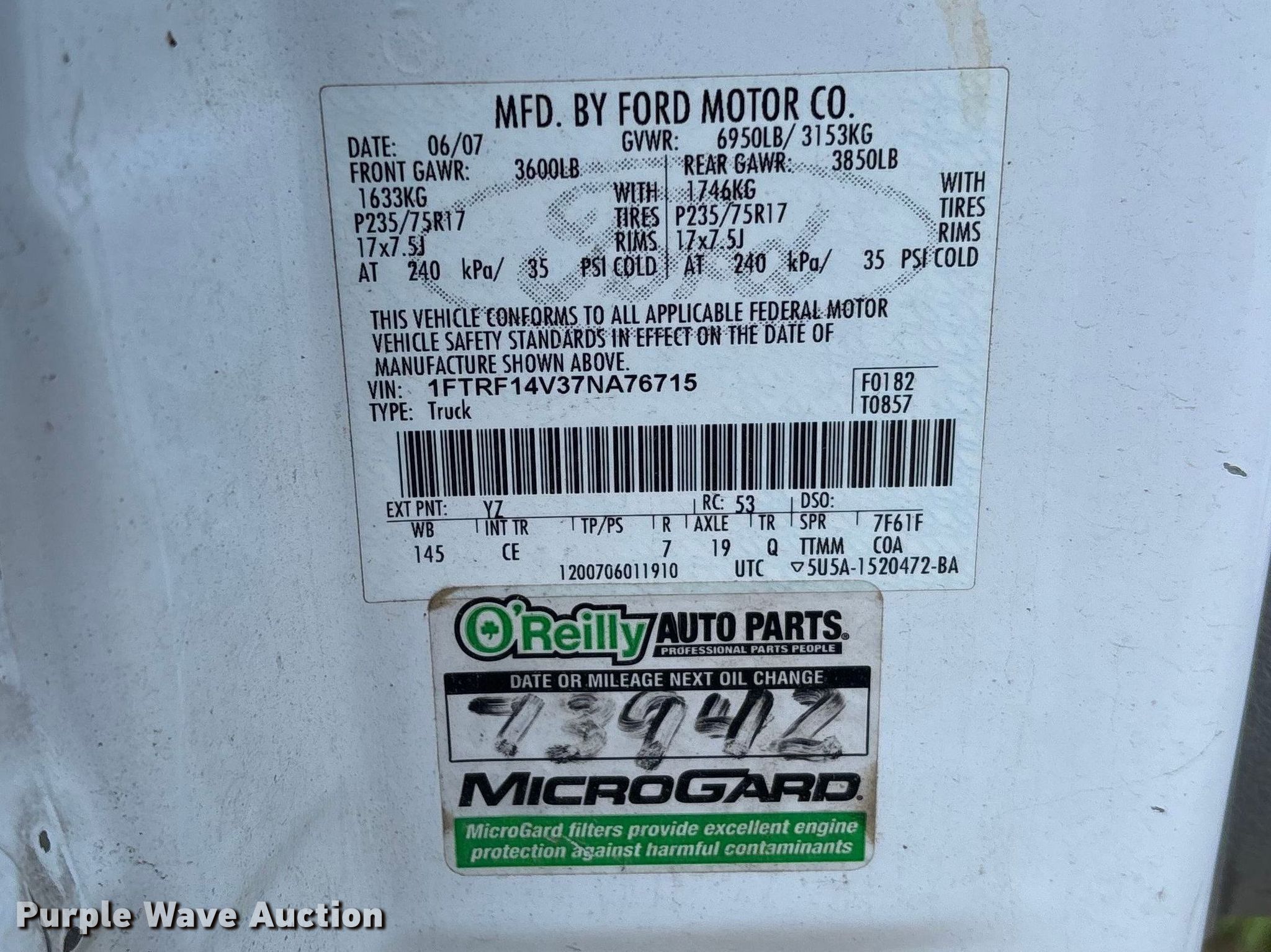- VIN: 1FTRF14V37NA76715