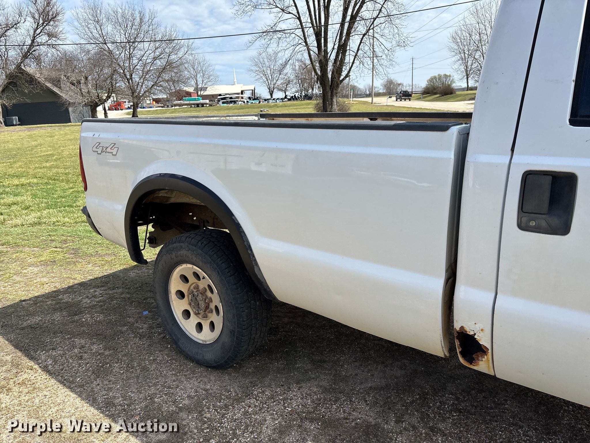 2005 Ford F250 Super Duty pickup truck. Miles: 213,904 on odometer, Hours: 6,154 on meter, VIN: 1FTNF21565EA71160. Engine Displacement: 5.4L, Cylinders: 8, Fuel type: Gas. Transmission Automatic, Four wheel drive. Interior AC, Heat, Power windows, Power locks, Cruise control. Features Bed Length: 8'. Tires Size: 265/70R17. Notes Non-operational tailgate, Dash warning indicator: Check engine, Windshield chipped or cracked, Rust damage. Missouri title. Title distribution may be delayed up to 14 days from verification of funds. Morgan County, MO. Versailles, MO 65084