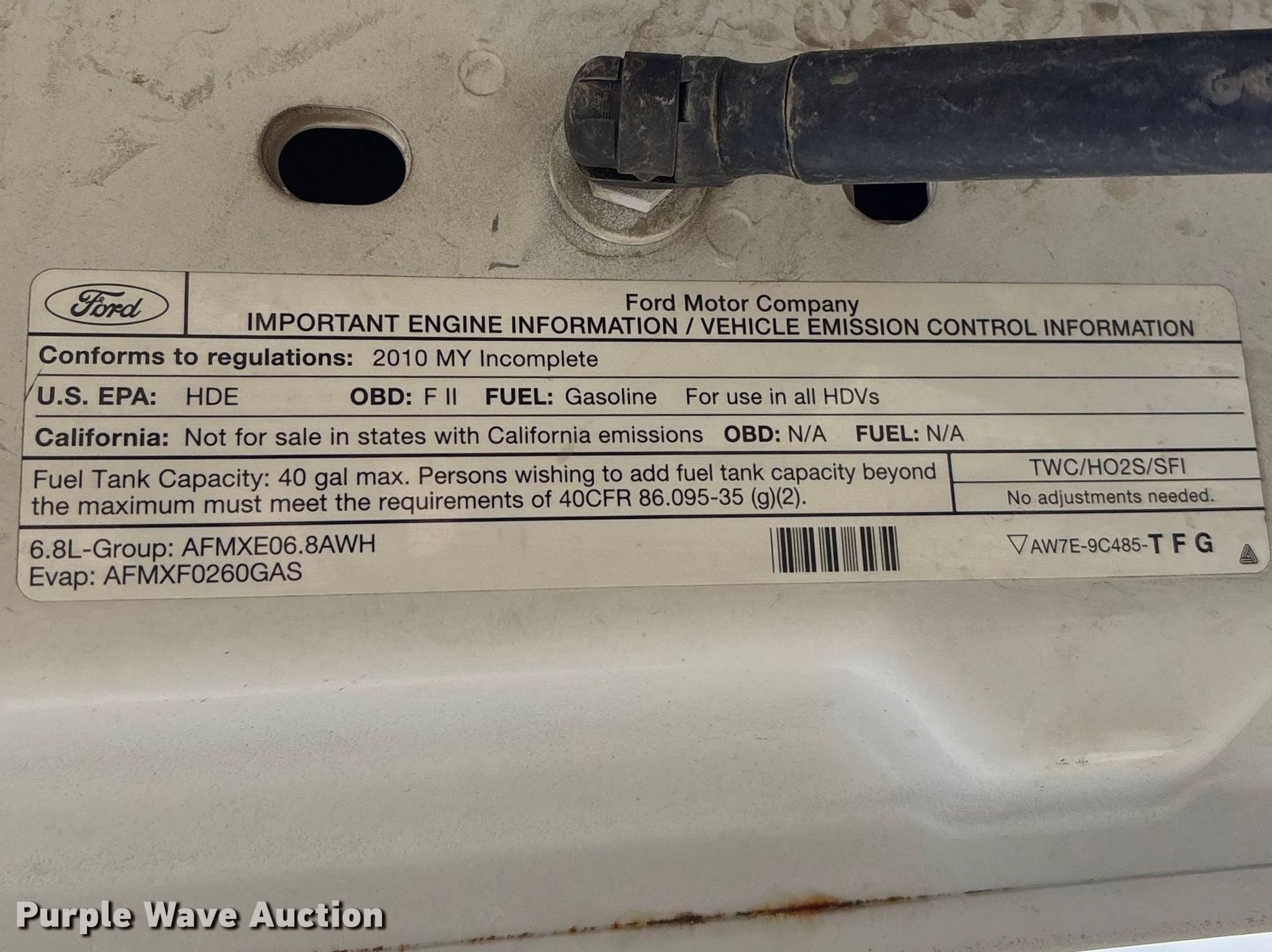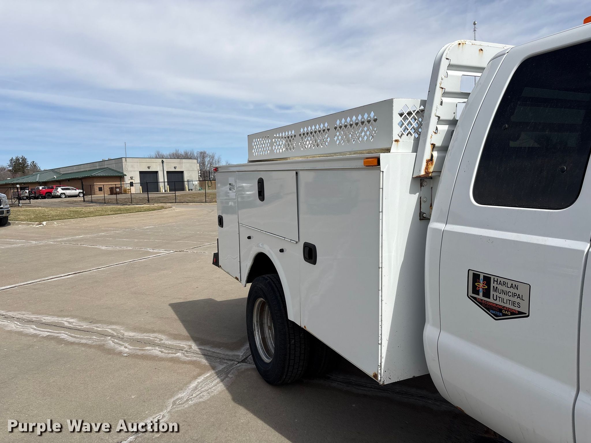 2010 Ford F350 Super Duty Ext. Cab utility bed pickup truck. Miles: 98,021 on odometer, VIN: 1FDWX3HY6AEB30947. Engine Displacement: 6.8L, Cylinders: 10, Fuel type: Gas. Transmission Automatic, Four wheel drive. Interior AC, Heat, Heated mirrors, Power windows, Power locks, Cruise control, Auxiliary controls, Brake controller. Features Bed Utility bed, Omaha Service Bodies, Serial: WW03840, Length: 9', Width: 88", Height: 40". Tires Size: 245/75R17. Iowa title. Seller is a government entity who will be assigning and distributing the title. Please contact the seller for distribution questions. Title distribution may be delayed up to 14 days from verification of funds. Harlan Municipal Utilities. Harlan, IA 51537