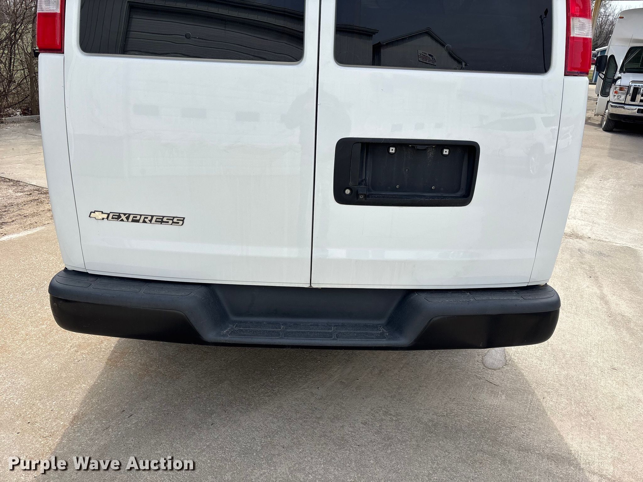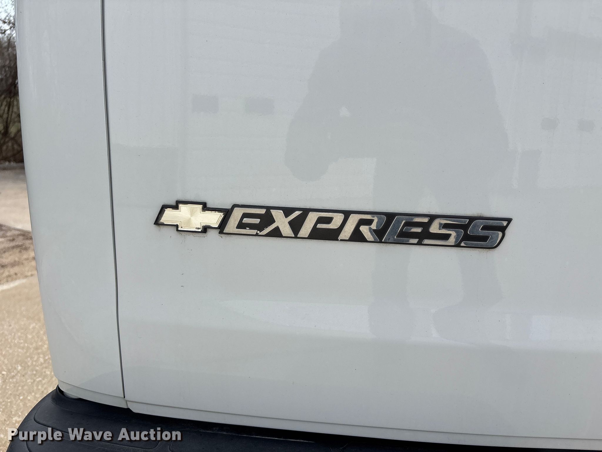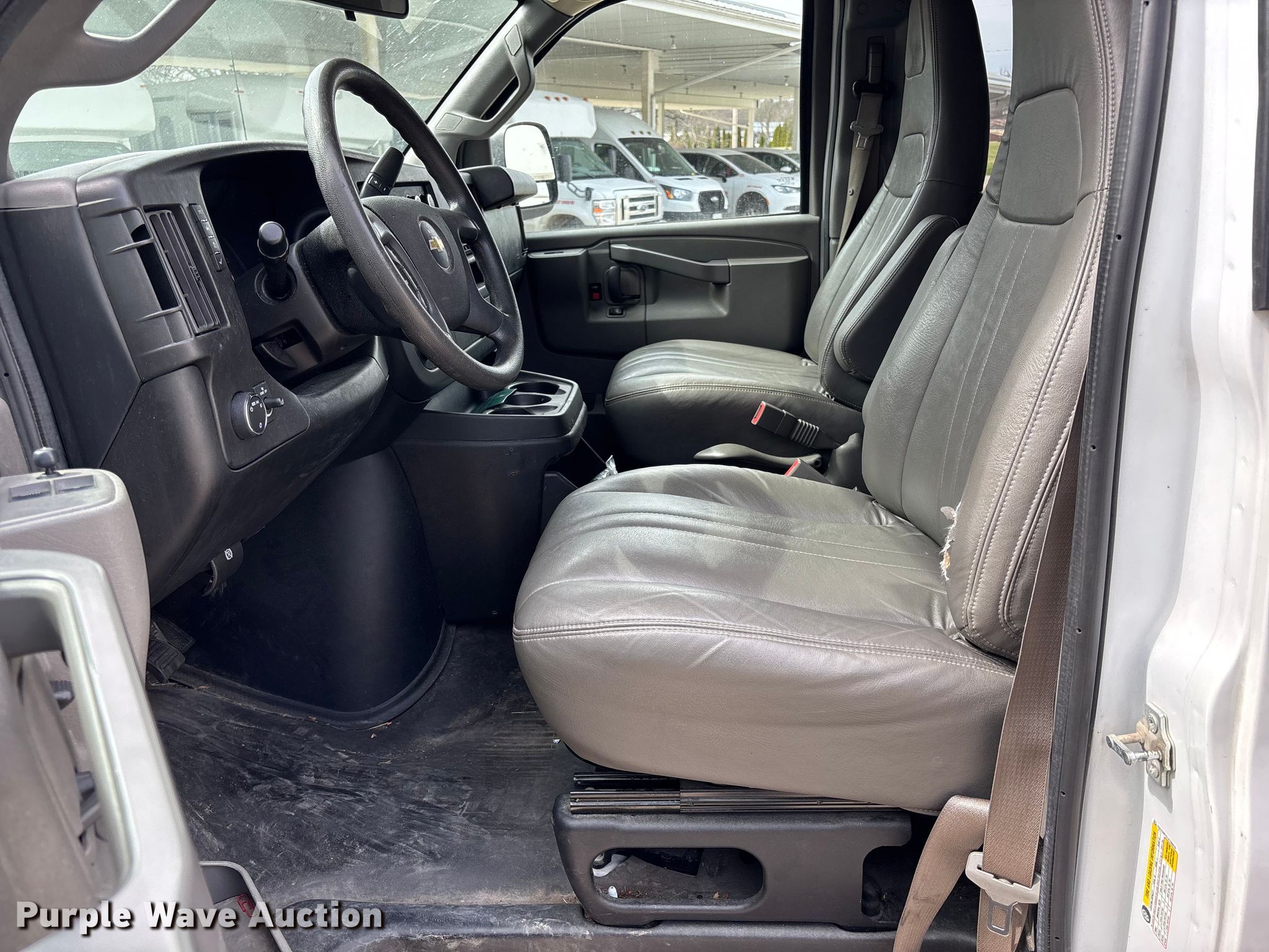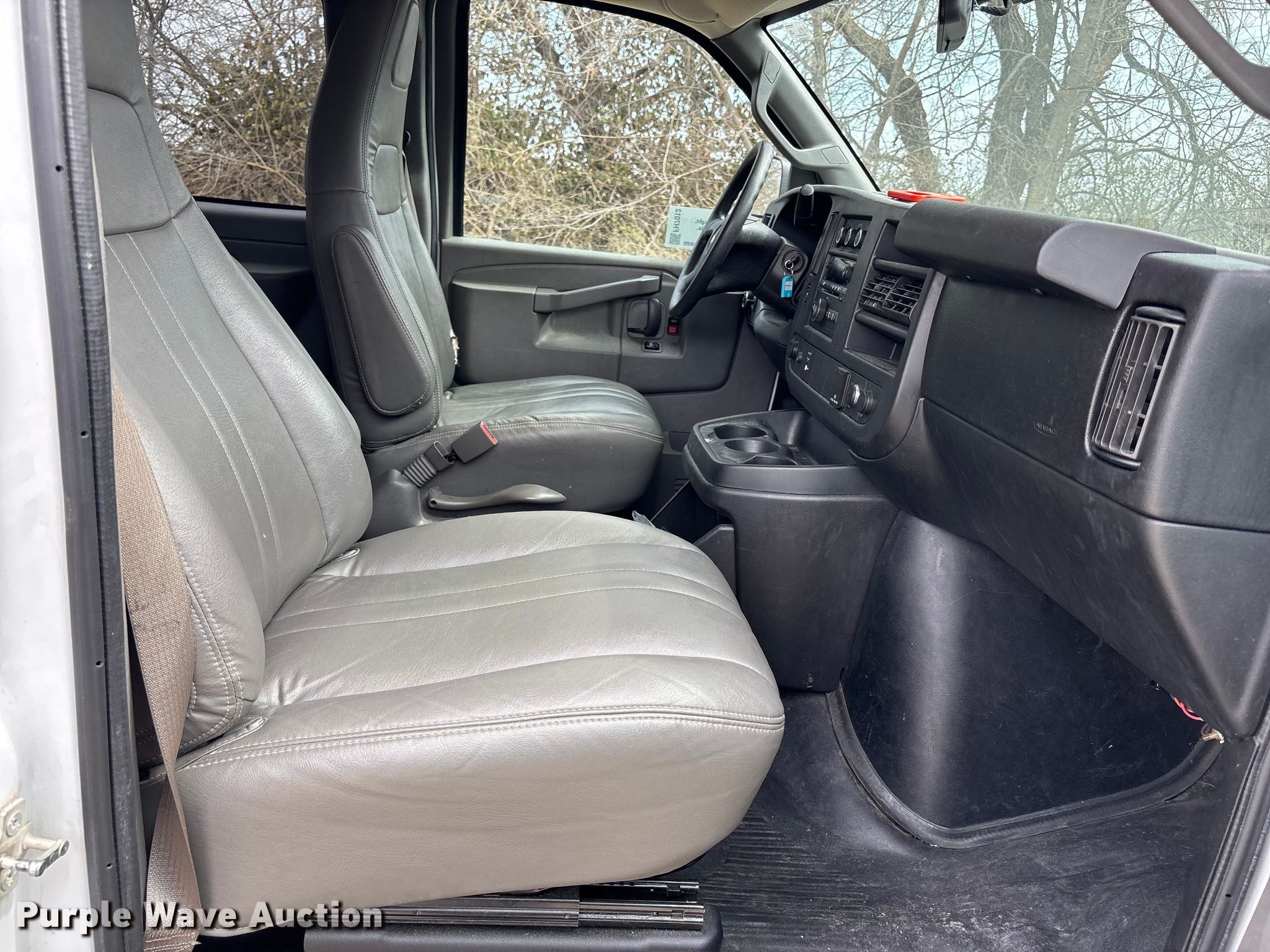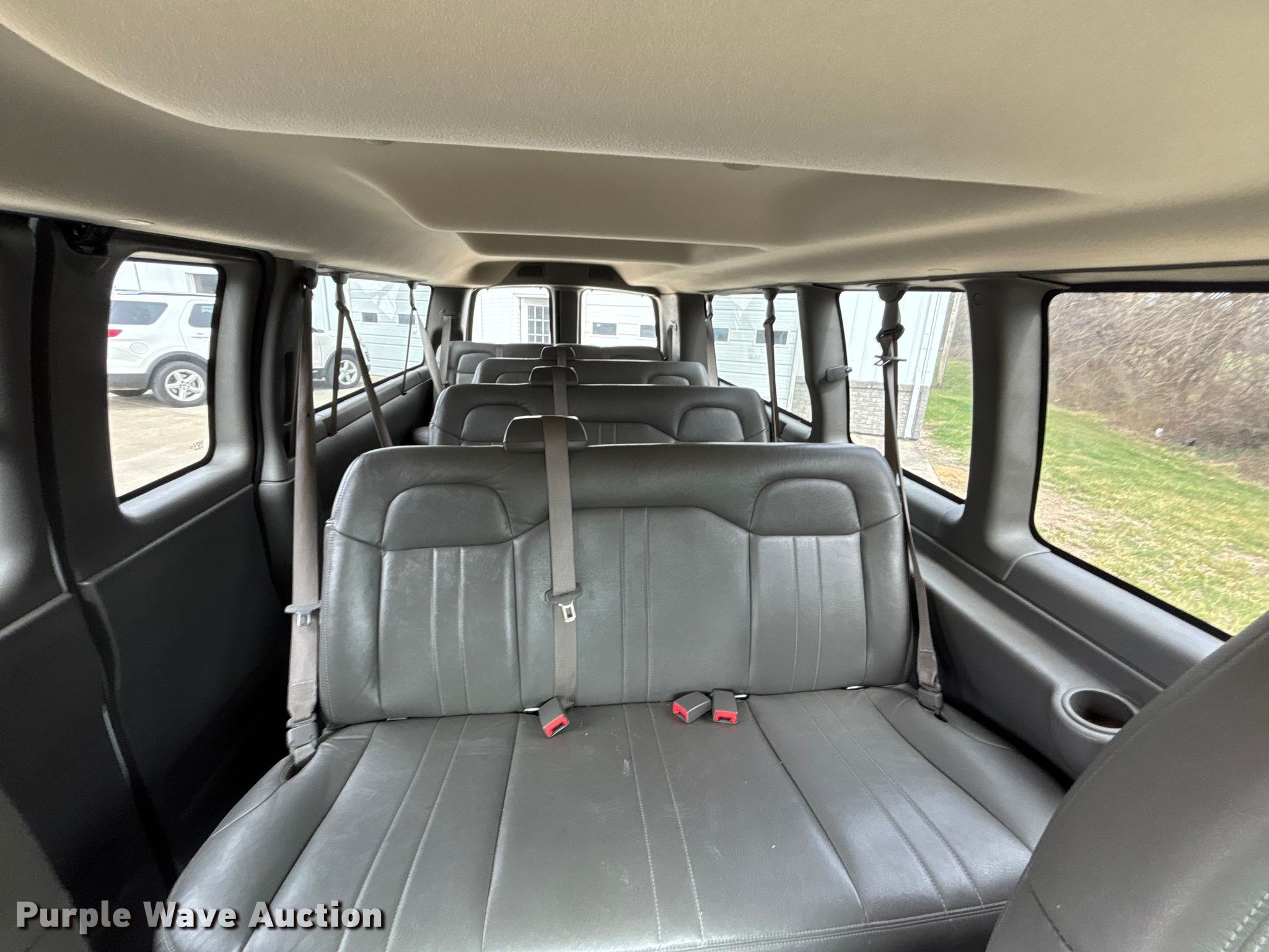 2018 Chevrolet Express 3500 van. Miles: 126,558 on odometer, VIN: 1GAZGNFG7J1166976. Engine Displacement: 6.0L, Cylinders: 8, Fuel type: Gas. Transmission Automatic. Interior AC, Heat, Heated mirrors, Power windows, Power locks, Cruise control, Backup camera. Tires Size: 245/75R16. Notes Dash warning indicator: TPMS. Missouri title. Title distribution may be delayed up to 14 days from verification of funds. Ray County Transportation, Inc.. Richmond, MO 64085