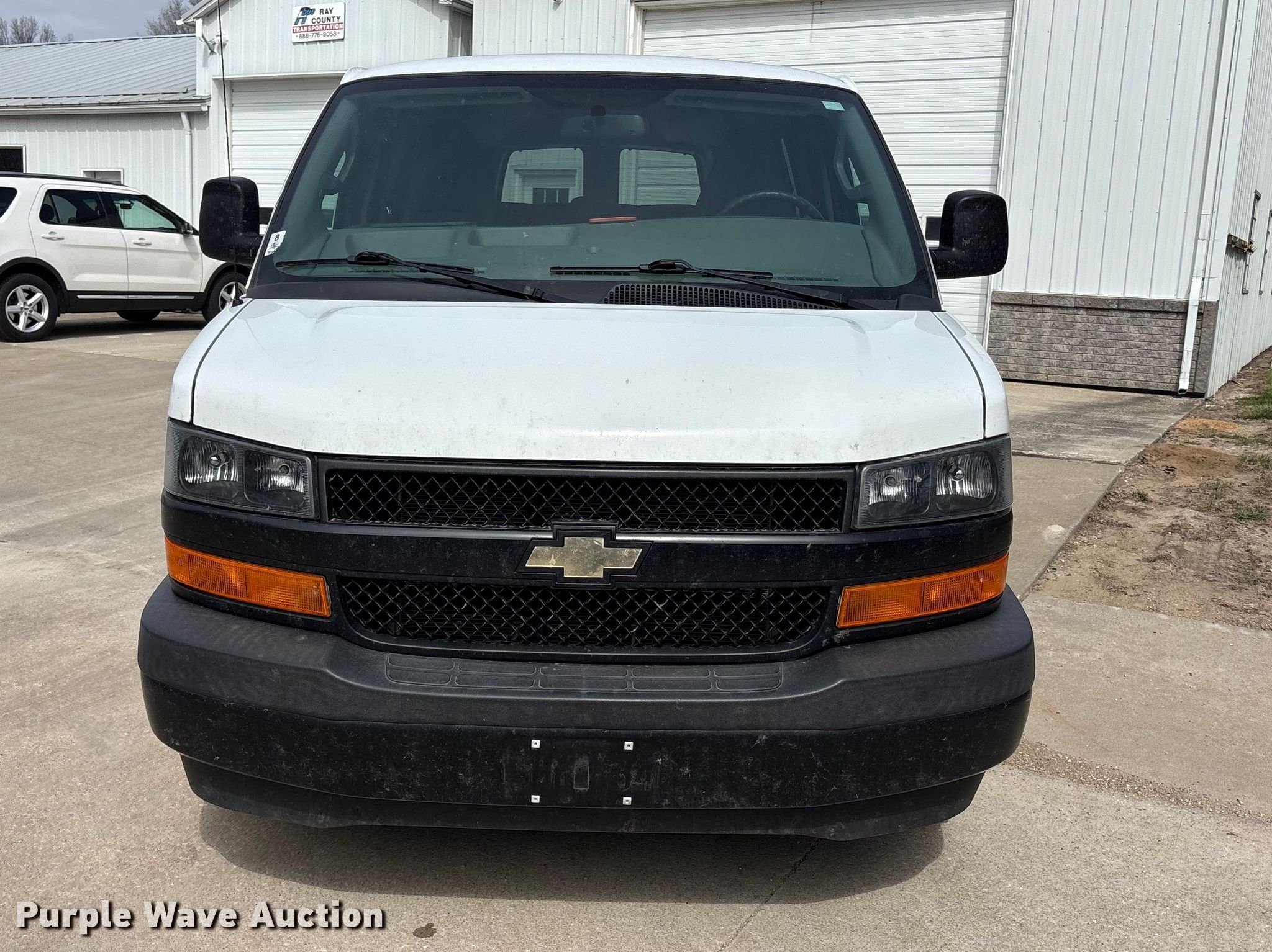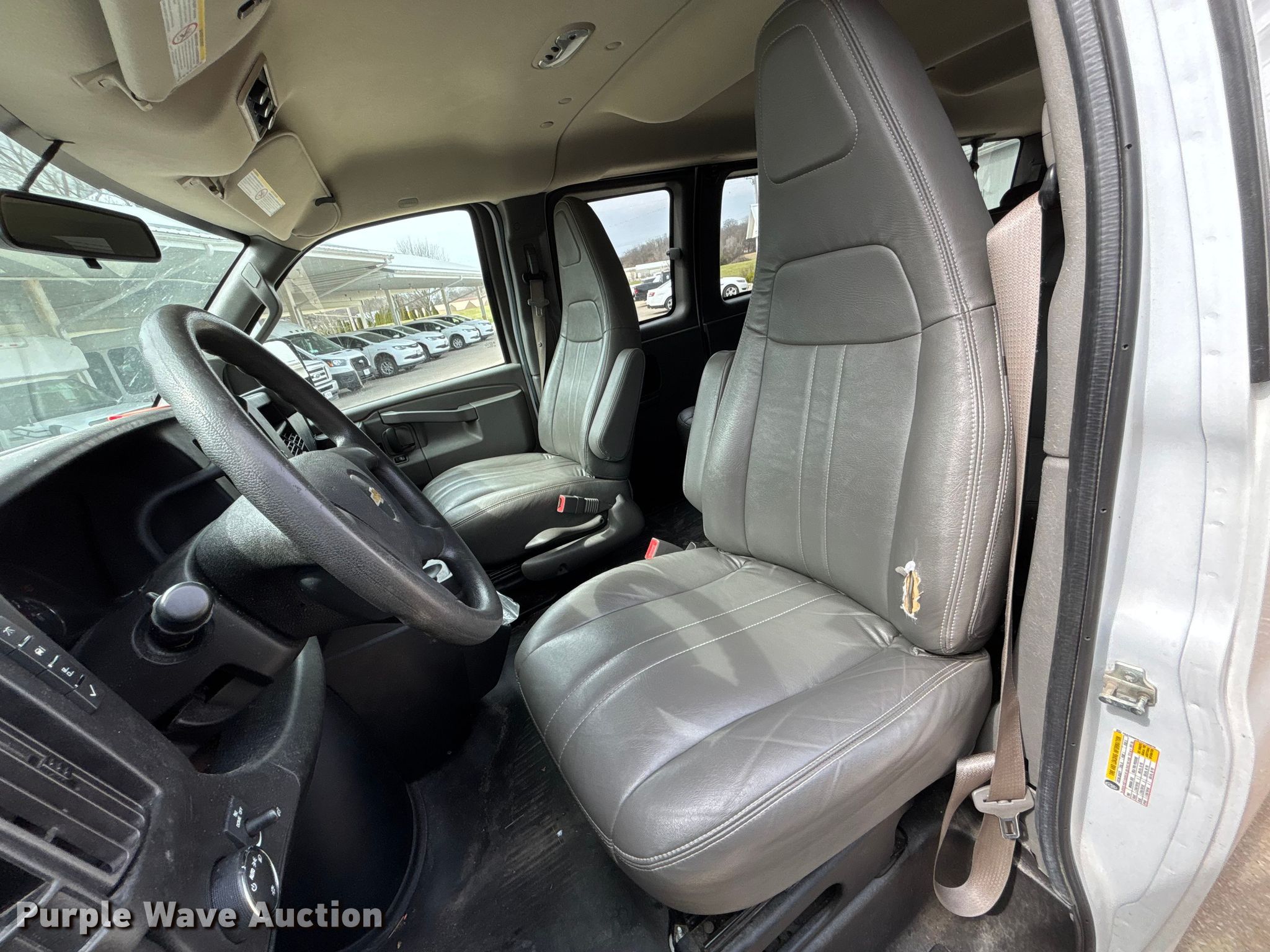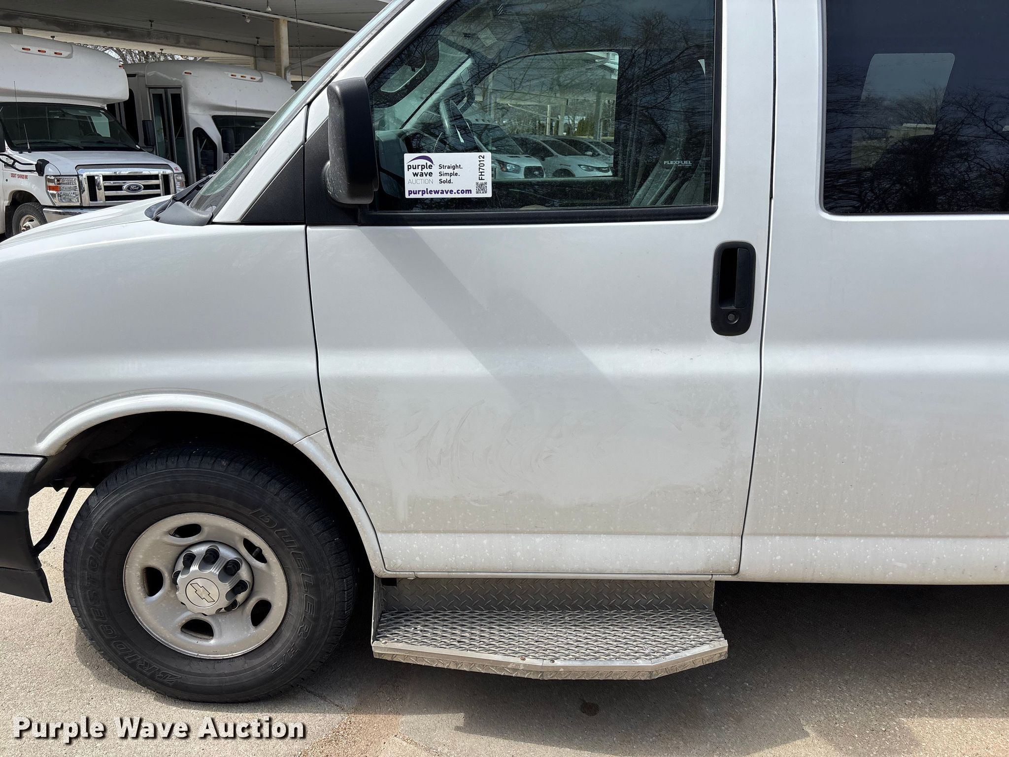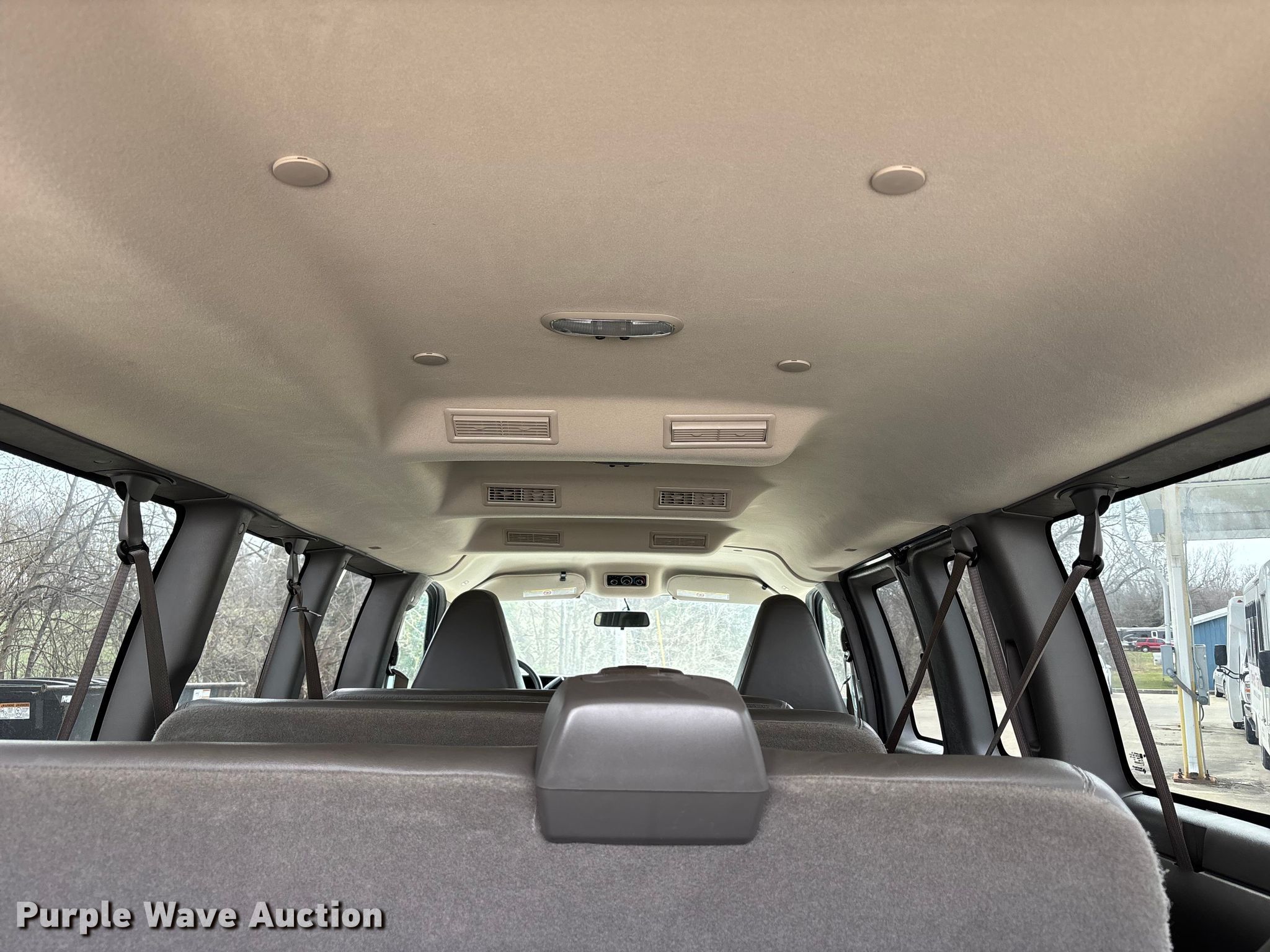 2018 Chevrolet Express 3500 van. Miles: 126,558 on odometer, VIN: 1GAZGNFG7J1166976. Engine Displacement: 6.0L, Cylinders: 8, Fuel type: Gas. Transmission Automatic. Interior AC, Heat, Heated mirrors, Power windows, Power locks, Cruise control, Backup camera. Tires Size: 245/75R16. Notes Dash warning indicator: TPMS. Missouri title. Title distribution may be delayed up to 14 days from verification of funds. Ray County Transportation, Inc.. Richmond, MO 64085