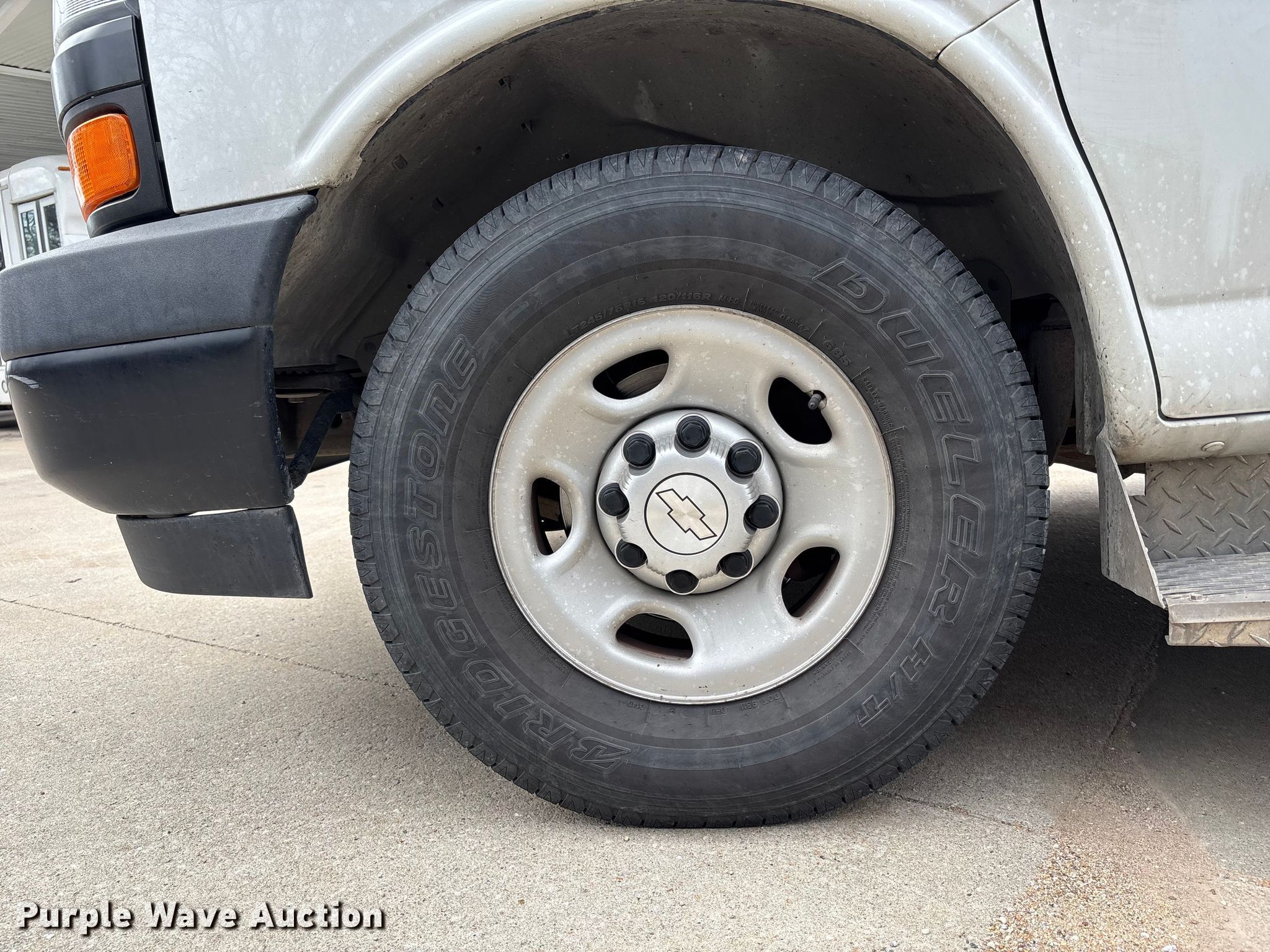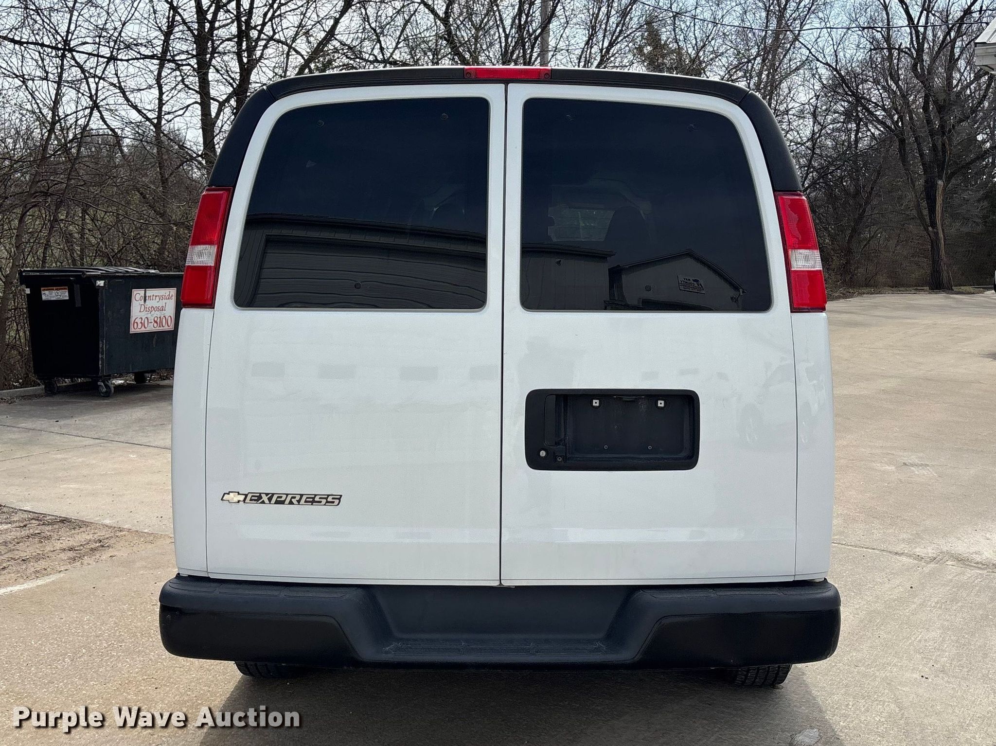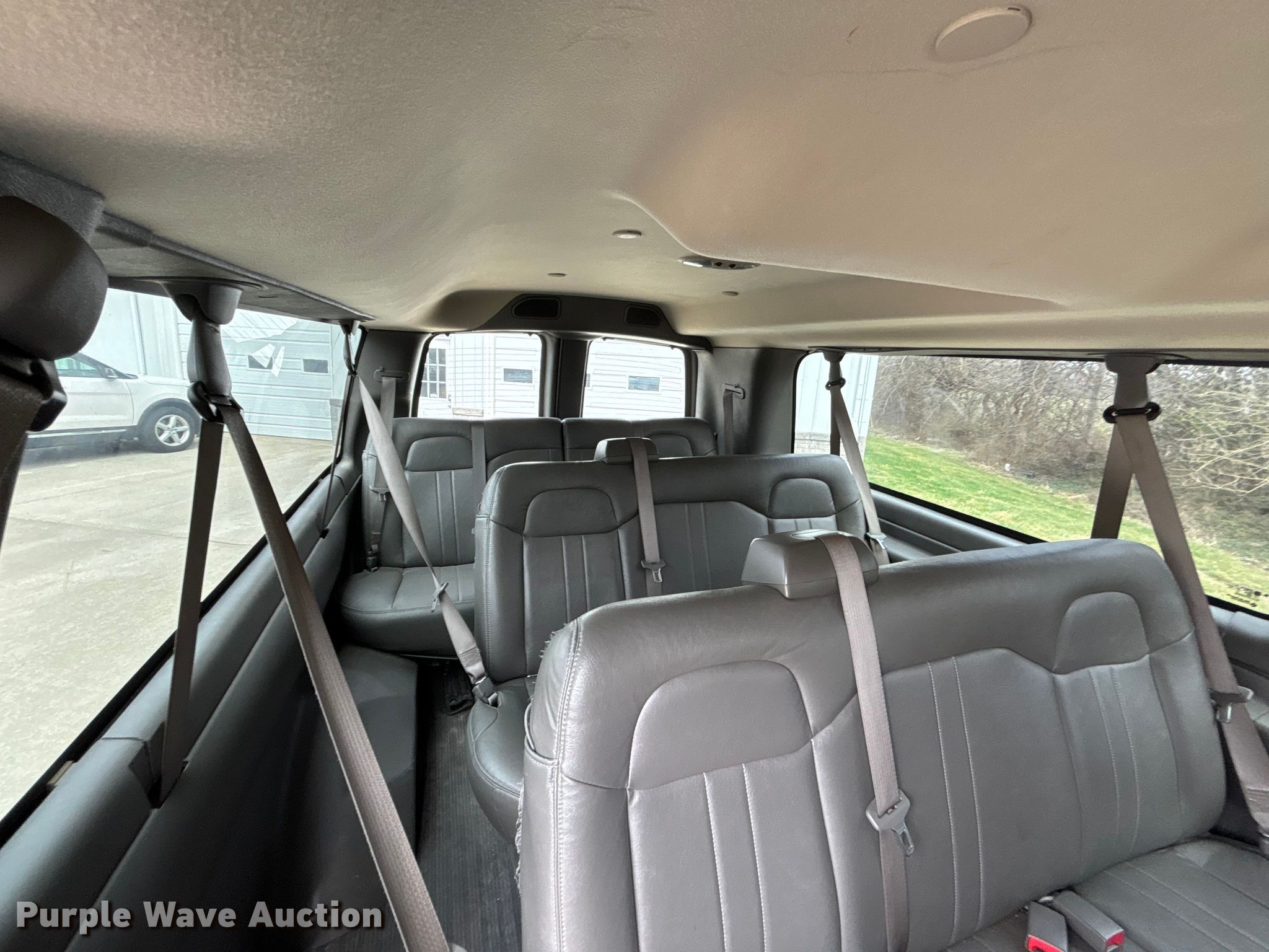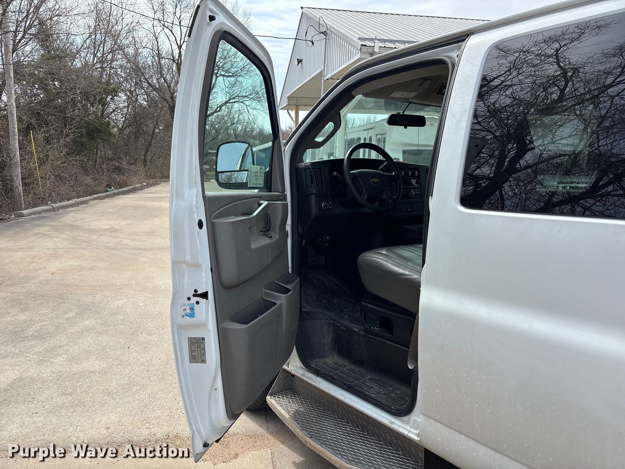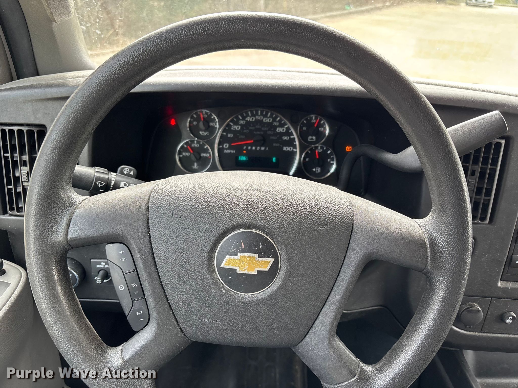 2018 Chevrolet Express 3500 van. Miles: 126,558 on odometer, VIN: 1GAZGNFG7J1166976. Engine Displacement: 6.0L, Cylinders: 8, Fuel type: Gas. Transmission Automatic. Interior AC, Heat, Heated mirrors, Power windows, Power locks, Cruise control, Backup camera. Tires Size: 245/75R16. Notes Dash warning indicator: TPMS. Missouri title. Title distribution may be delayed up to 14 days from verification of funds. Ray County Transportation, Inc.. Richmond, MO 64085