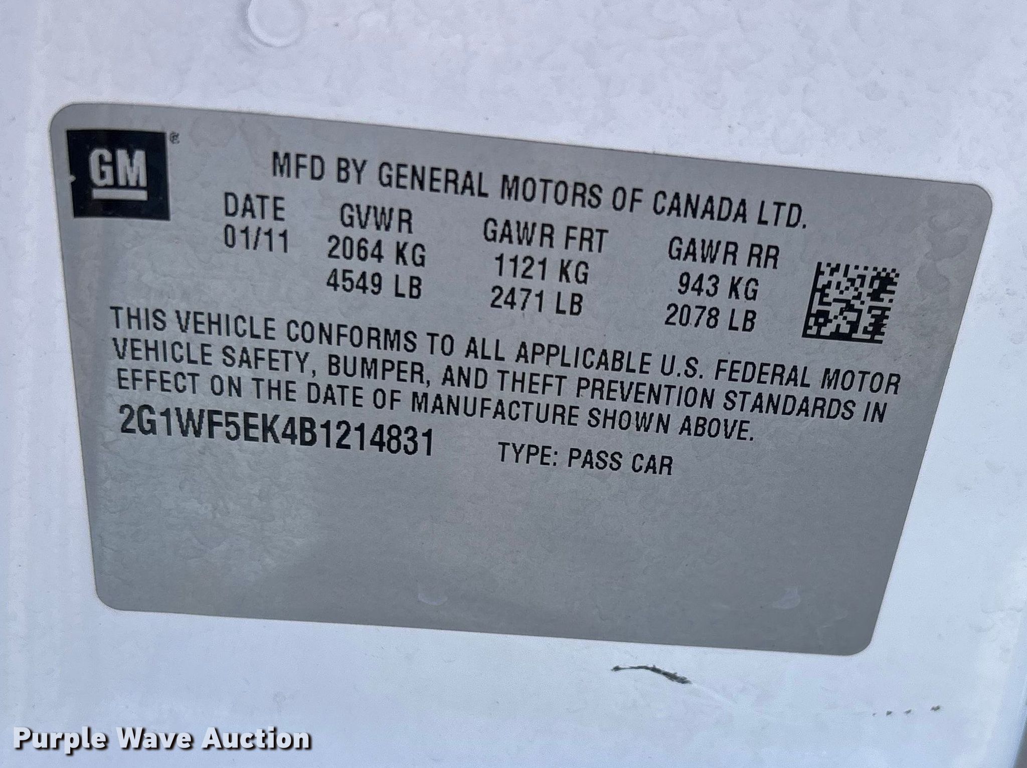 - VIN: 2G1WF5EK4B1214831
