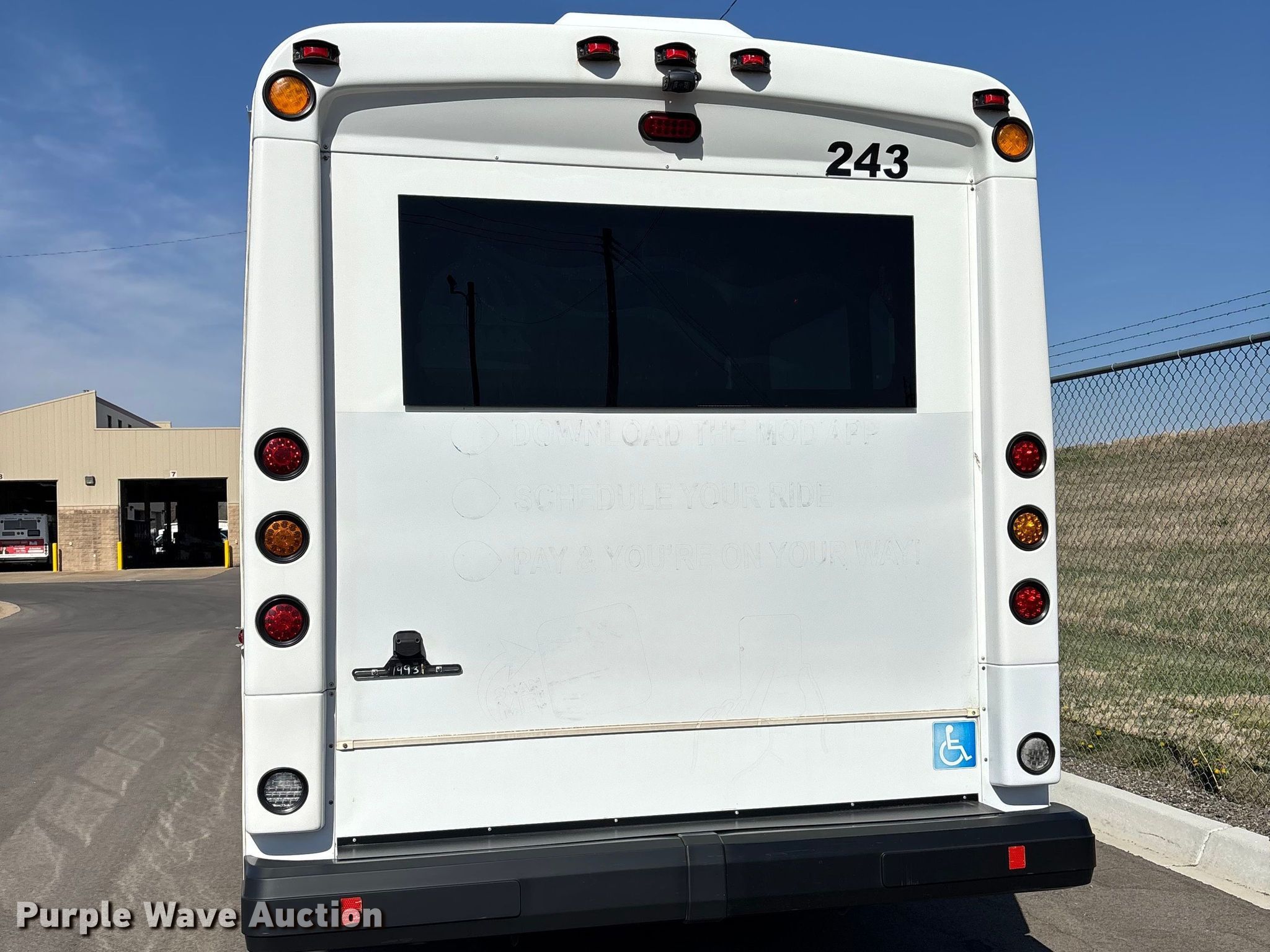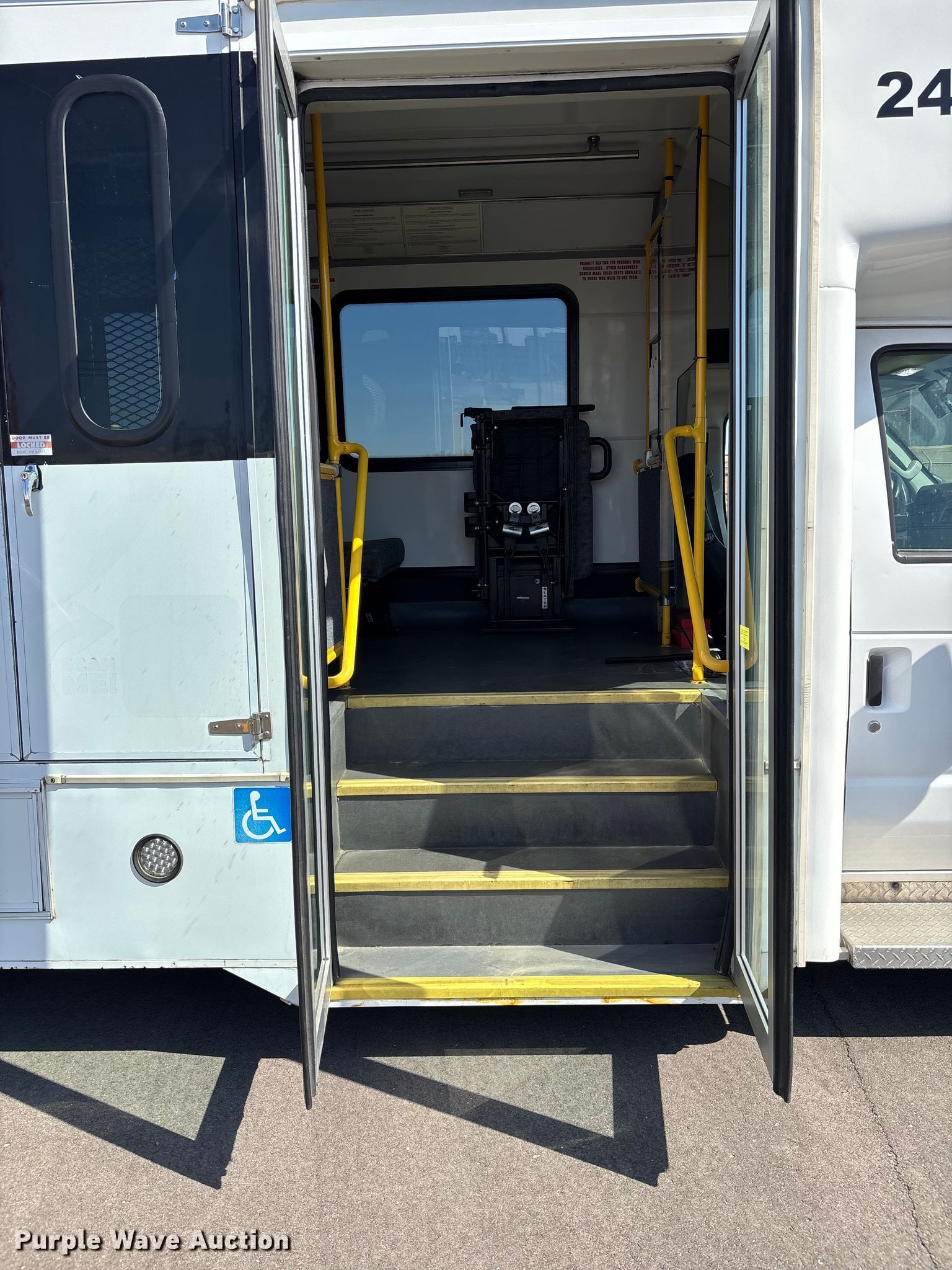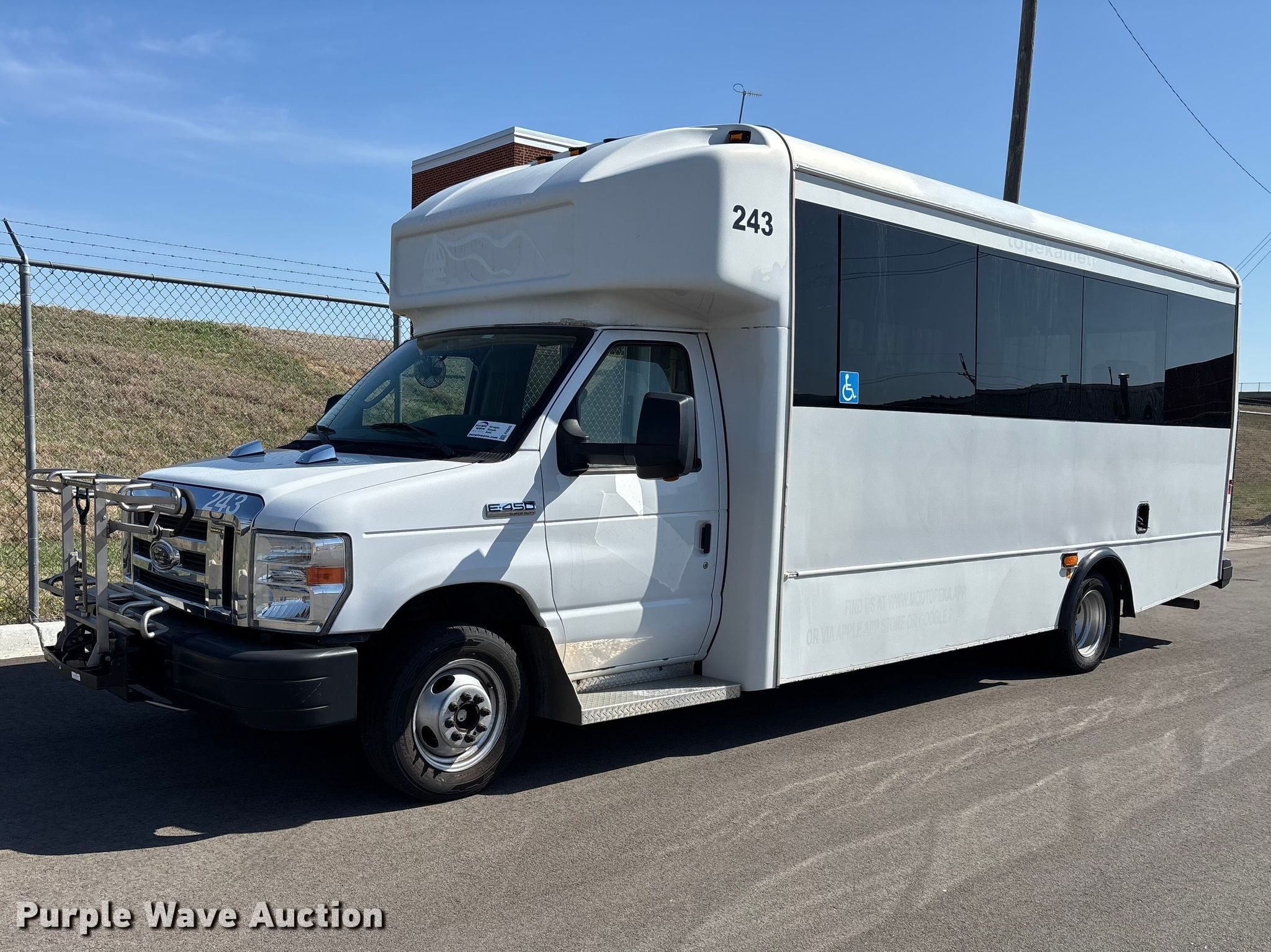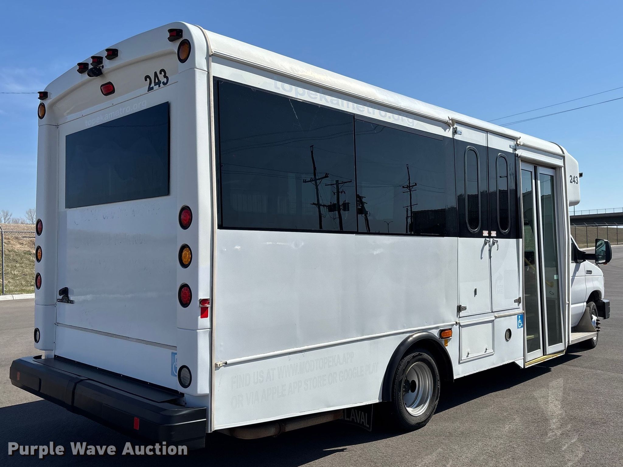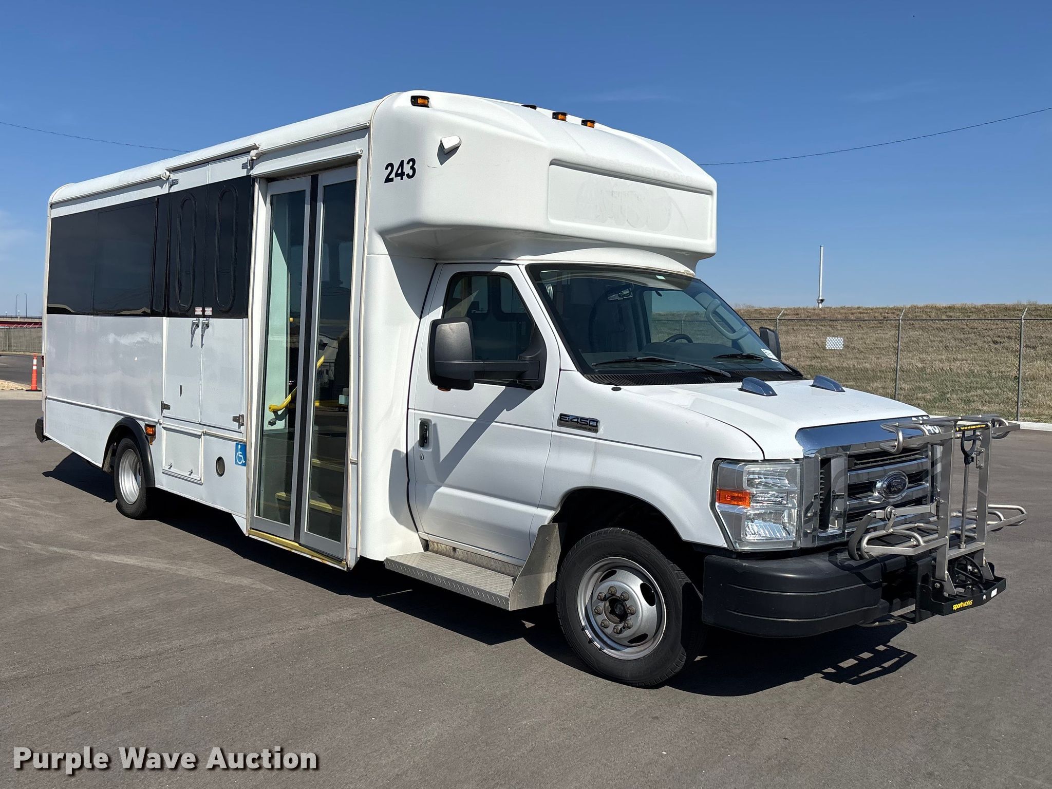 Purple Wave is selling a used Bus in Kansas. This item is a 2013 Glaval E450 Super Duty transit bus with the following: Miles: 186,129 on odometer, Hours: 15,396 on meter, VIN: 1FDXE4FS1DDA30957, Unit #: 243