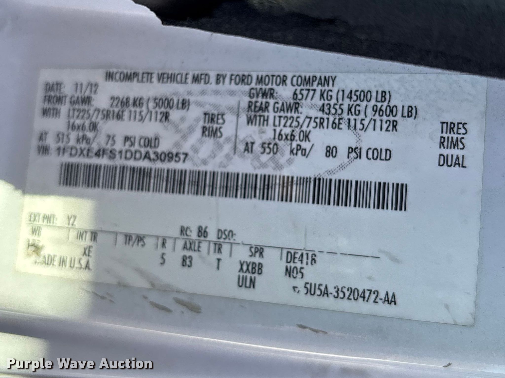 - VIN: 1FDXE4FS1DDA30957