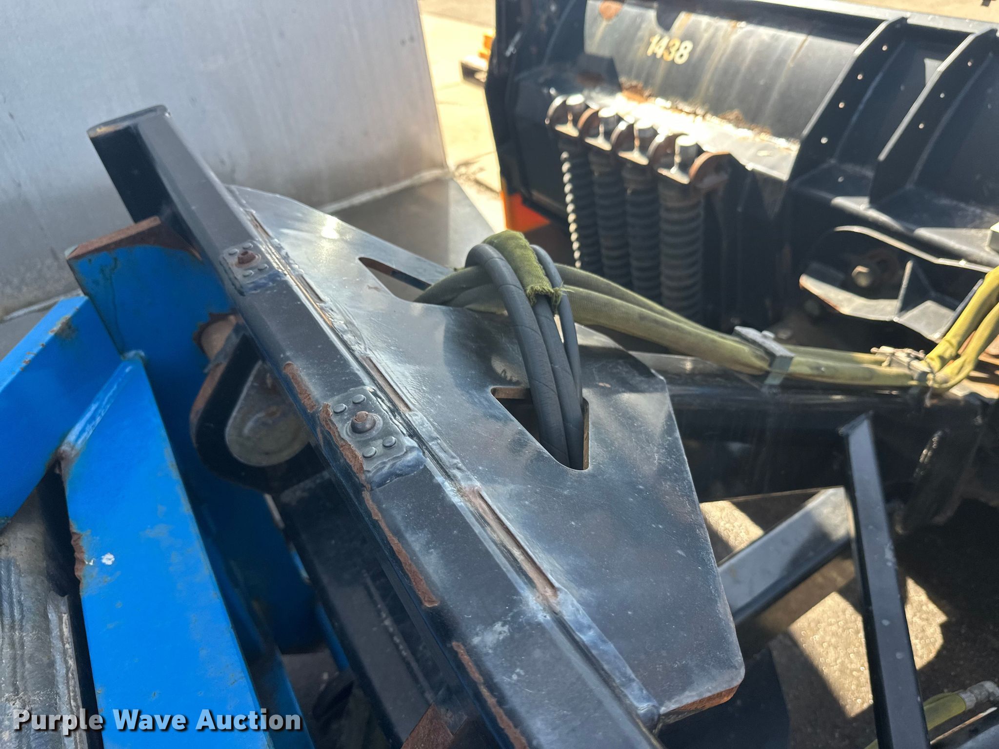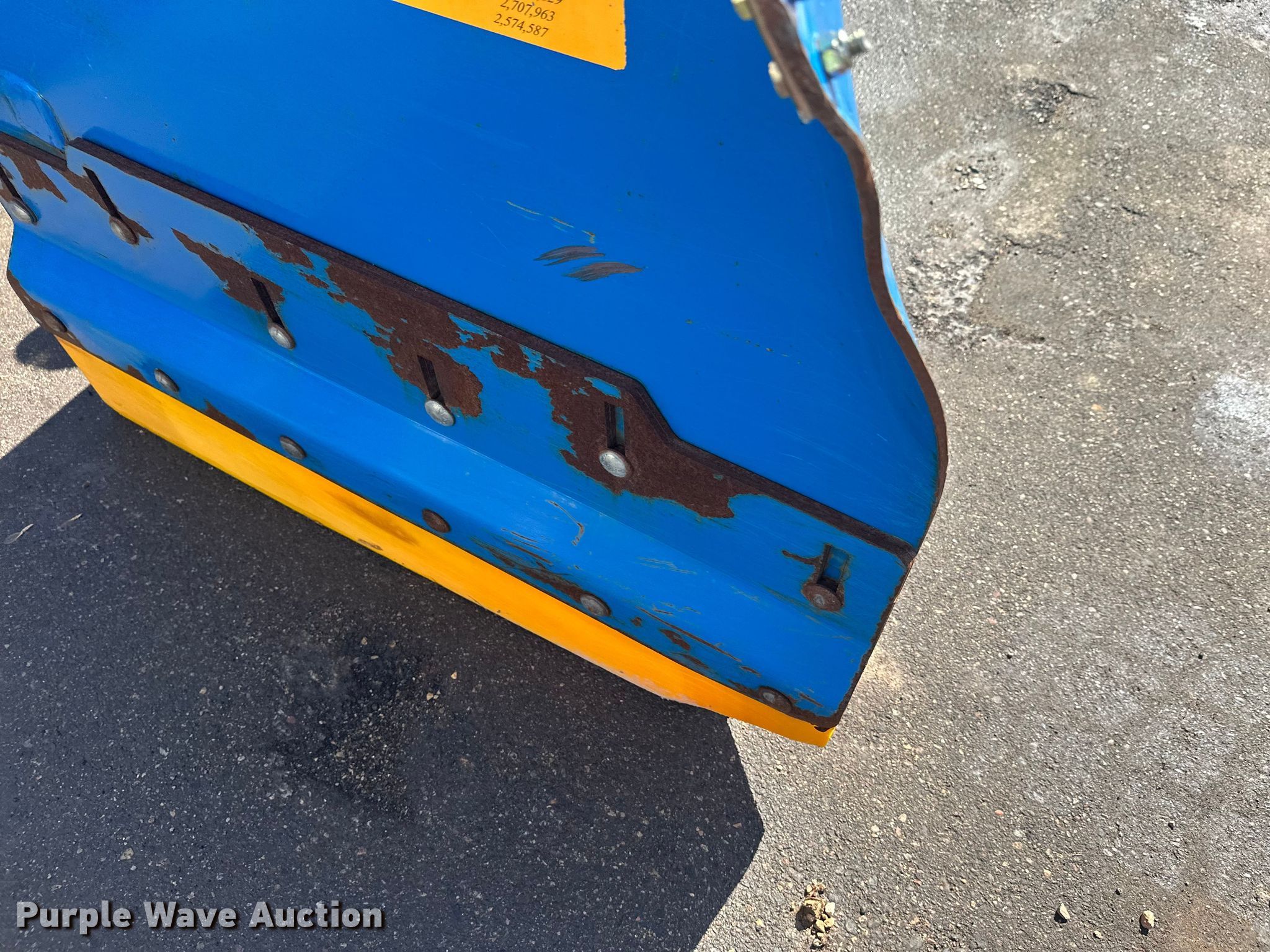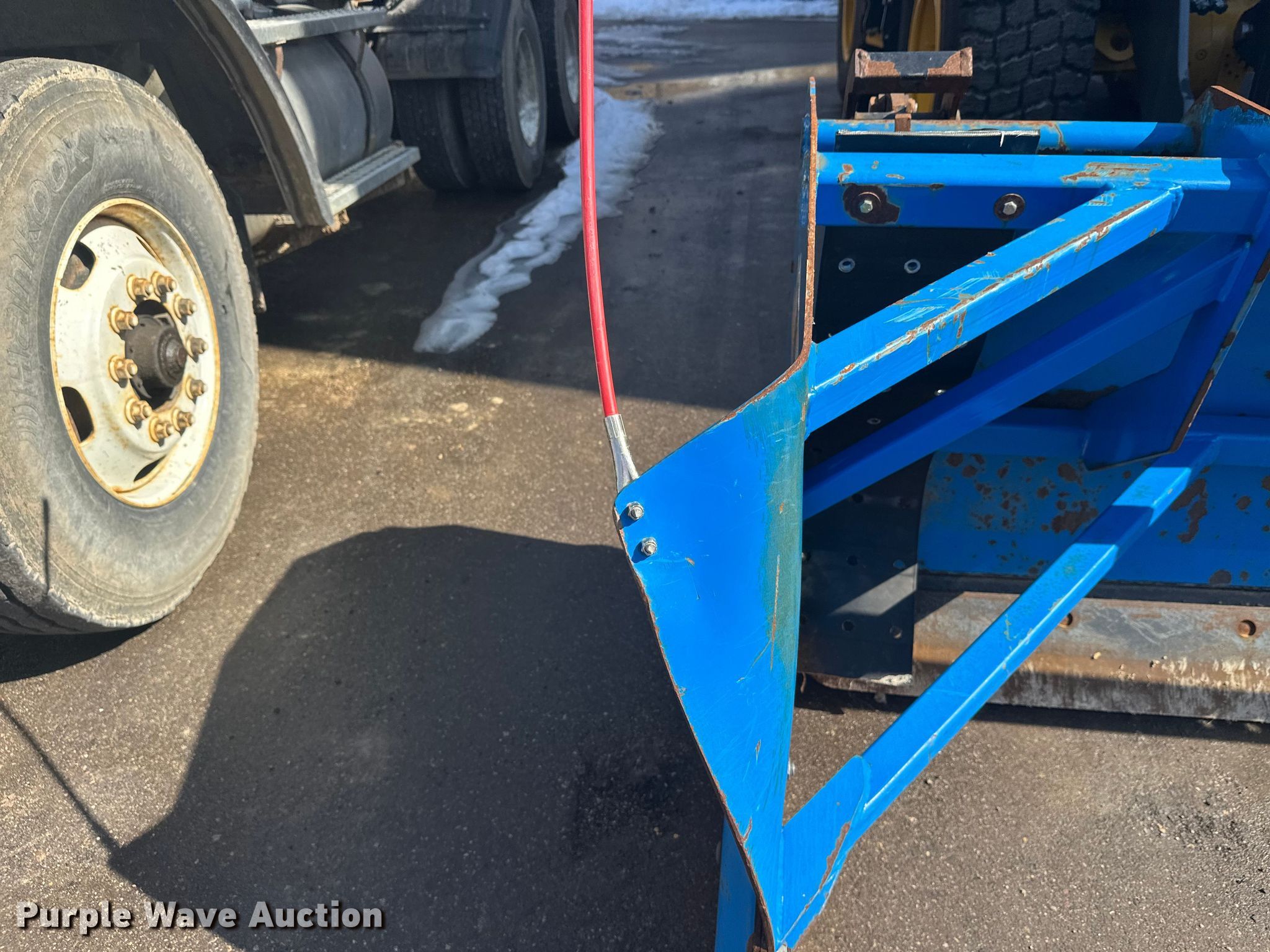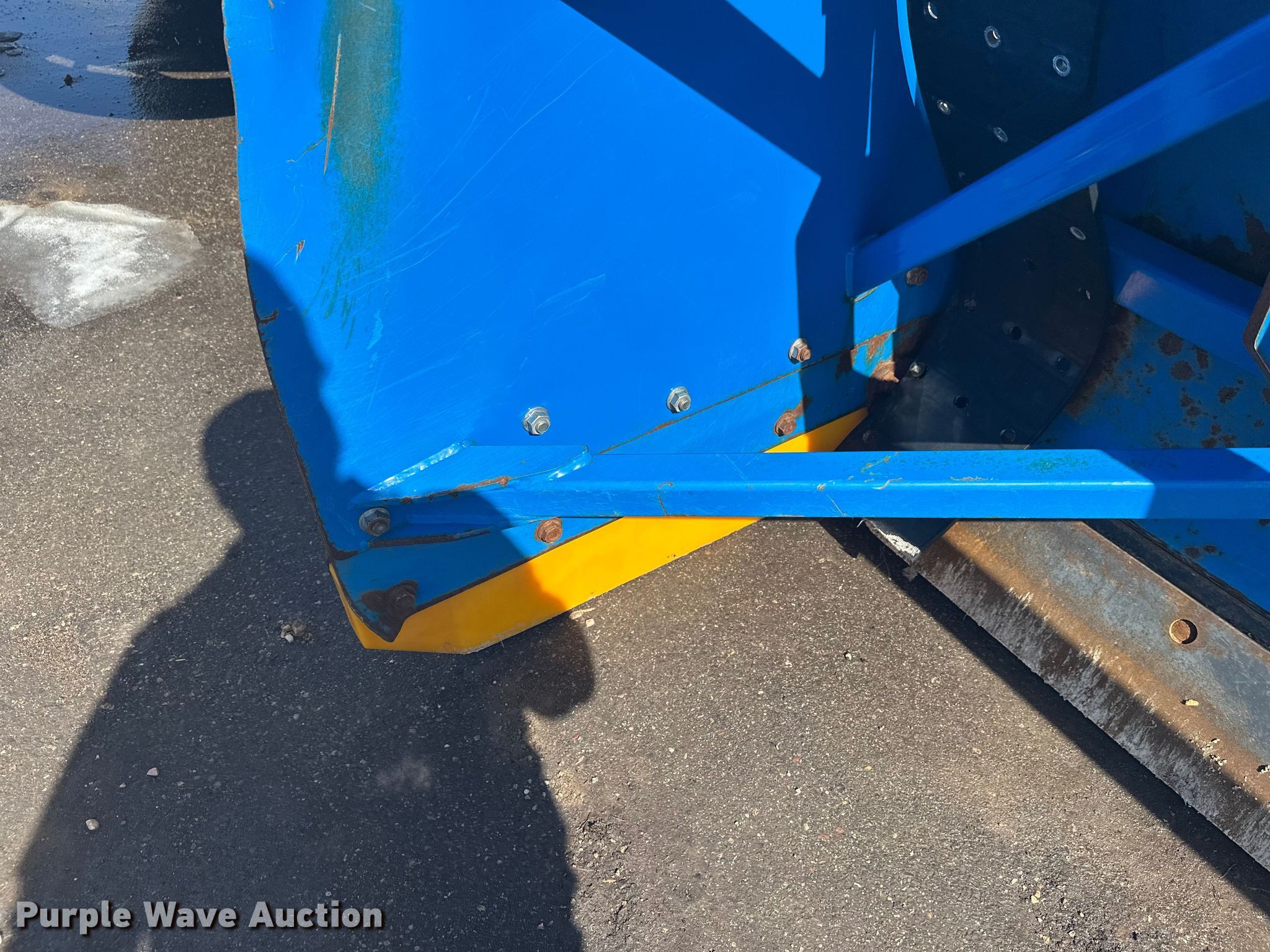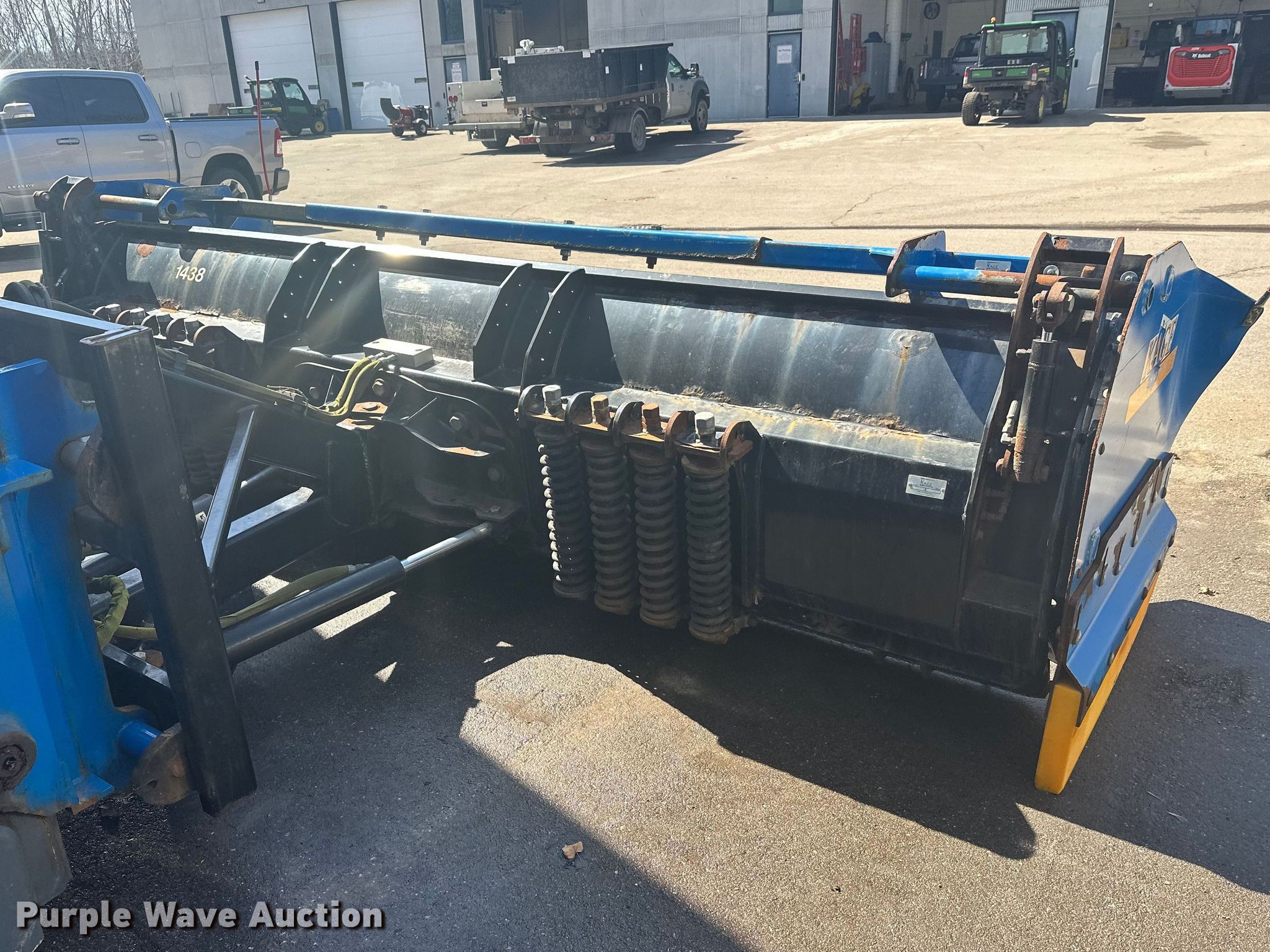 Purple Wave is selling a used Wheel Loader Attach. in Minnesota. This item is a Kage Snow plow box system wheel loader snow pusher with the following: ACS quick coupler, Width: 12' 3", Additional cutting edges and wear bars included