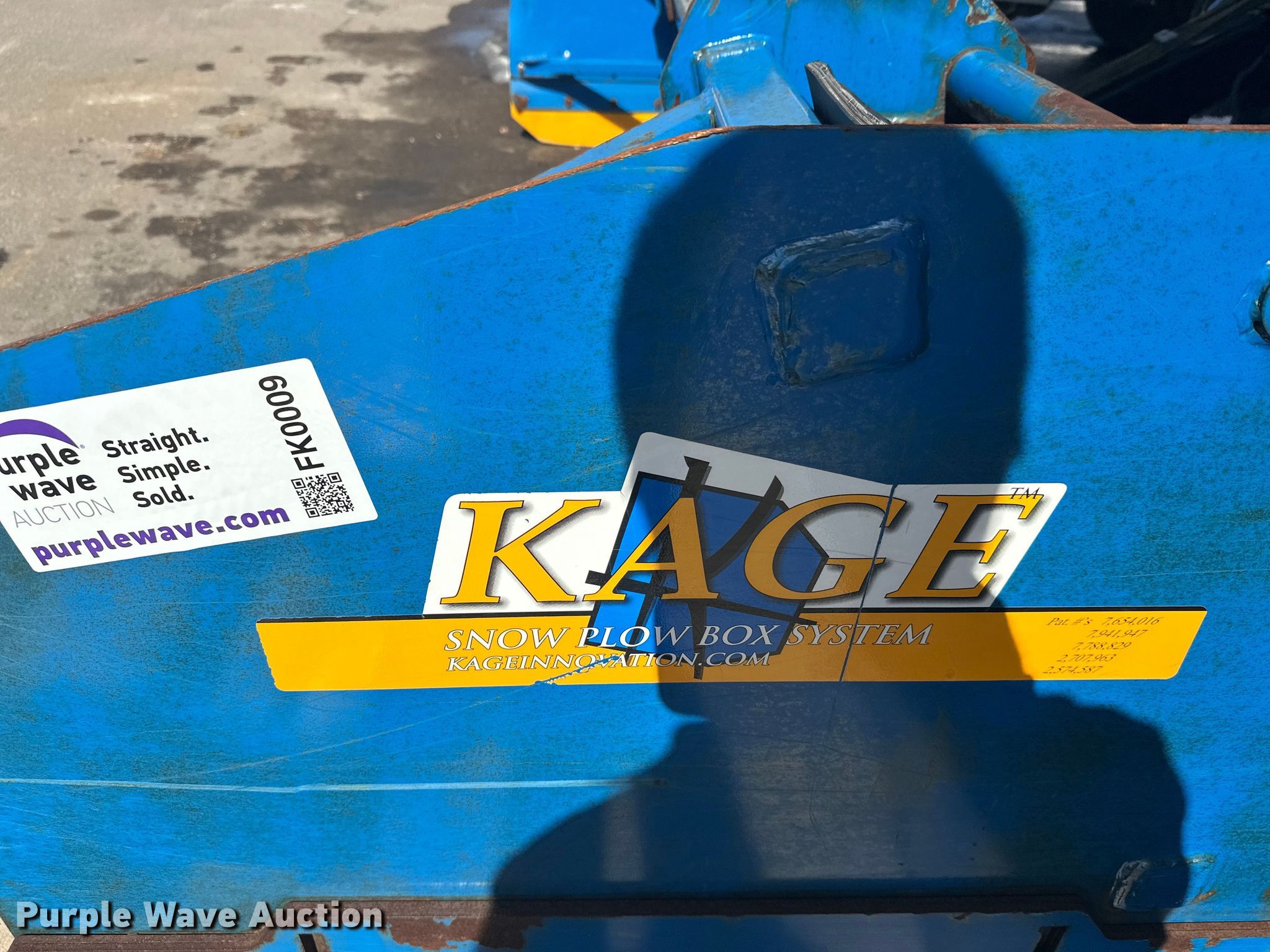 Kage Snow plow box system wheel loader snow pusher for sale in Bloomington, Minnesota. Item FK0009 will sell on April 28th, 2026.