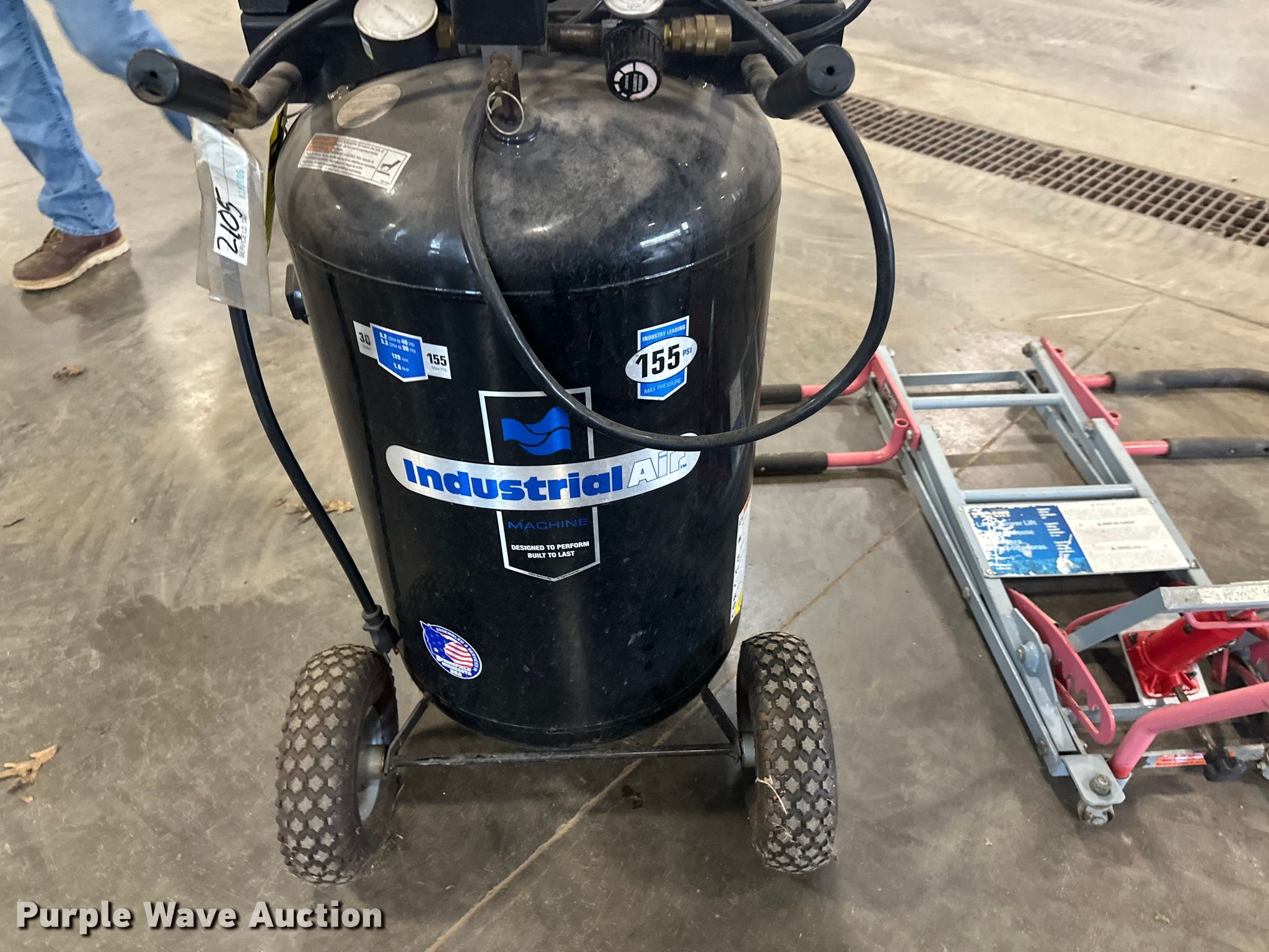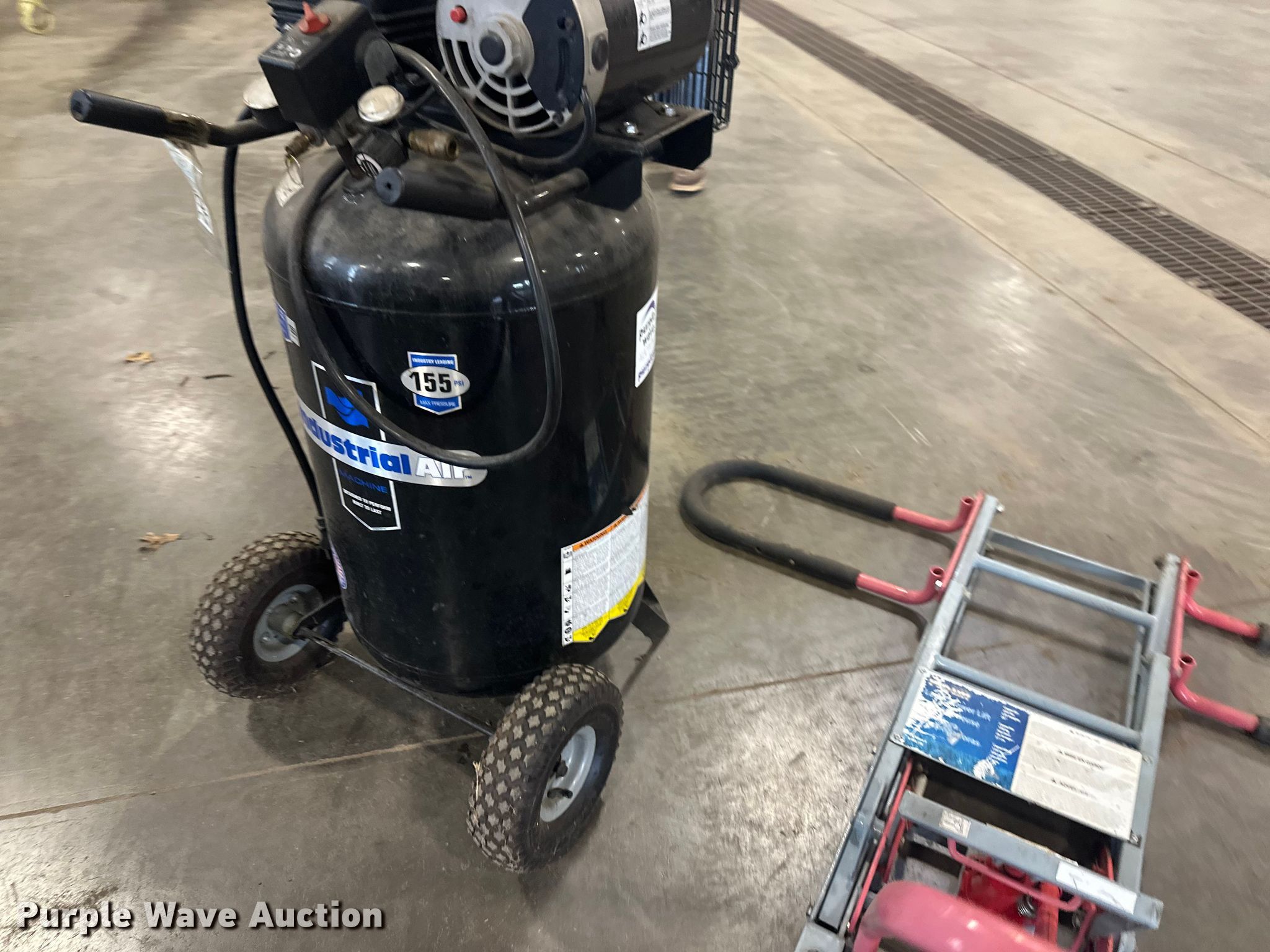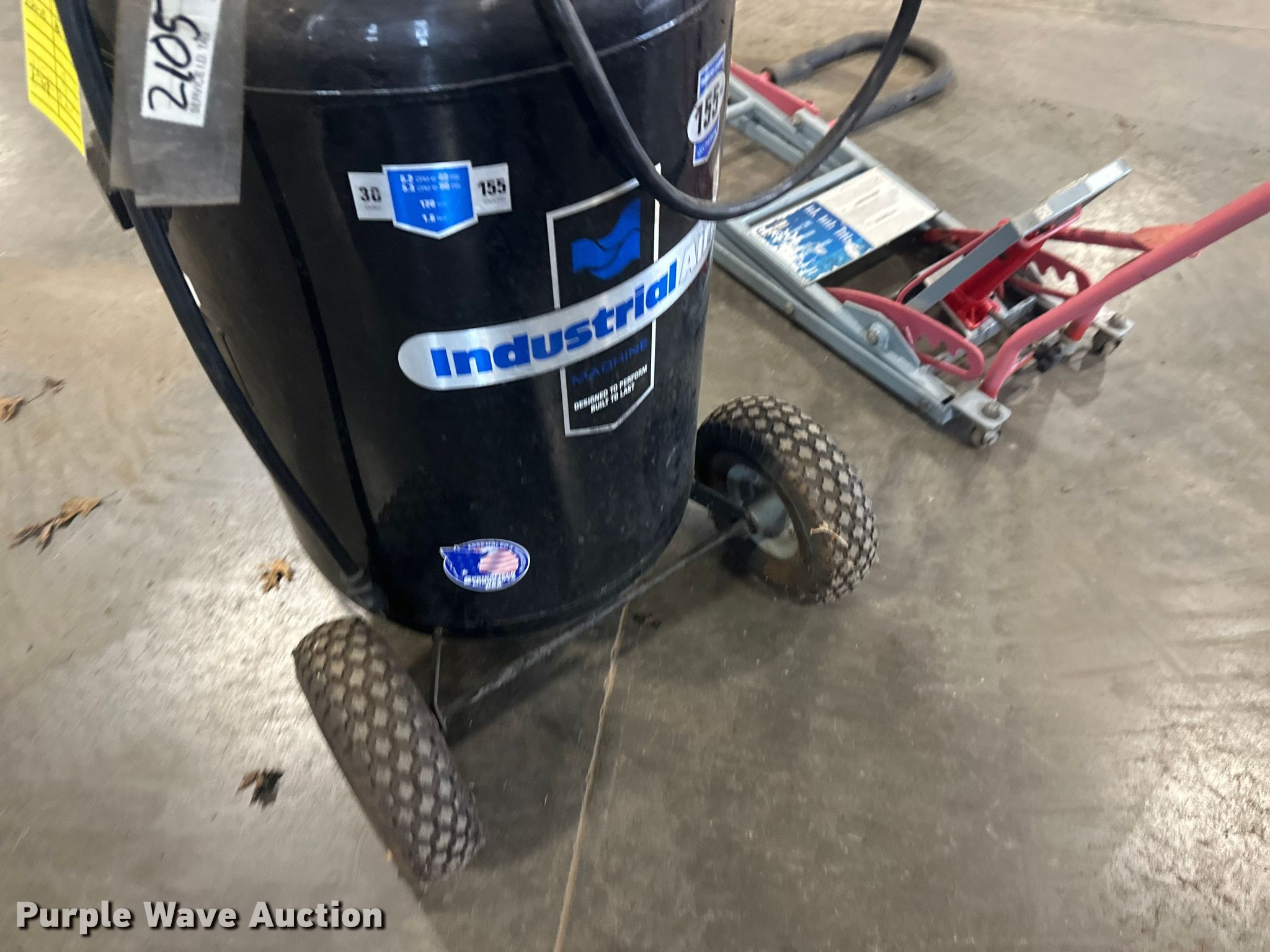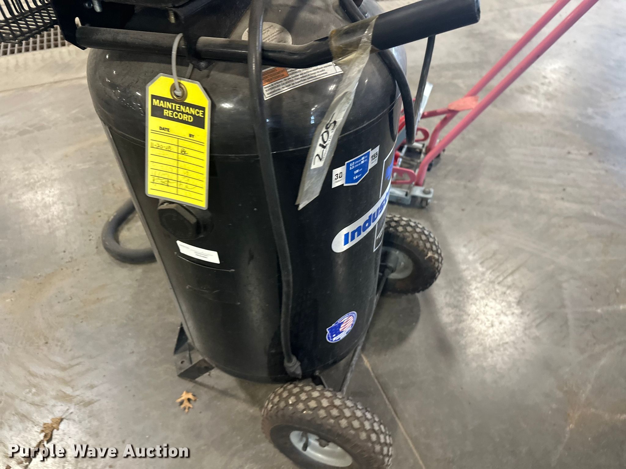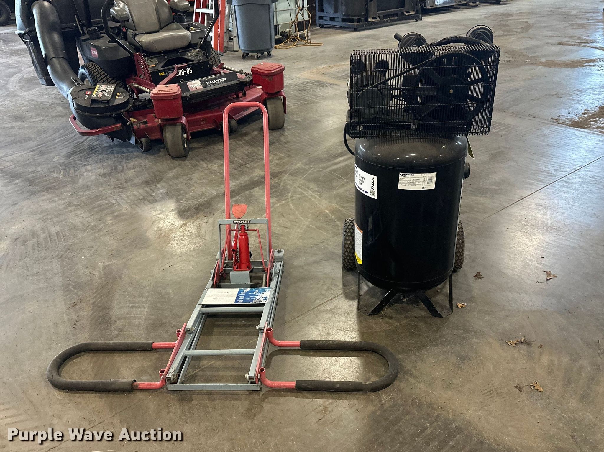 Purple Wave is selling a used Tools in Minnesota. This item is a Tools with the following: Industrial Air air compressor, Capacity: 30 gallon, Phase: Single, Volts: 120, Pro-Lift lawn mower jack