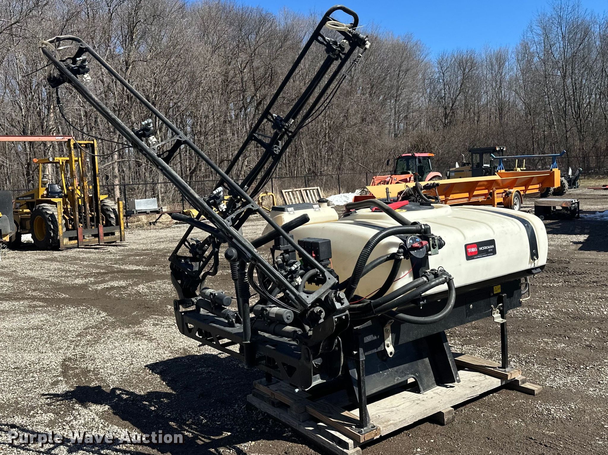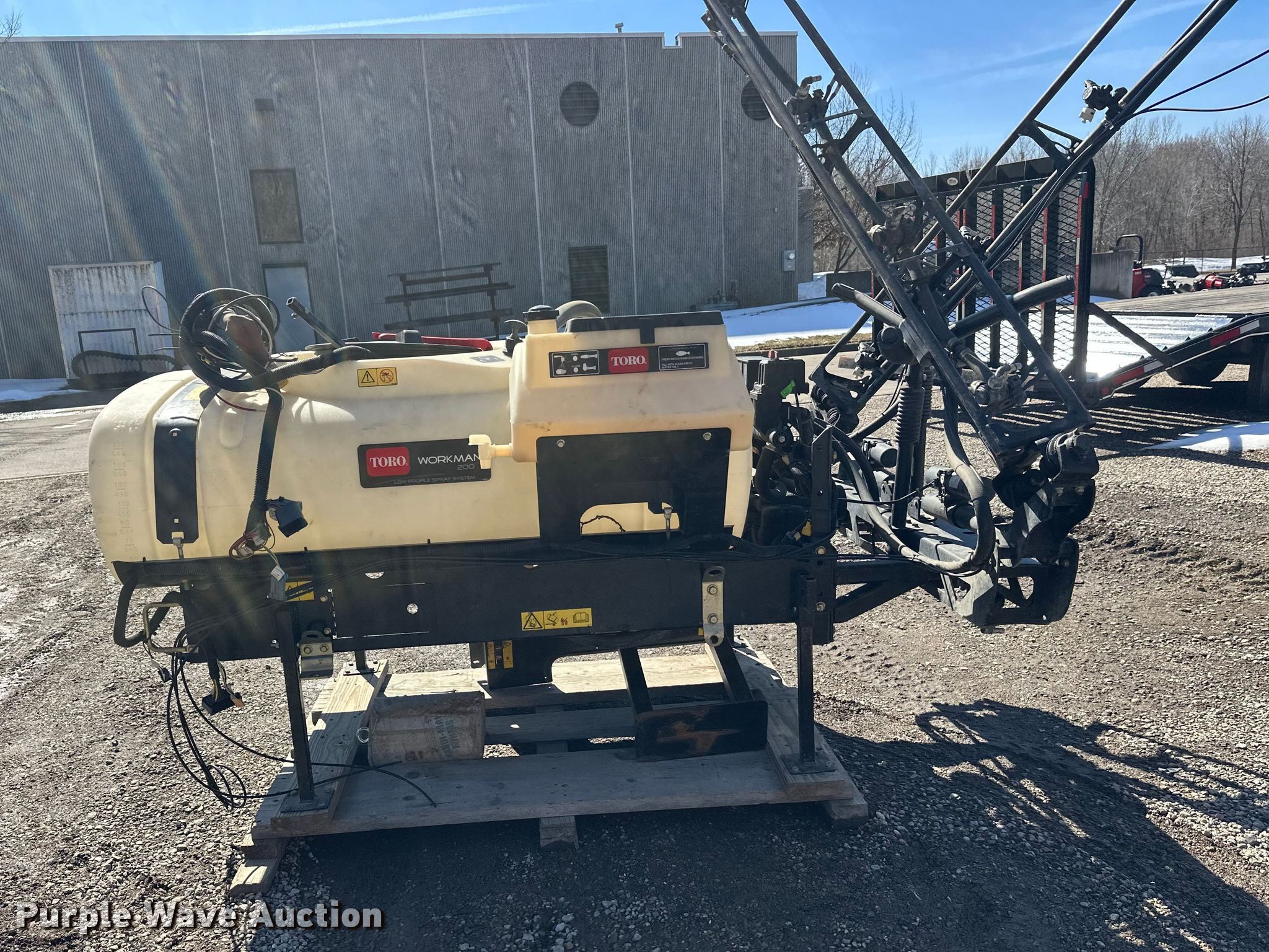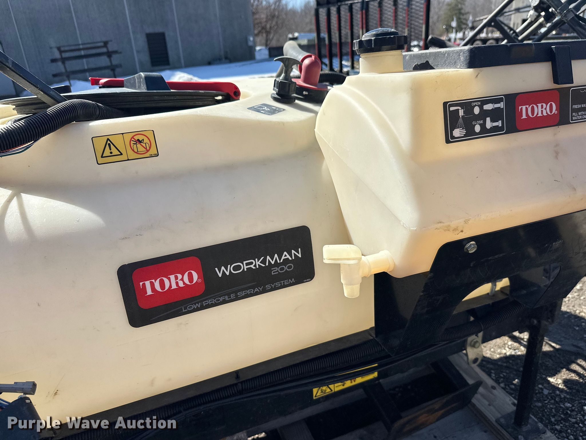 Purple Wave is selling a used Turf Sprayer in Minnesota. This item is a Toro Workman 200 turf sprayer with the following: Approximately 8' L x 48" W, Poly tank, Capacity: 200 gallons, Spray boom: 16', Volts: 12'