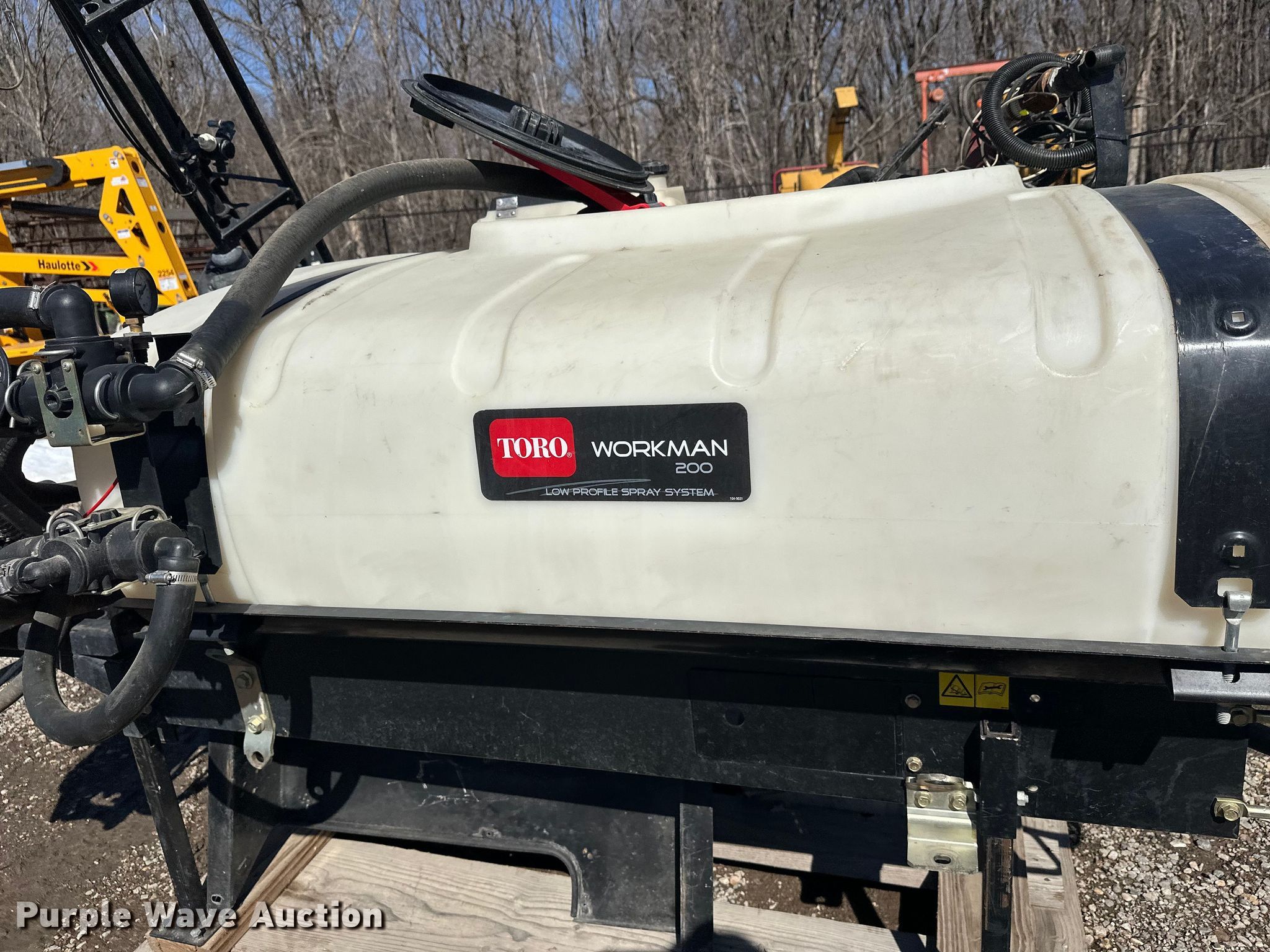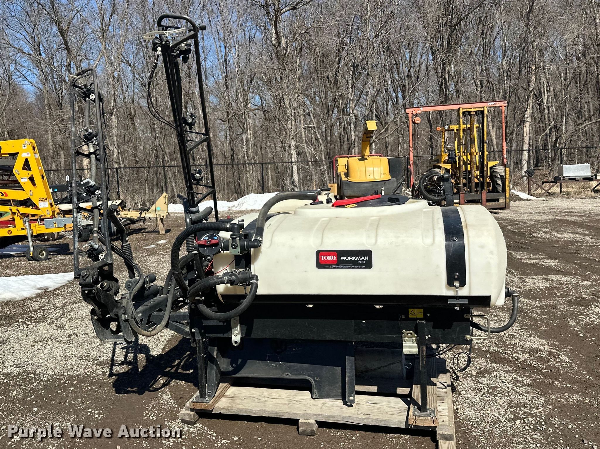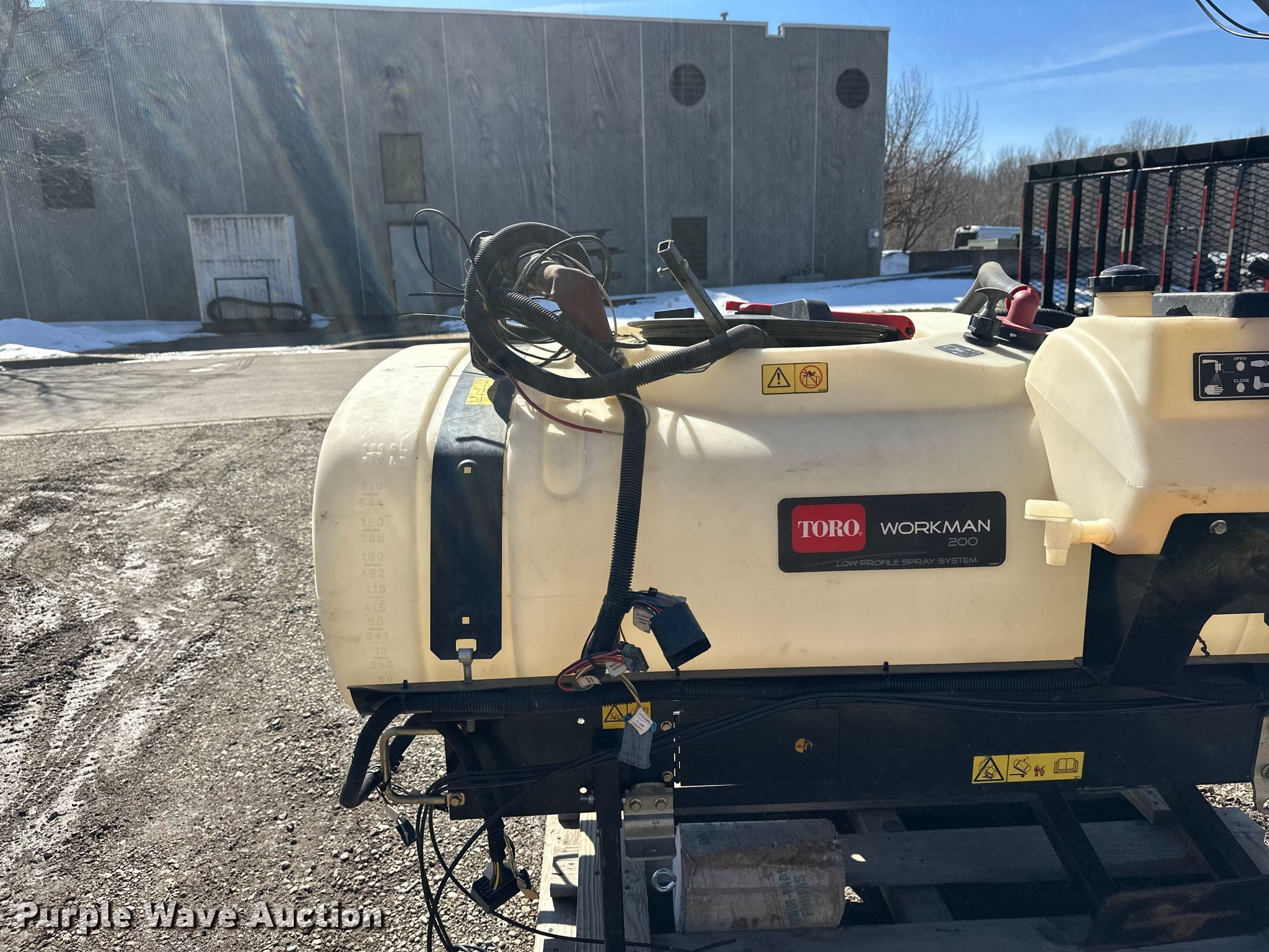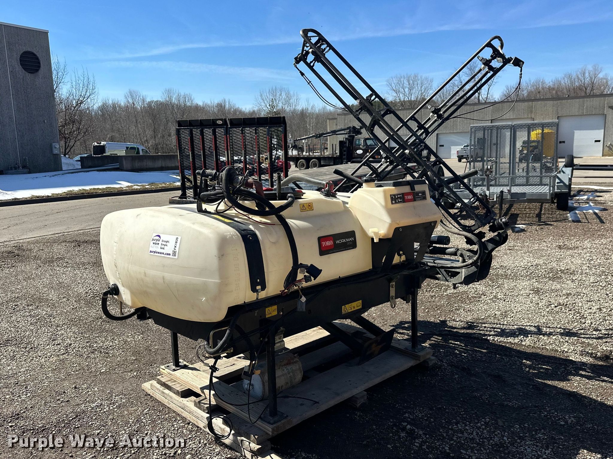 Purple Wave is selling a used Turf Sprayer in Minnesota. This item is a Toro Workman 200 turf sprayer with the following: Approximately 8' L x 48" W, Poly tank, Capacity: 200 gallons, Spray boom: 16', Volts: 12'