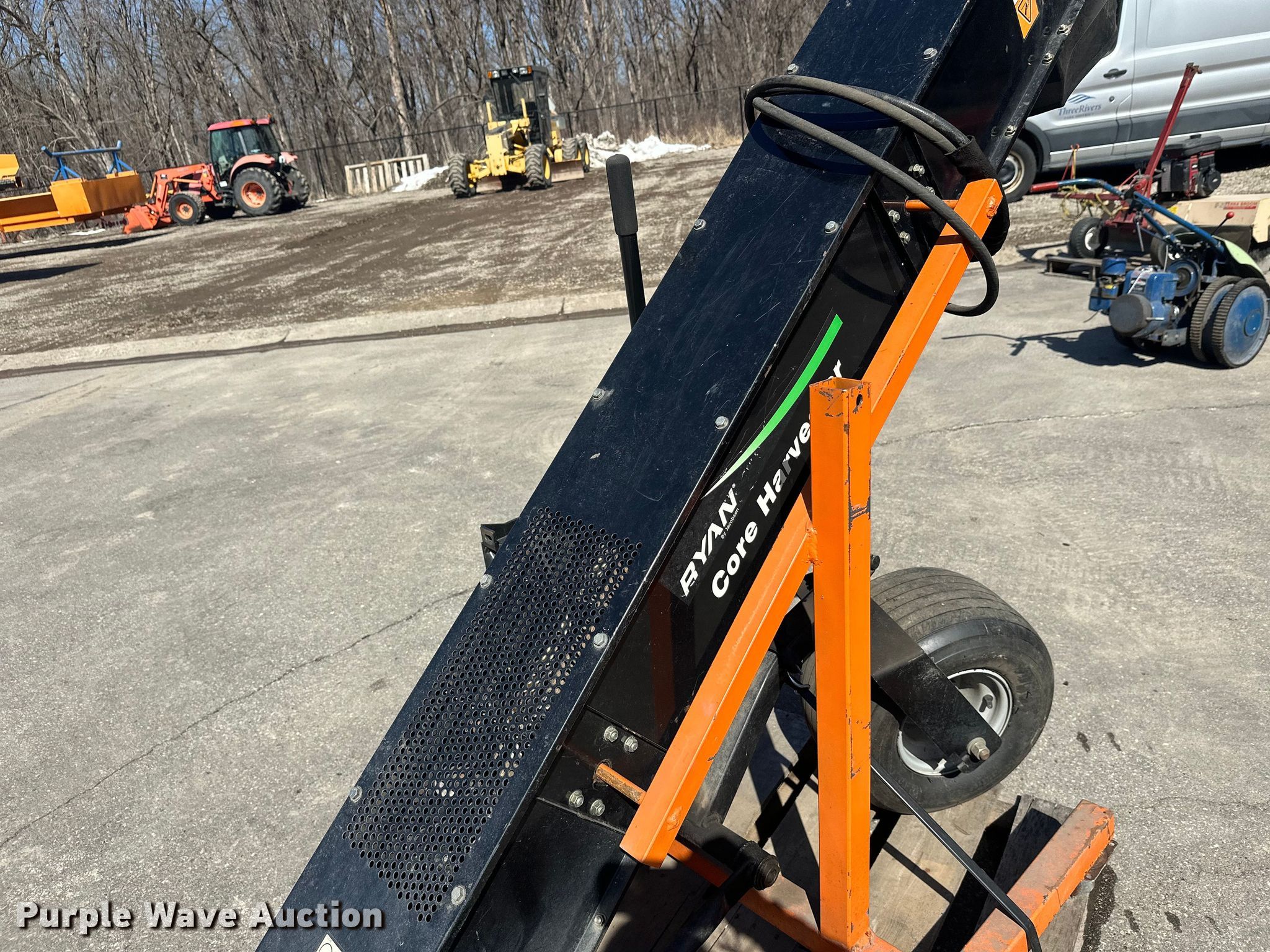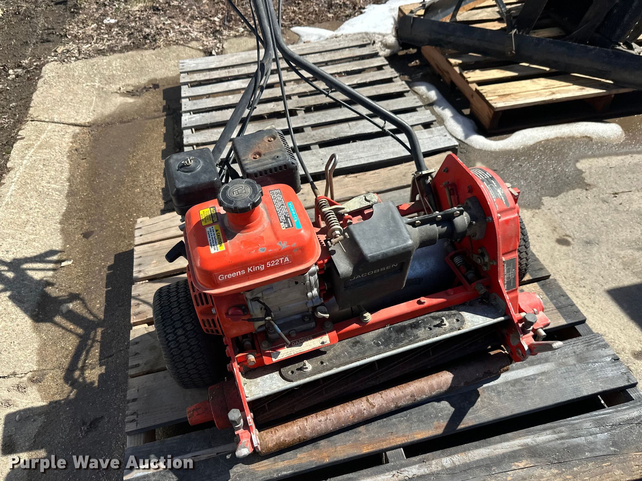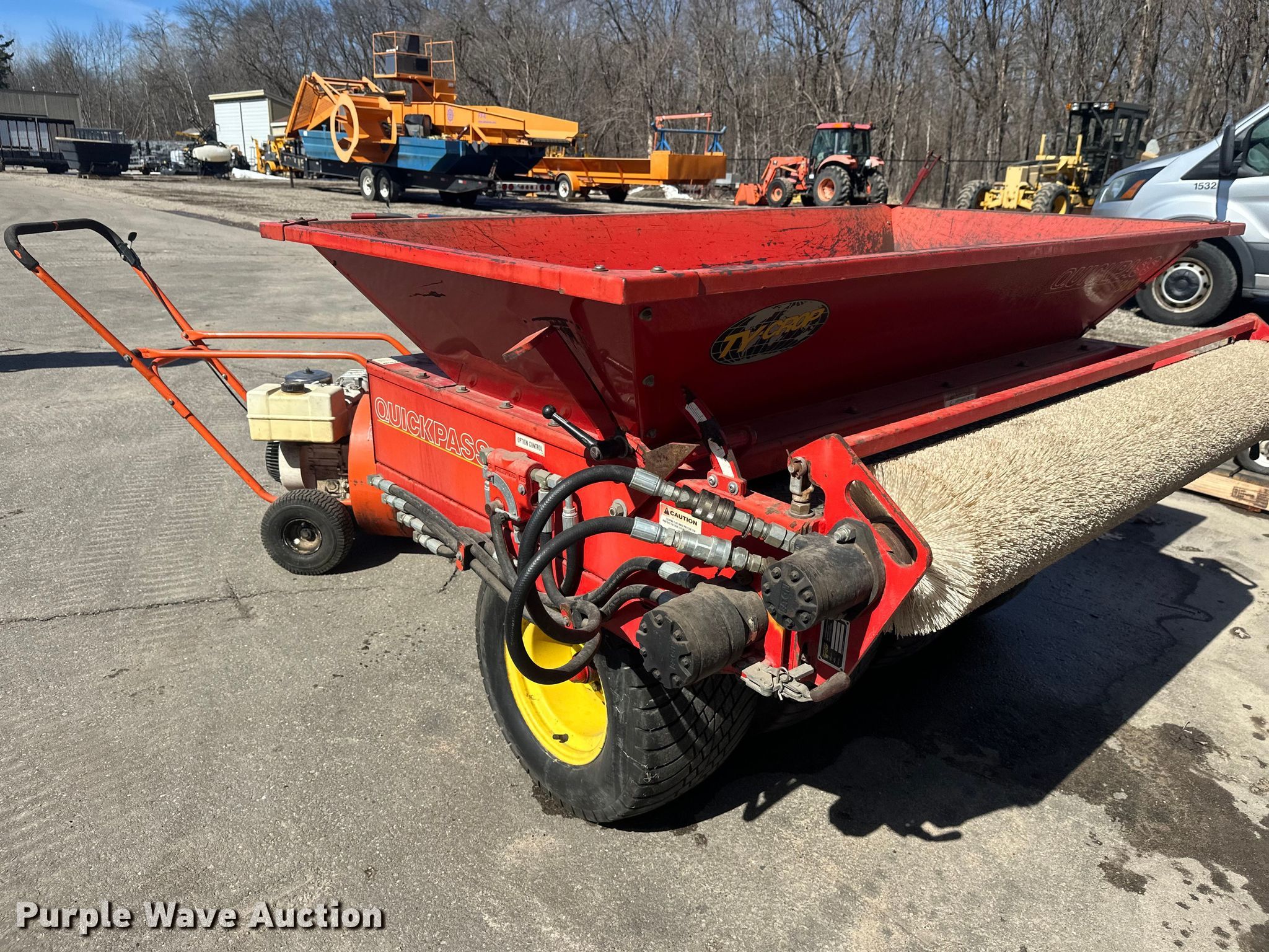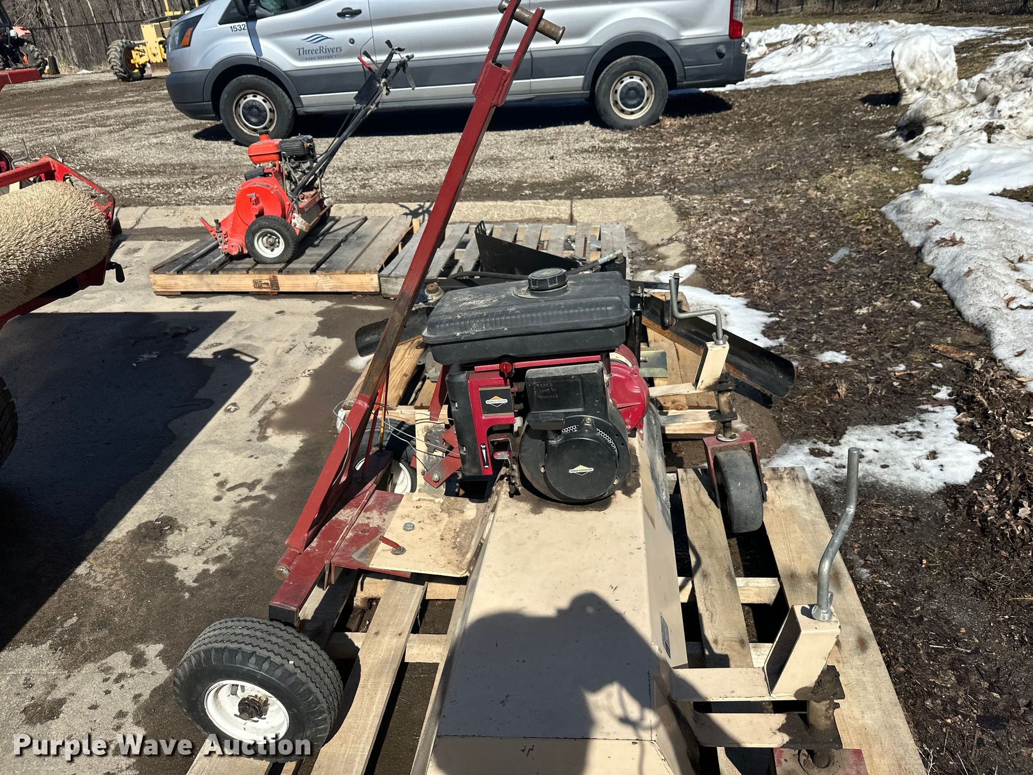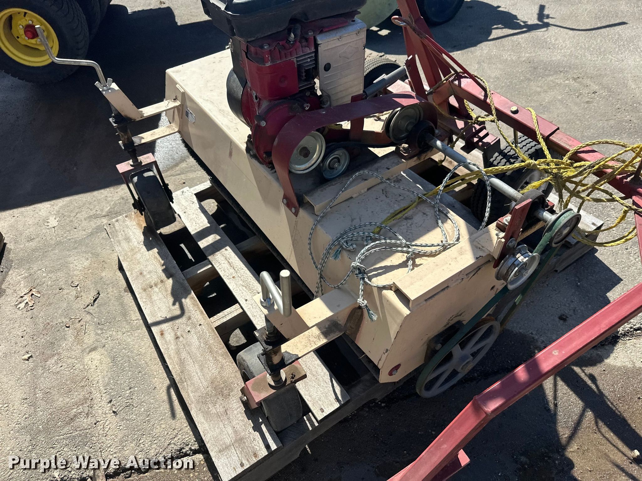 Purple Wave is selling a used Lawn and Garden in Minnesota. This item is a Lawn and garden equipment with the following: Terra broom, Jacobsen reel mower, Billy goat blower, Tycrop quick pass, Sickle mower, Ryan core harvester