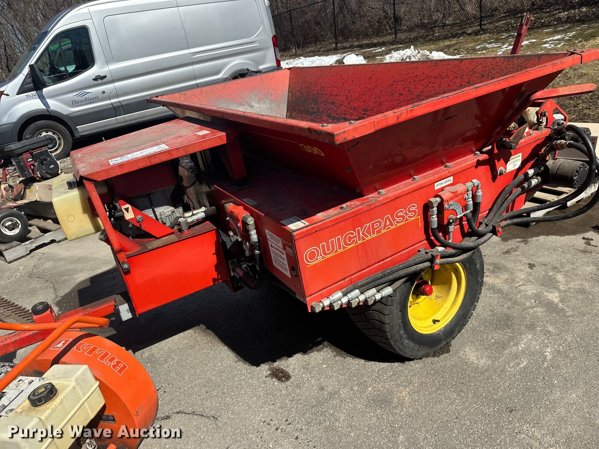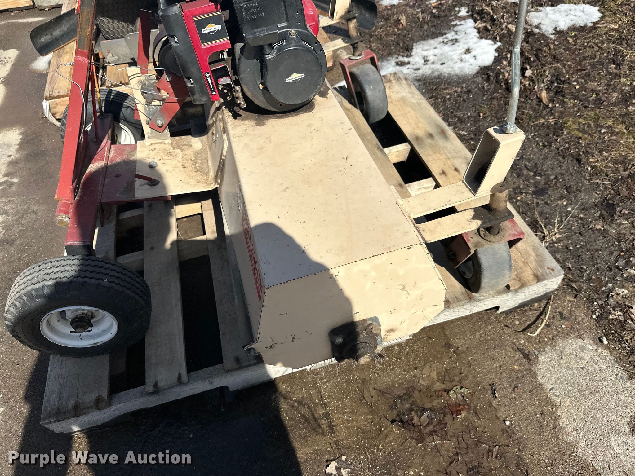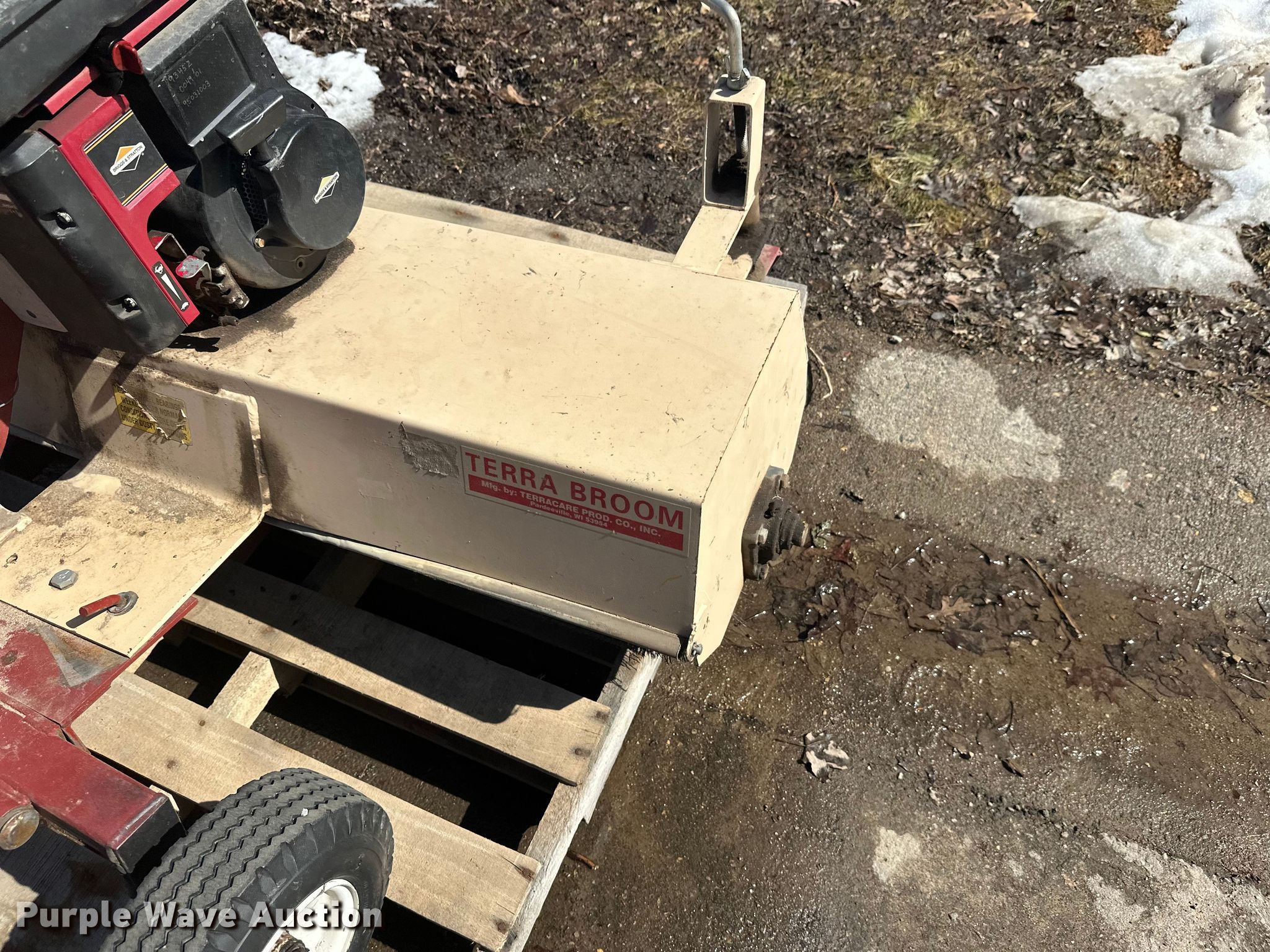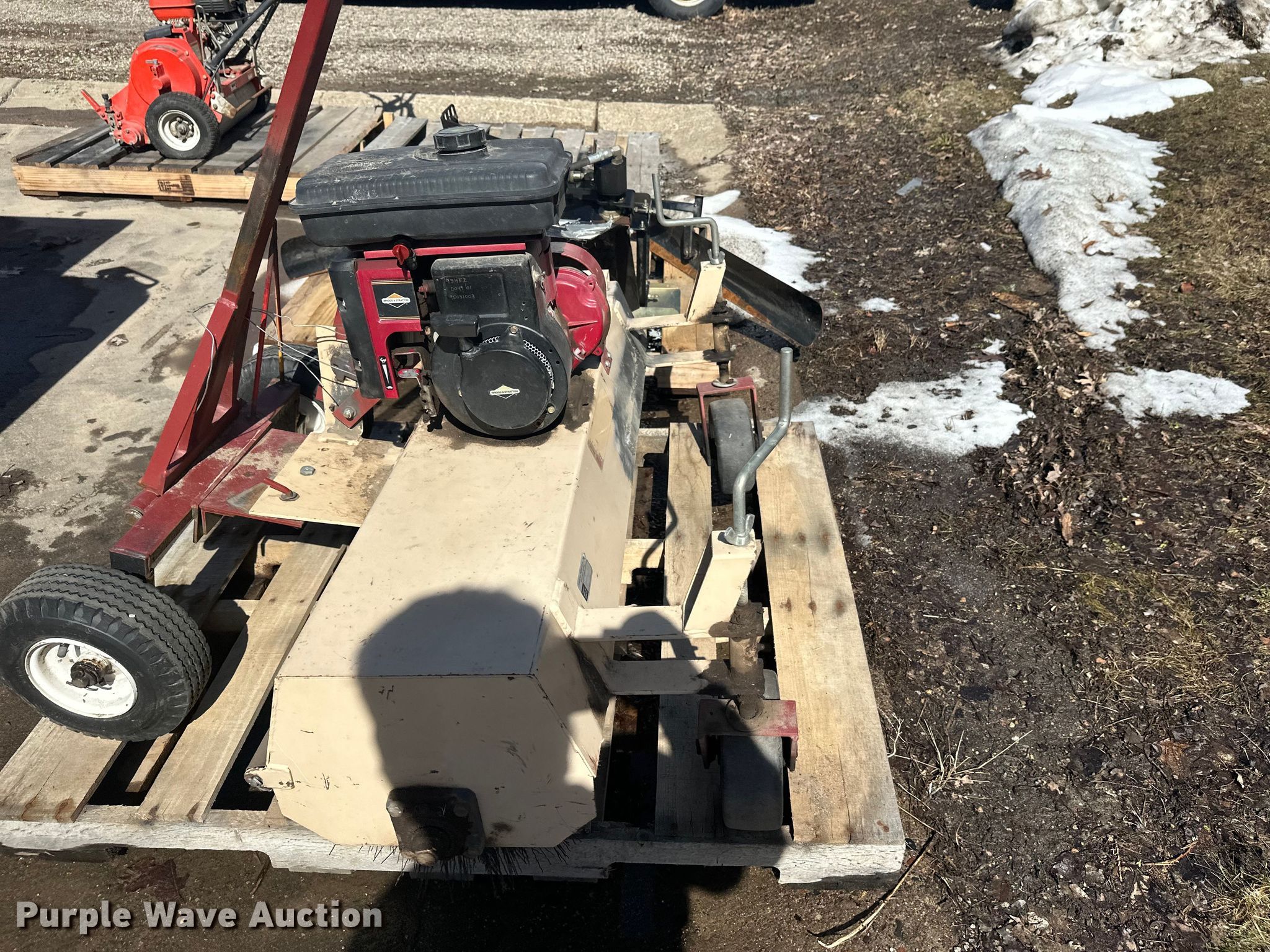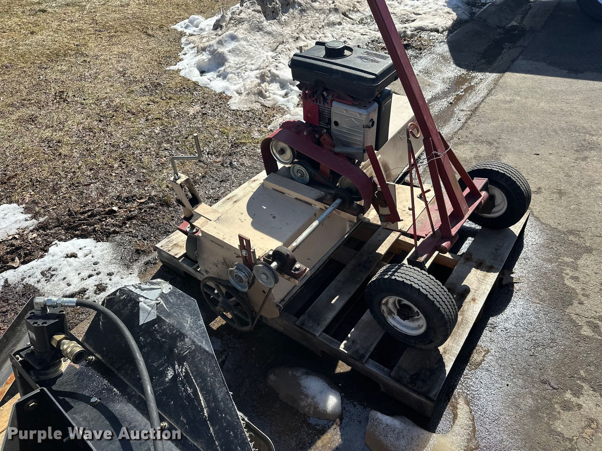 Purple Wave is selling a used Lawn and Garden in Minnesota. This item is a Lawn and garden equipment with the following: Terra broom, Jacobsen reel mower, Billy goat blower, Tycrop quick pass, Sickle mower, Ryan core harvester