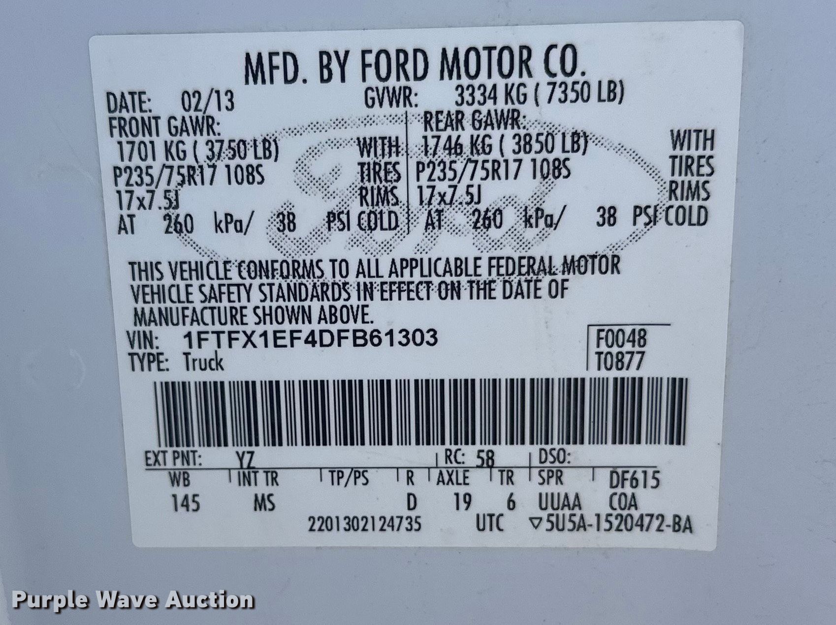 Purple Wave is selling a used 1/2 Ton Pickup or Van in Minnesota. This item is a 2013 Ford F150 Ext. Cab pickup truck with the following: Miles: 303,879 on odometer, VIN: 1FTFX1EF4DFB61303