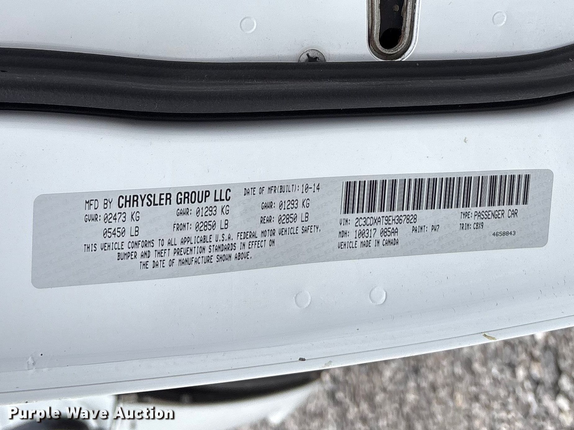 - VIN: 2C3CDXAT9EH367828