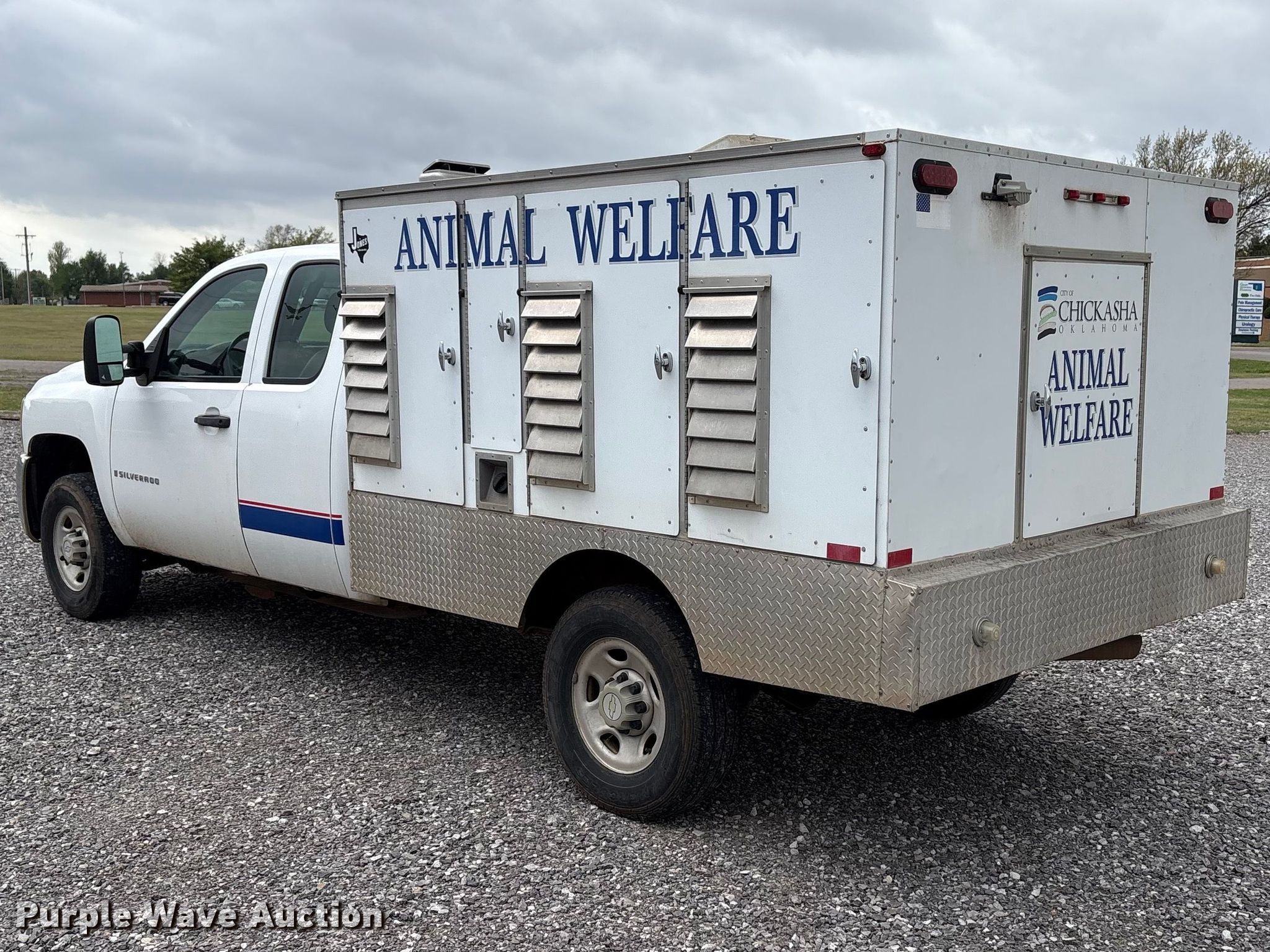 2009 Chevrolet Silverado 2500HD Ext. Cab animal control pickup truck. Miles: 85,024 on odometer, VIN: 1GBHC49KX9E144553. Engine Displacement: 5.3L, Cylinders: 8, Fuel type: Gas. Transmission Automatic. Interior AC, Heat. Features Bed Length: 8', Width: 79", Compartments: 7. Tires Size: 245/75R16. Oklahoma title. Title distribution may be delayed up to 14 days from verification of funds. City Of Chickasha, OK. Chickasha, OK 73018