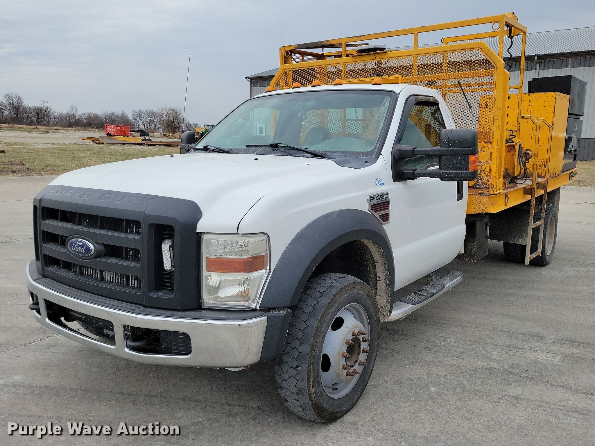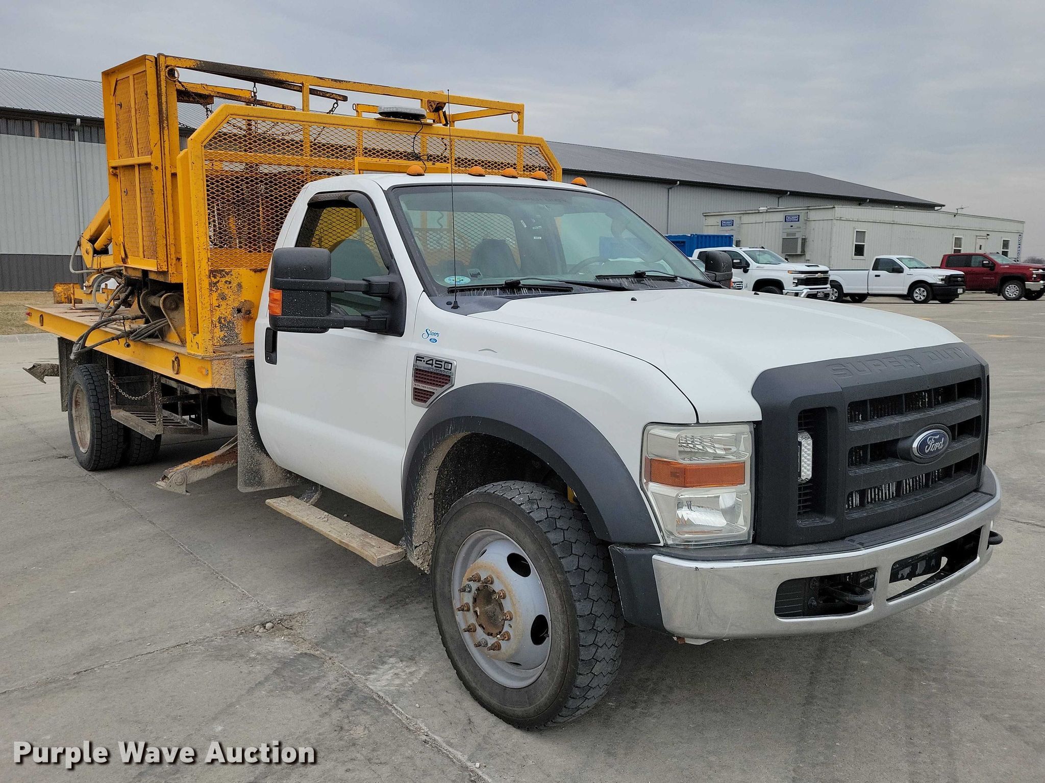 Purple Wave is selling a used Bucket Truck in Iowa. This item is a 2008 Ford F450 Super Duty traffic sign truck with the following: Miles: 298,782 on odometer, VIN: 1FDXF46R38EE63111
