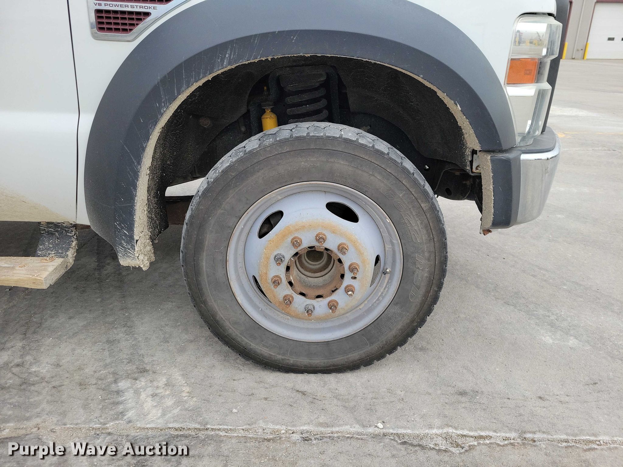 2008 Ford F450 Super Duty traffic sign truck. Miles: 298,782 on odometer, VIN: 1FDXF46R38EE63111. Engine Displacement: 6.4L, Cylinders: 8, Fuel type: Diesel. Transmission Automatic. Chassis Axles: Single, Suspension: Spring, Brakes: Hydraulic, PTO, GVWR: 16,000 lbs, Wheelbase: 189". Interior AC, Heat, Heated mirrors, Power windows, Power locks, Cruise control, Auxiliary controls, Brake controller. Features Bed Length: 14', Width: 96". Tires Size: 225/70R19.5. Notes Dash warning indicator: ABS, Airbag. Illinois title. Seller is a government entity who will be assigning and distributing the title. Please contact the seller for distribution questions. Title distribution may be delayed up to 14 days from verification of funds. Dallas County, IA. Dallas Center, IA 50063