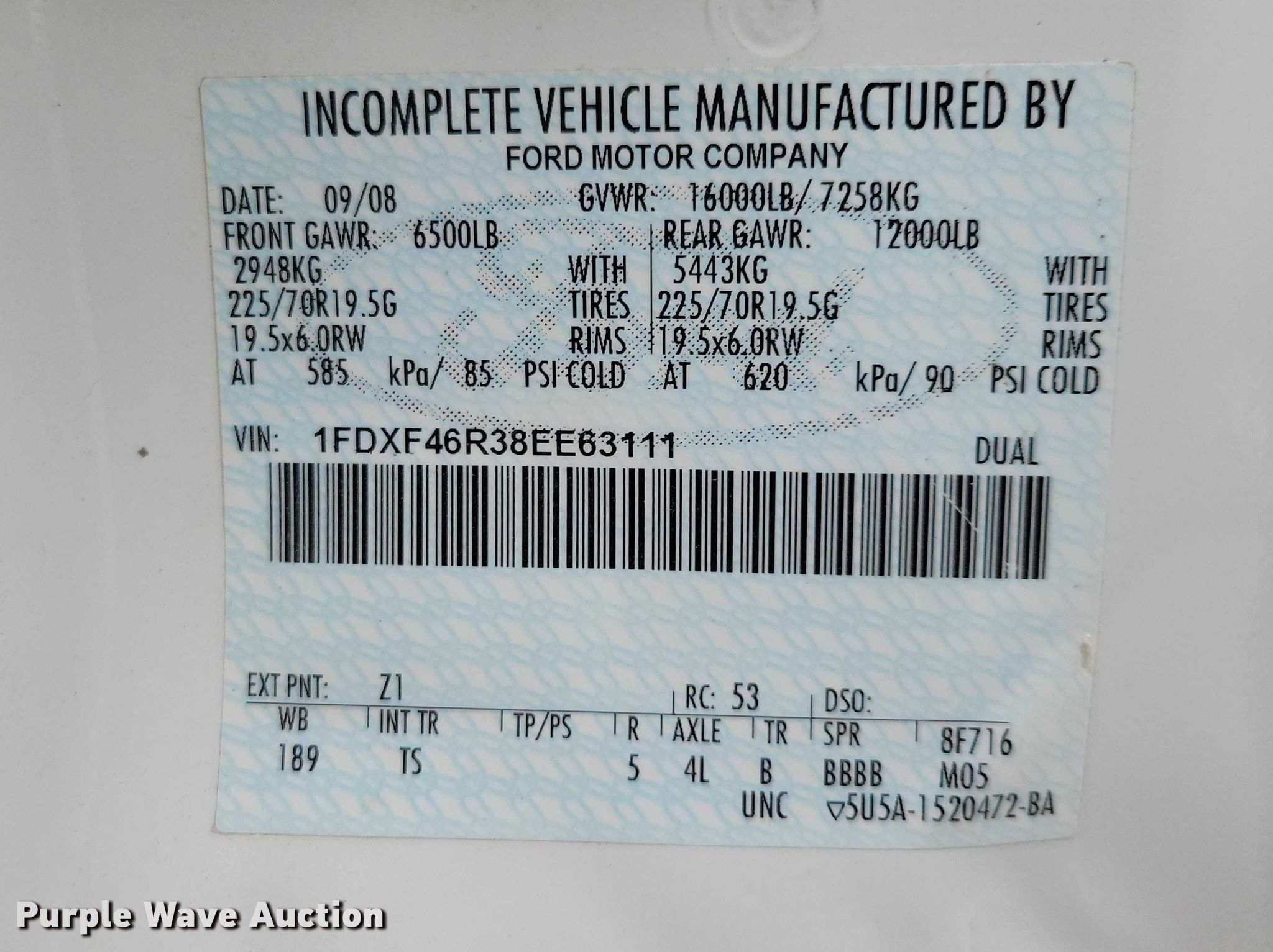 - VIN: 1FDXF46R38EE63111