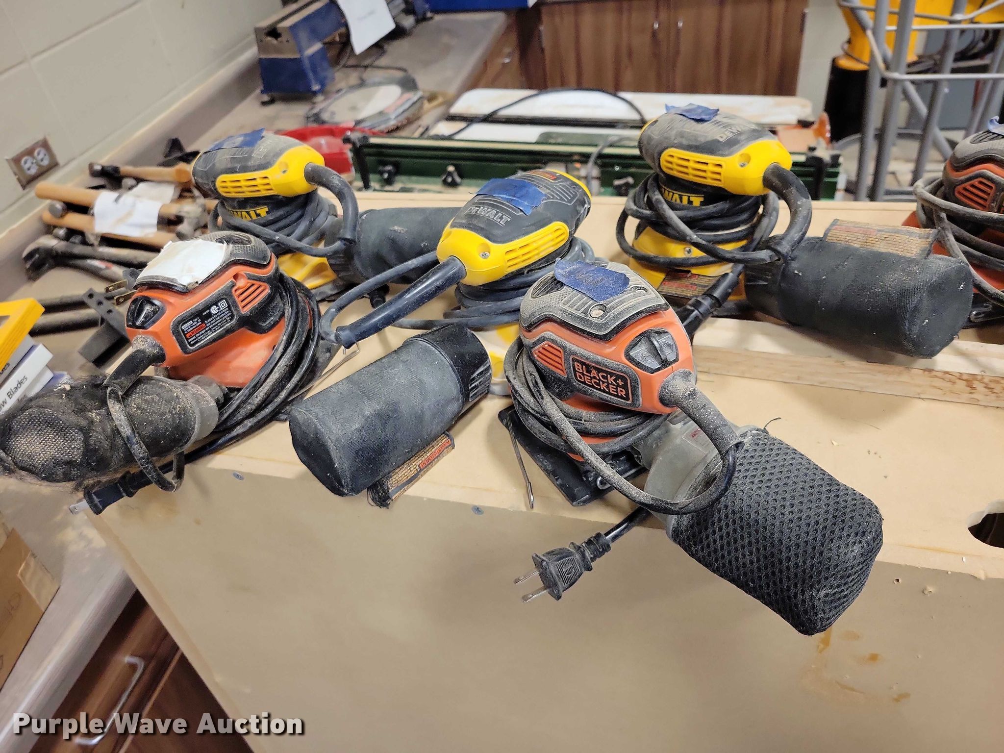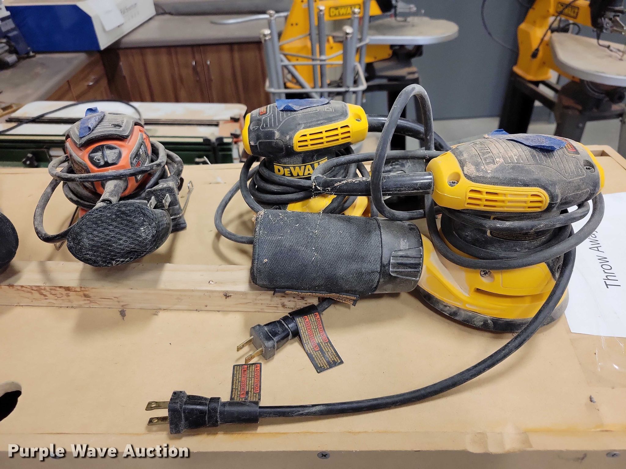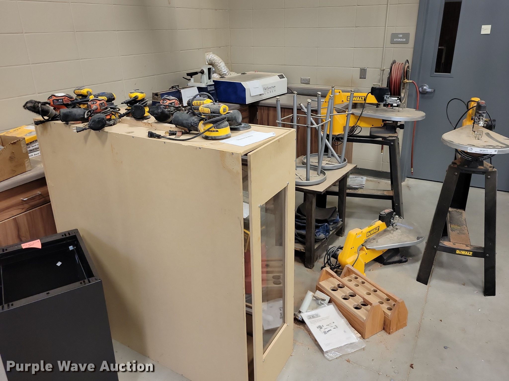 Purple Wave is selling a used Tools in Iowa. This item is a Tools with the following: (3) Scroll saws, Lathe, (5) empty tool cases, (8) handheld sanders, Additional band saw blades, Hammers
